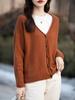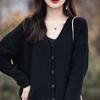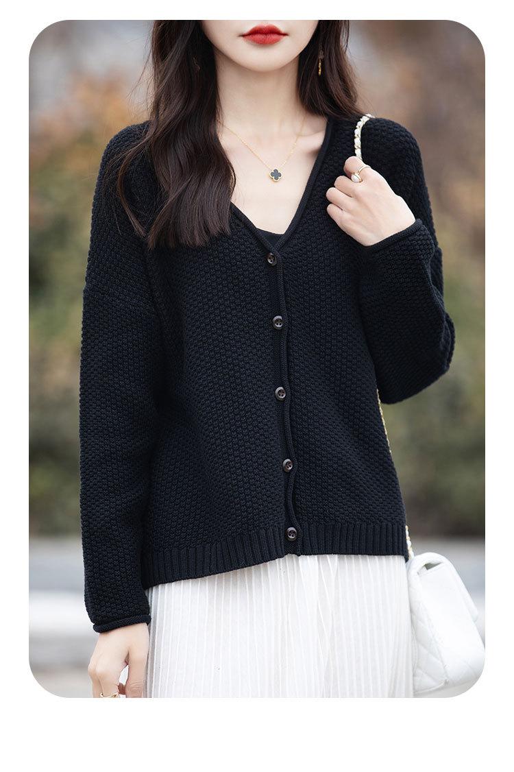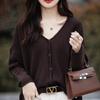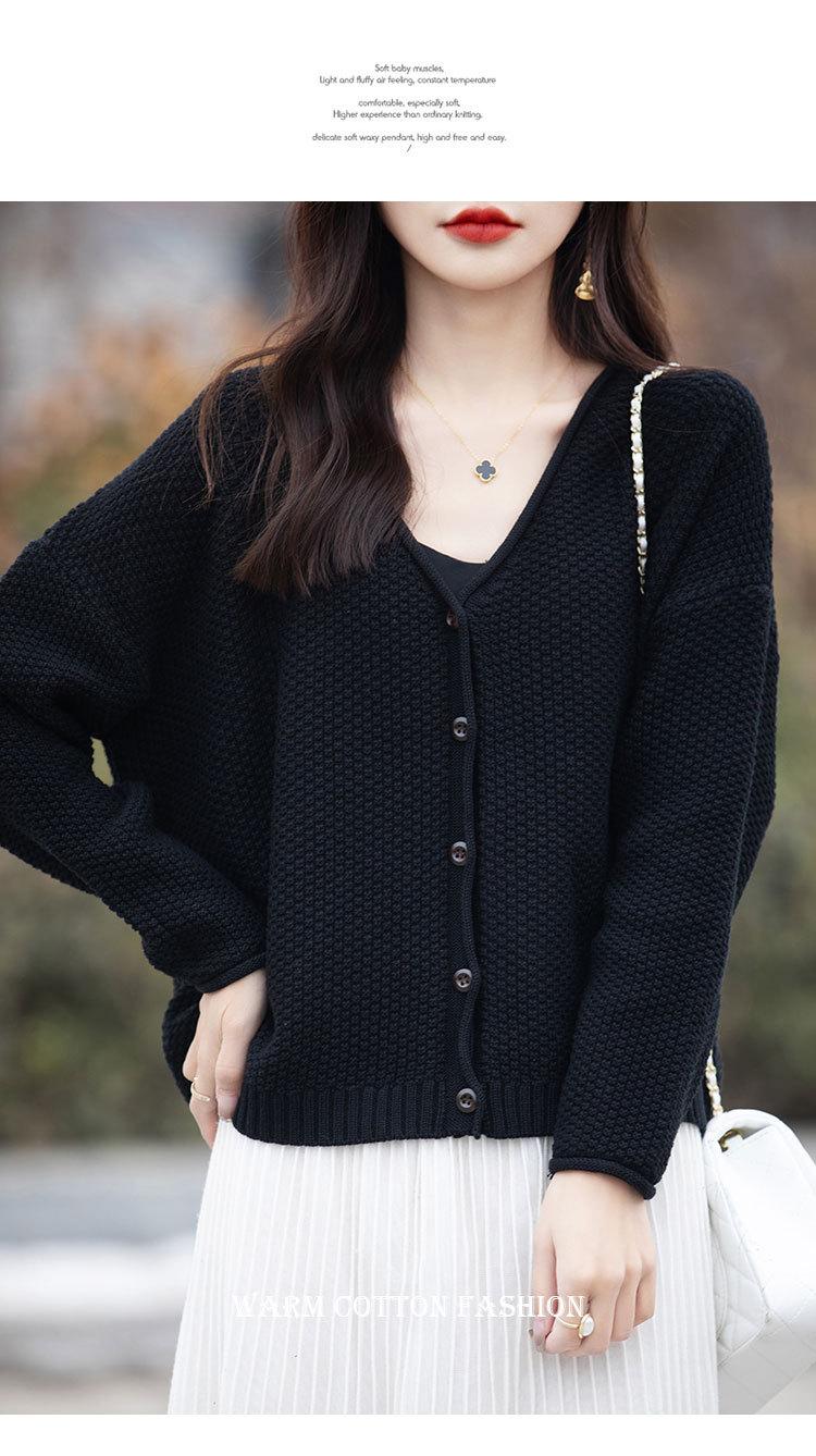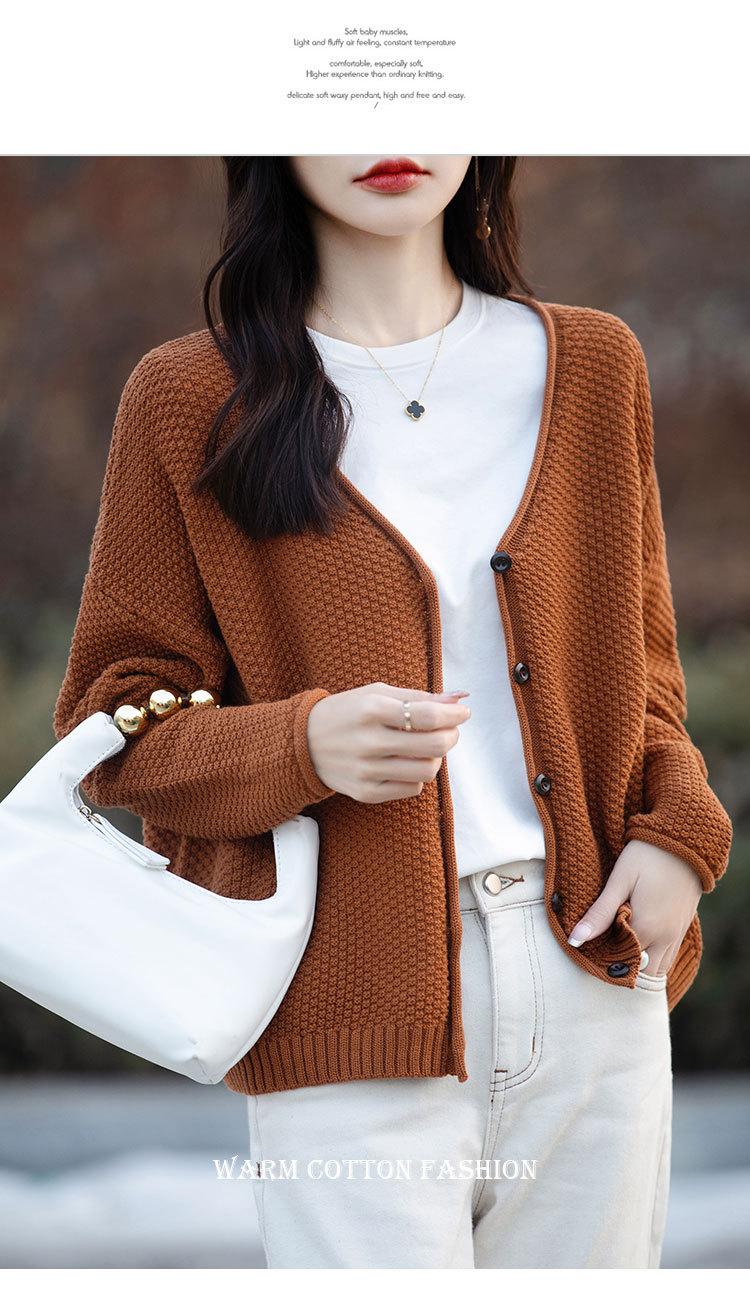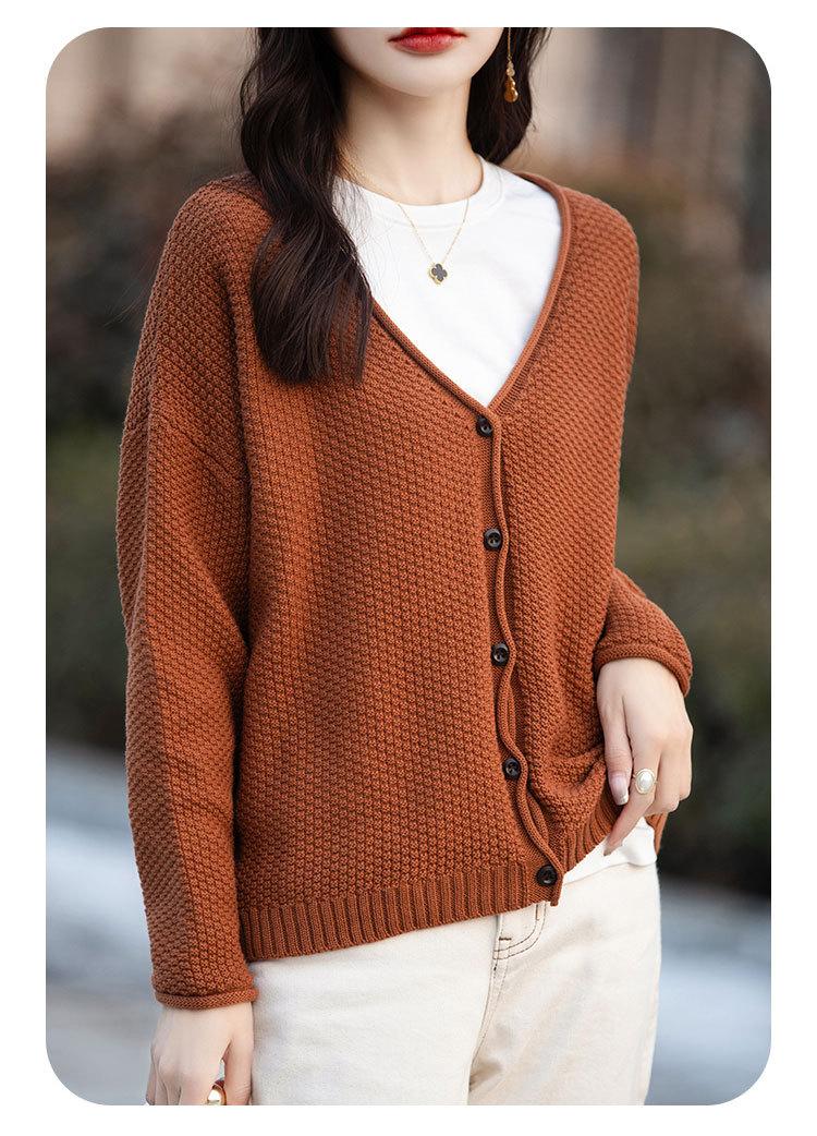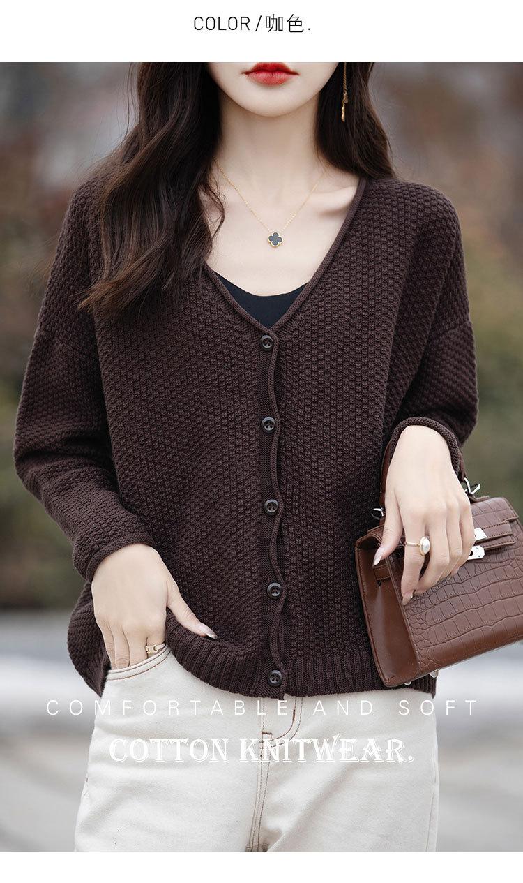Cárdigan de punto de color sólido con cuello en V, sencillo y holgado, estilo coreano, para mujer, primavera 2024, abrigo de algodón cómodo e informal, moda