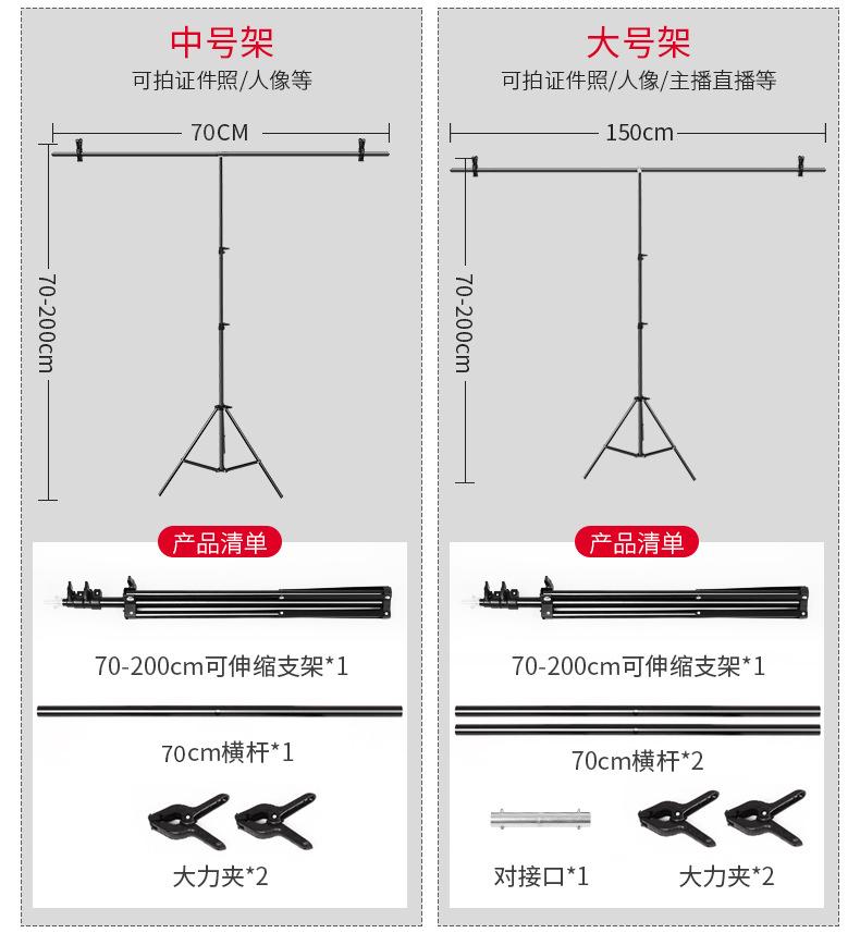La altura del soporte de la lámpara es: 70CM, 150CM, 200CM, 240CM, 260CM