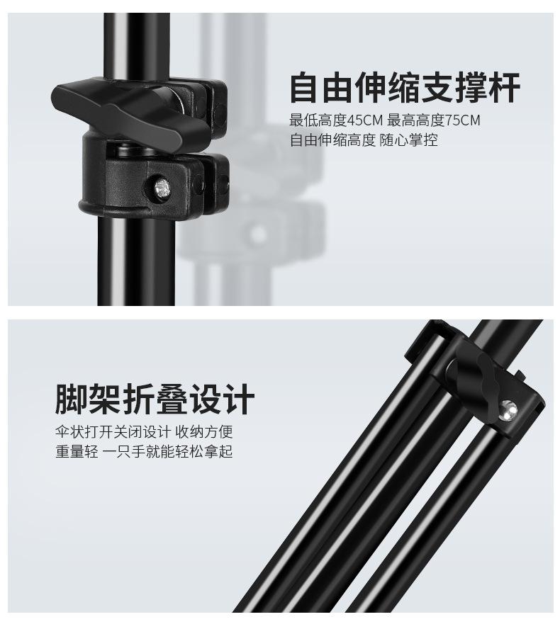 La barra transversal del soporte de luz se puede ajustar a voluntad.