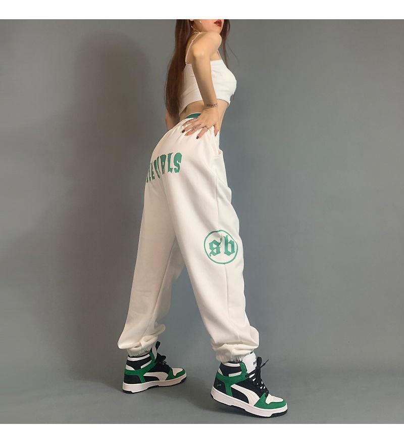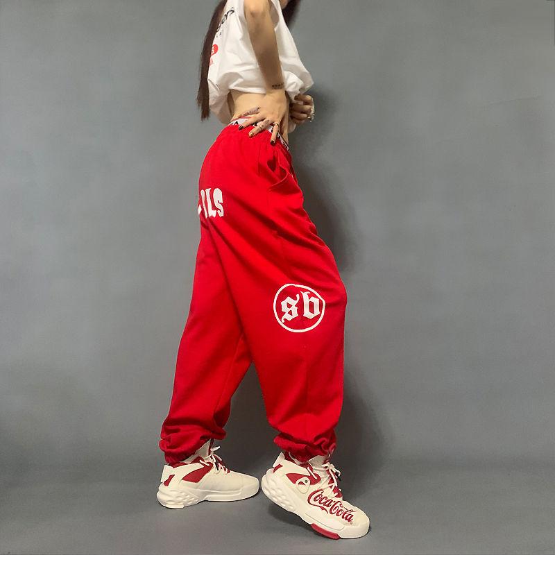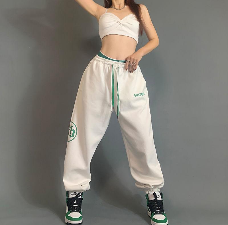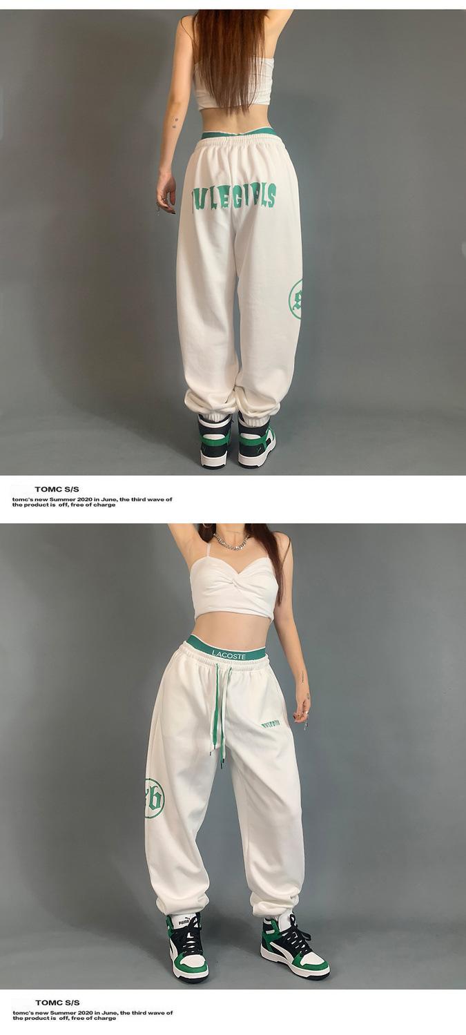 Pantalones deportivos estampados nuevos transfronterizos europeos y americanos para mujer, de cintura alta, holgados, con lazo en la pierna, hip-hop, hip-hop, pantalones largos de chándal, venta al por mayor en stock