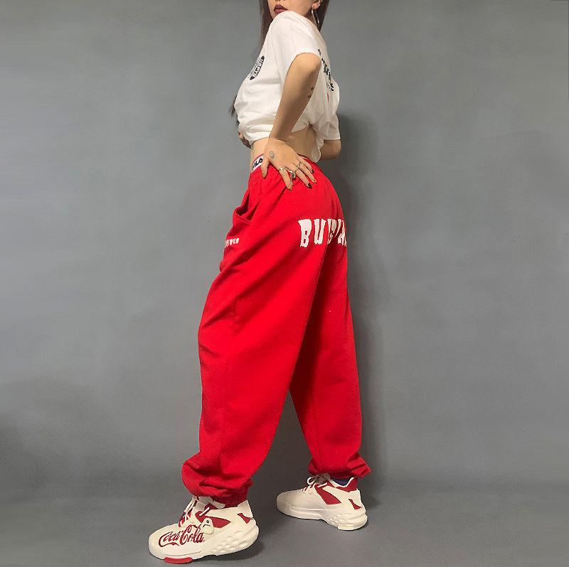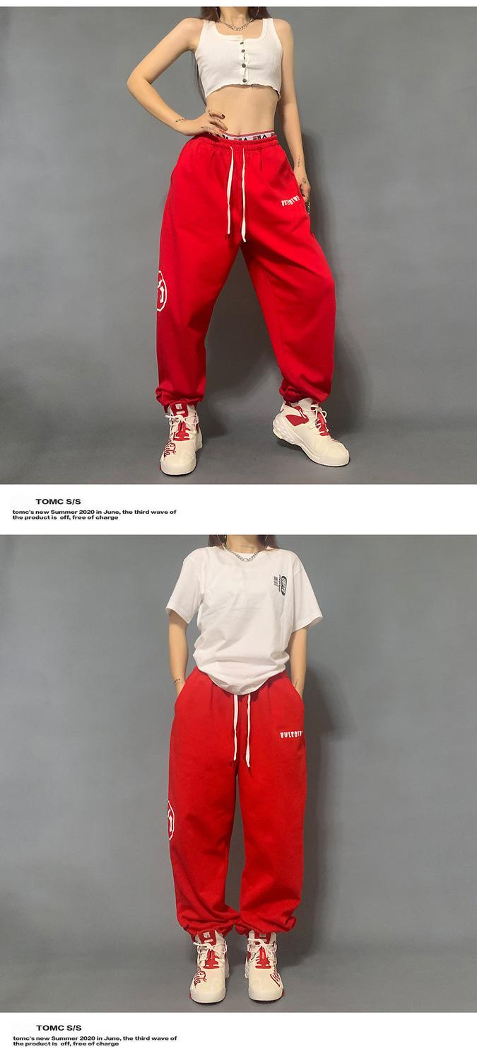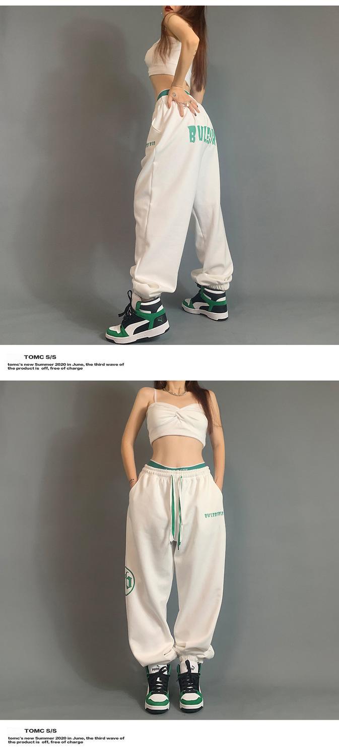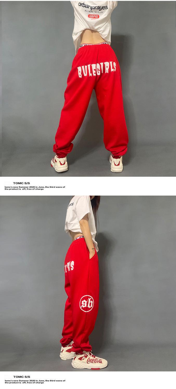 Pantalones deportivos estampados nuevos transfronterizos europeos y americanos para mujer, de cintura alta, holgados, con lazo en la pierna, hip-hop, hip-hop, pantalones largos de chándal, venta al por mayor en stock