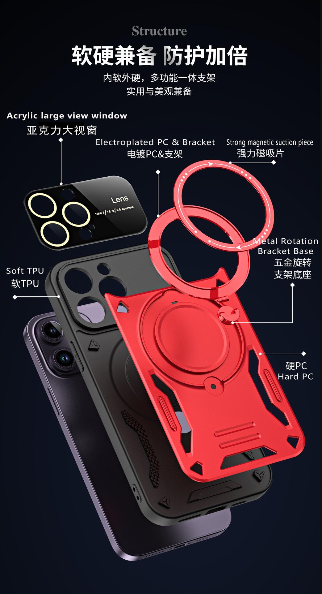 Adecuado para Funda de Teléfono Móvil Iphone15Pro Soporte Giratorio Youdun Succión Magnética Apple 14 Ventana Grande Anti-Caída 13 Carcasa Dura 2
