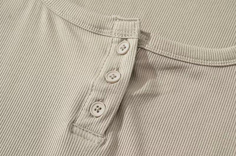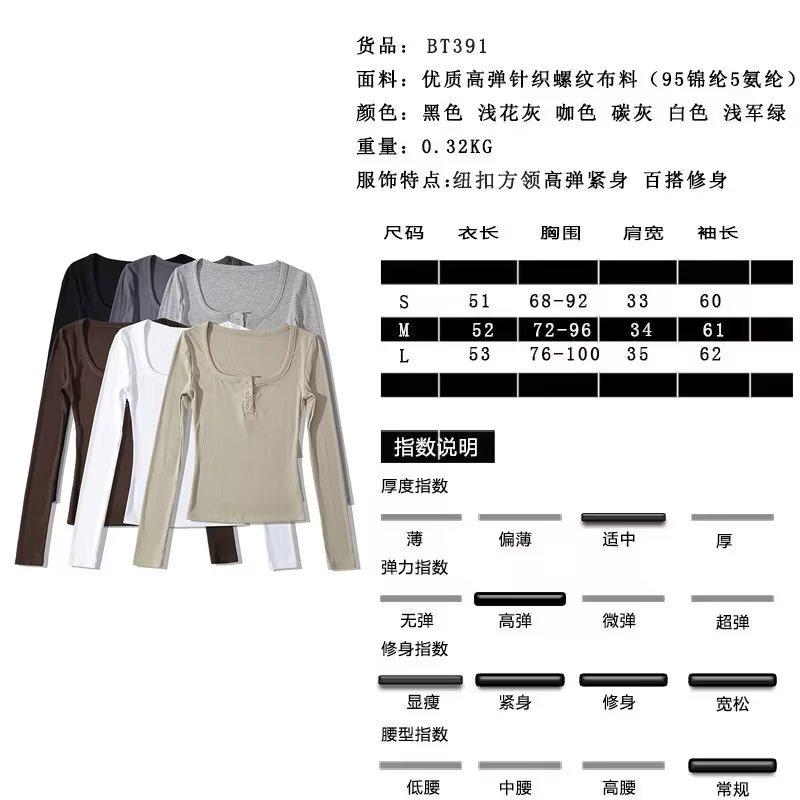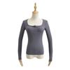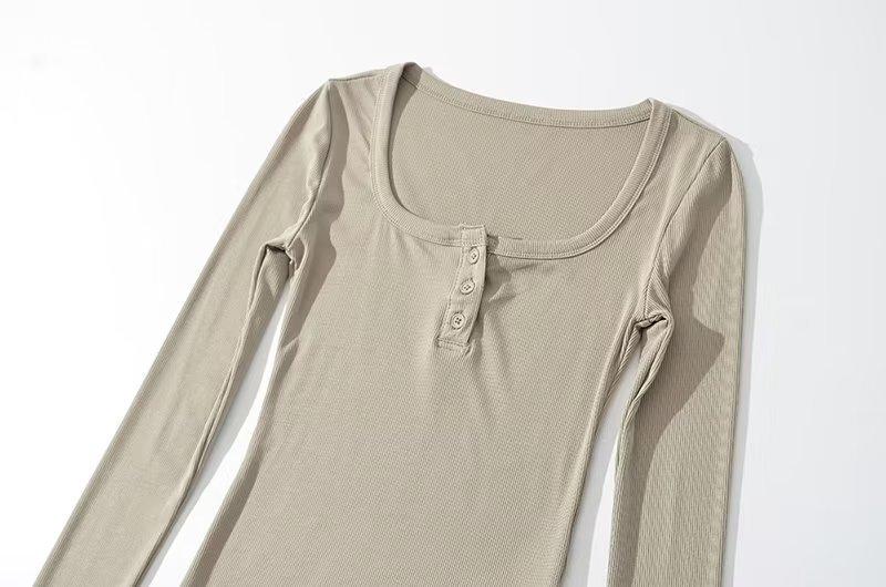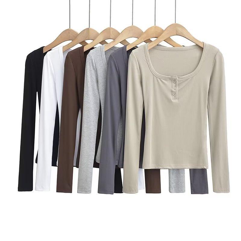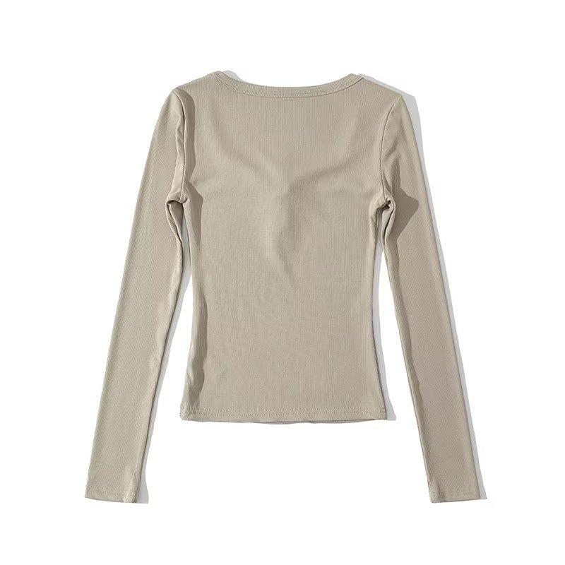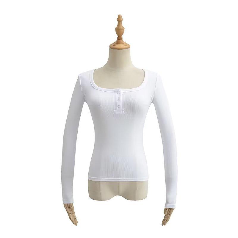 Camiseta ajustada de manga larga con botones y cuello cuadrado para mujer, estilo europeo y americano, otoño e invierno, C75372