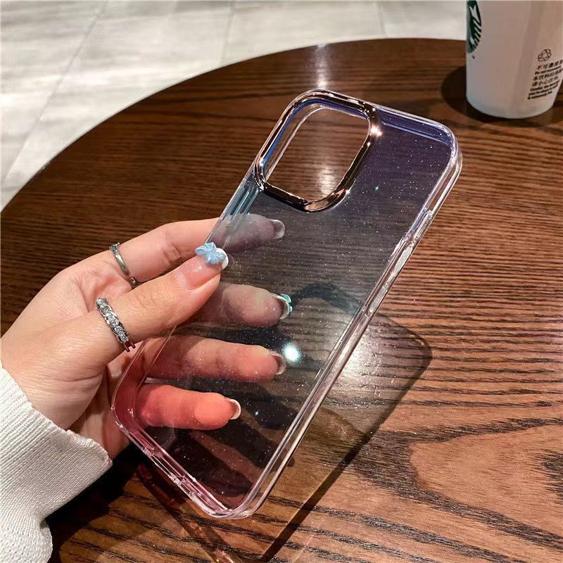 Adecuado para Iphone15 Cielo Estrellado Degradado Brillo Unicolor Funda para Teléfono Móvil Apple 14 Carcasa Dura 16Promax Transparente Todo Incluido