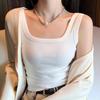 Camisola Negra Ropa Interior para Mujer 2025 Verano Nuevo Traje Camiseta Básica Color Puro Elegante Slim Top de Tirantes