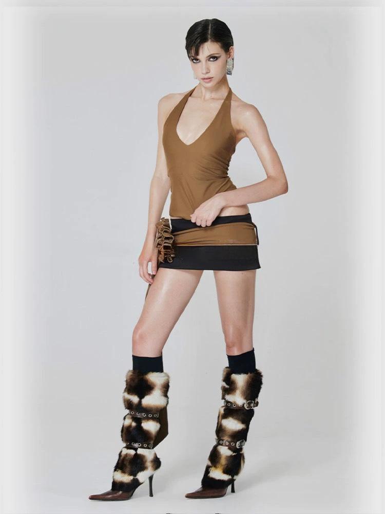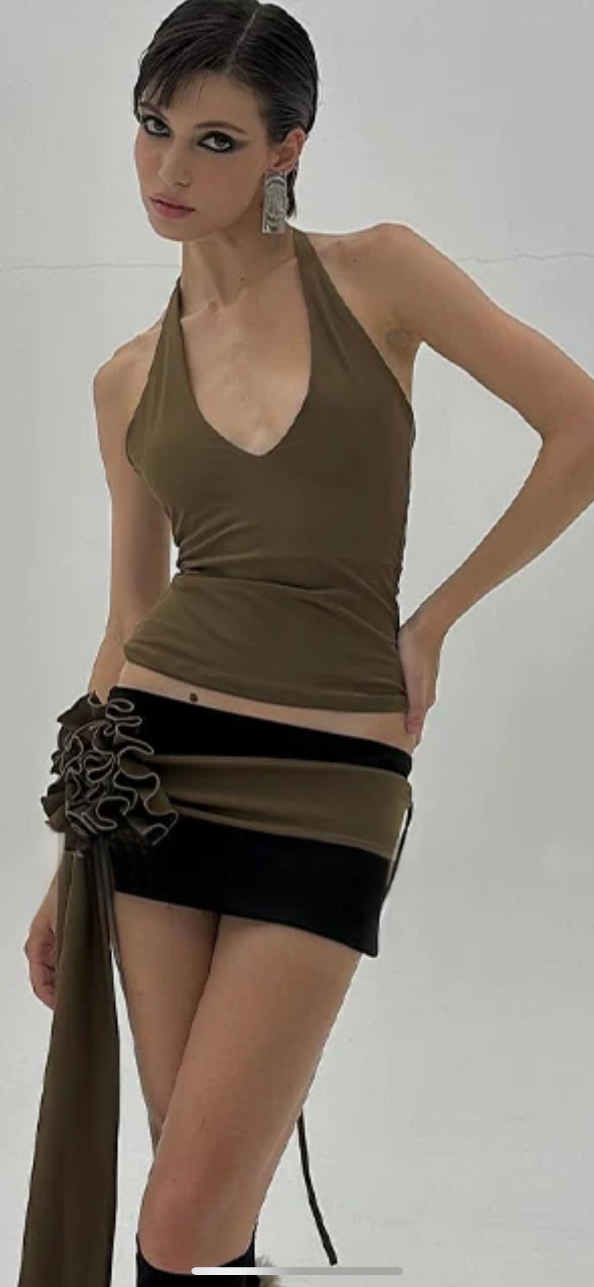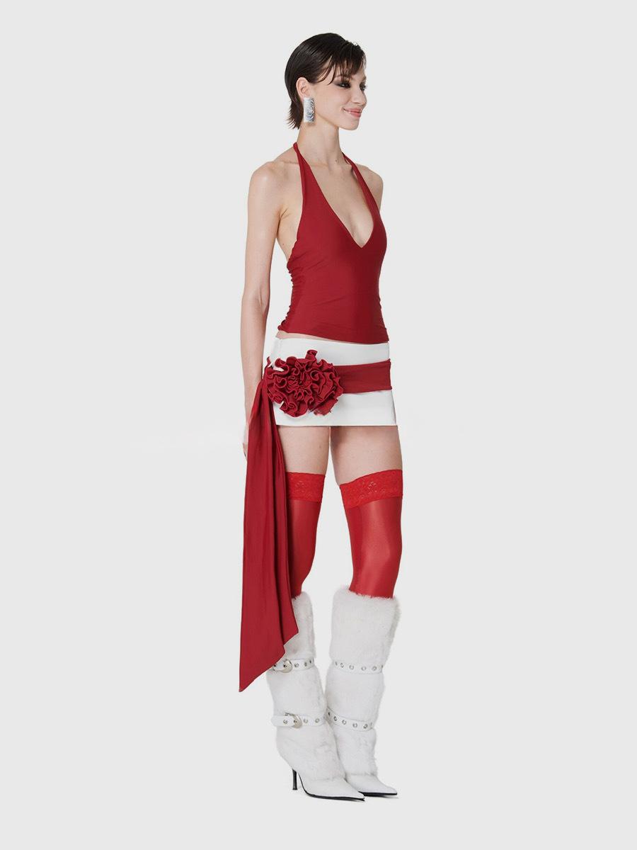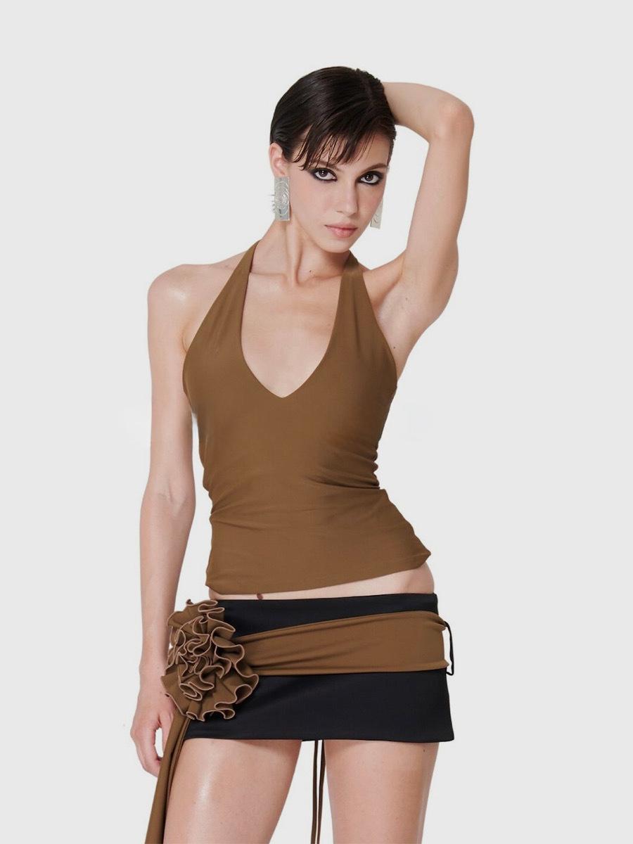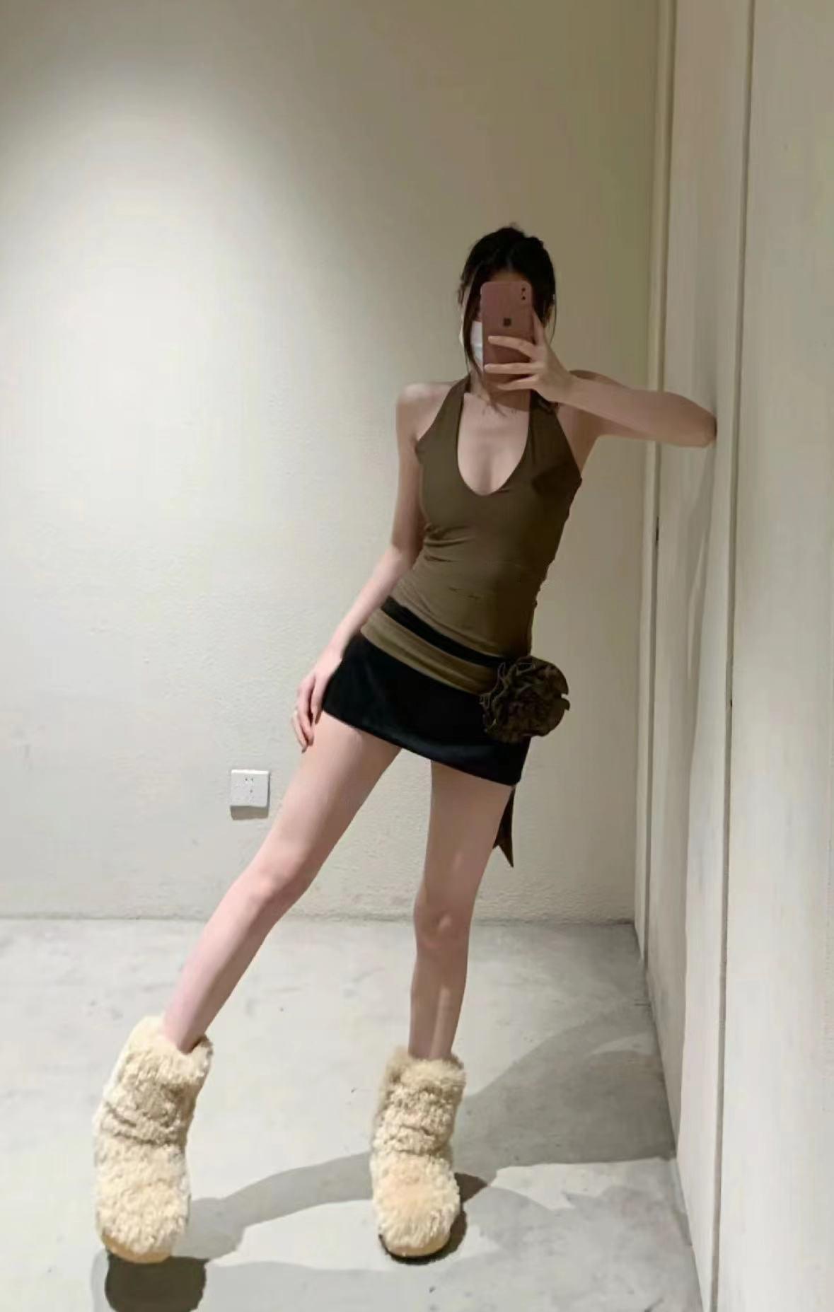 Trajes de mujer verano estilo dulce y picante sexy deseo puro minifalda de cadera diseño nicho ins top camisola halter de chica hot
