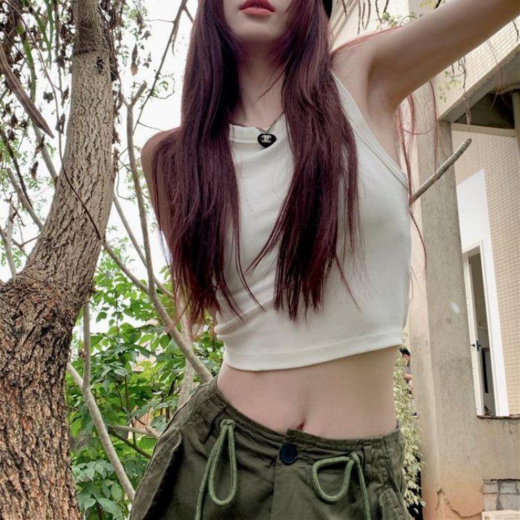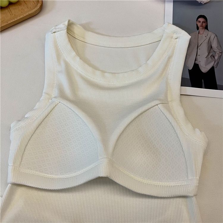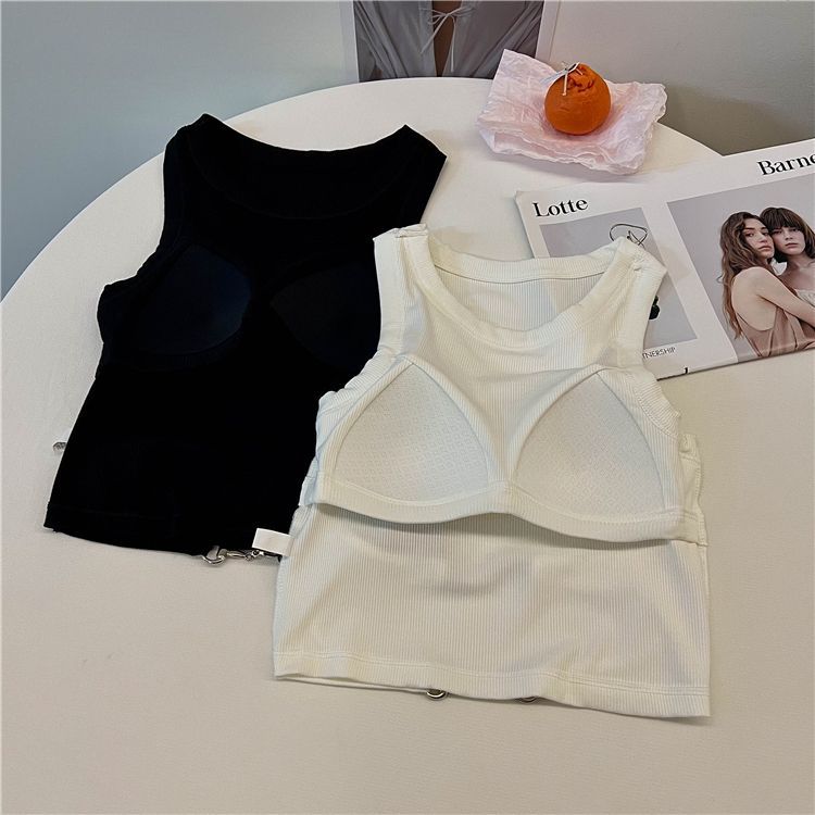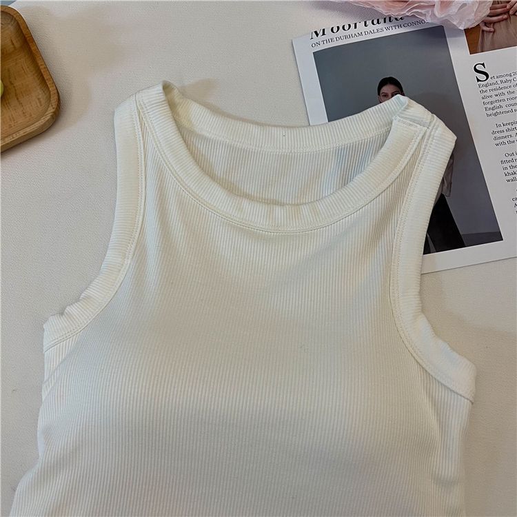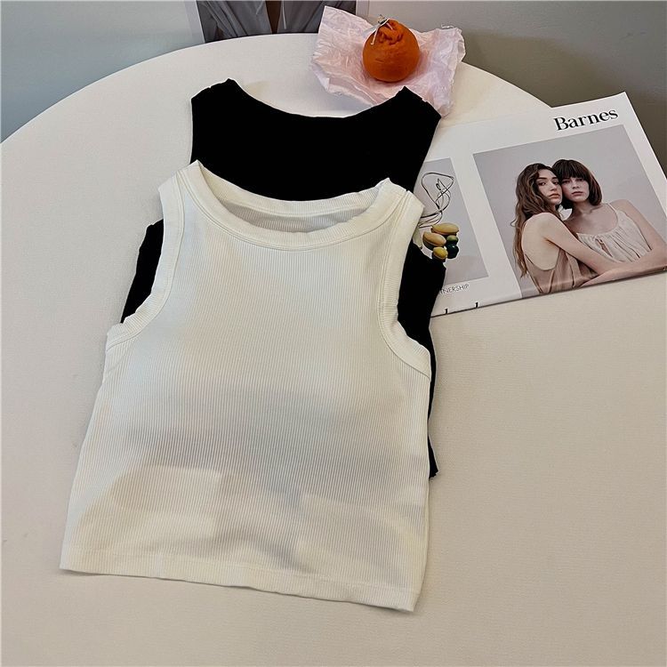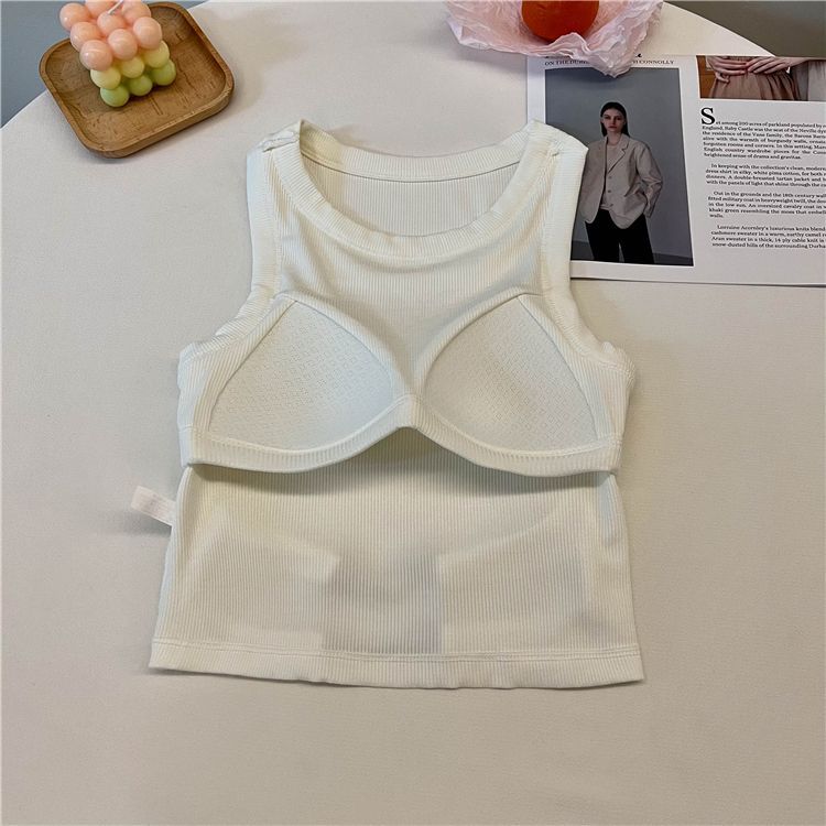 Camisola blanca en forma de I para mujer, chaleco de verano con almohadilla para el pecho, estilo americano, sin mangas, prenda exterior, top corto, ropa para mujer