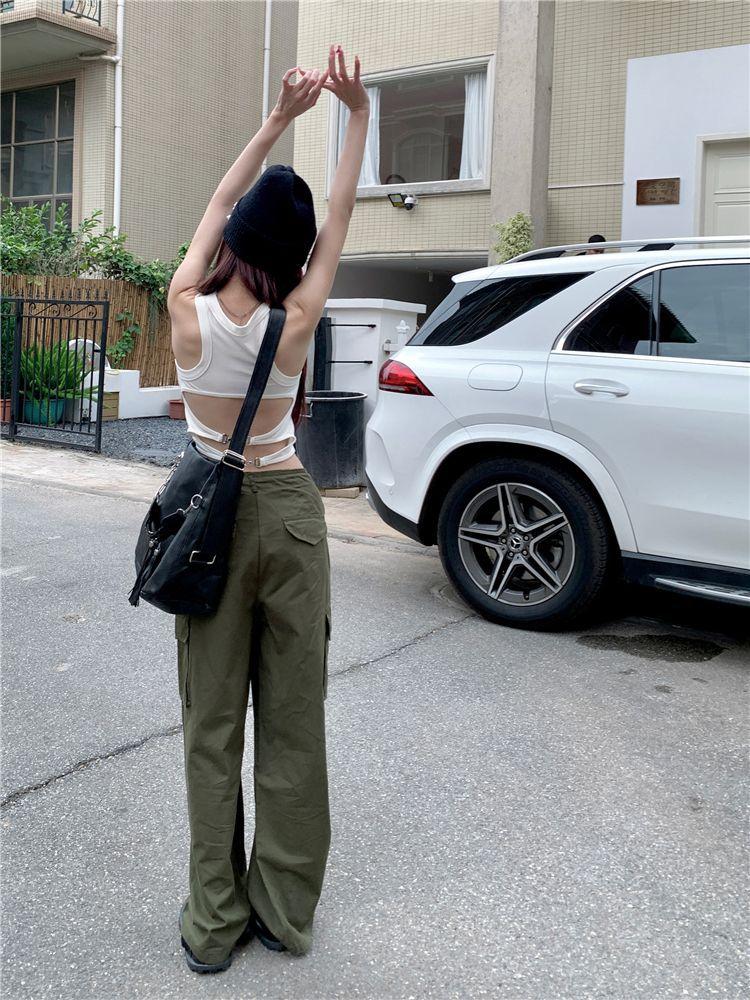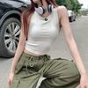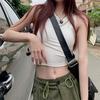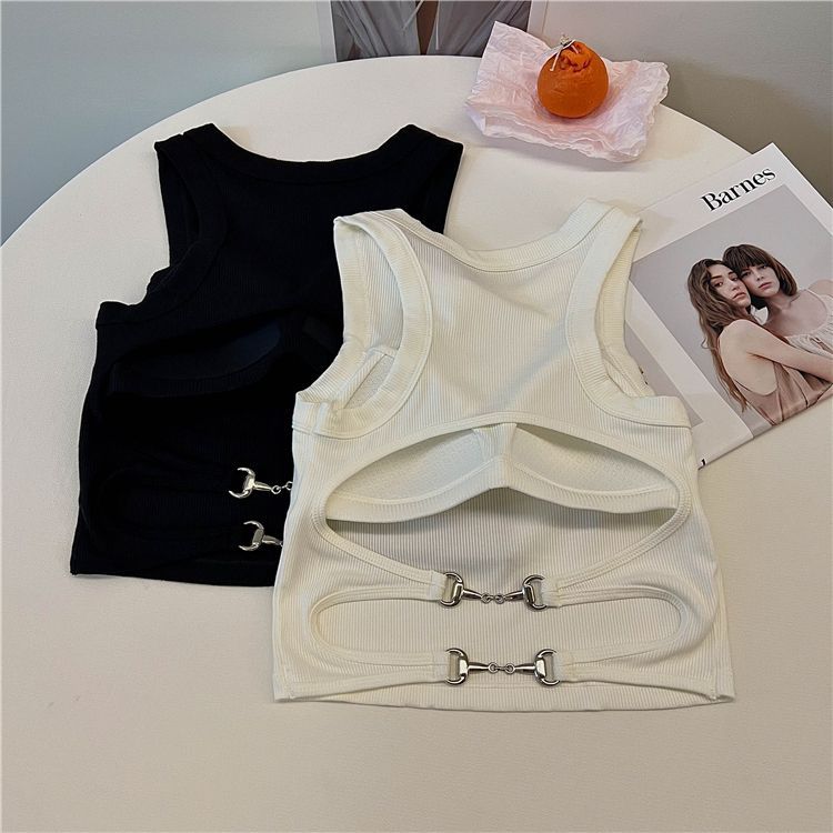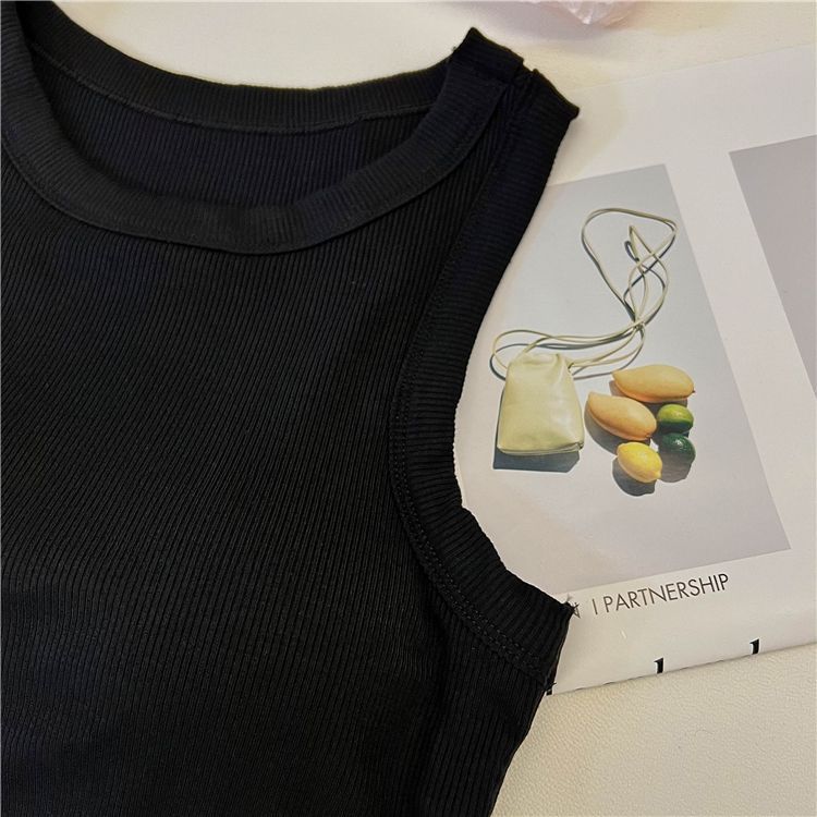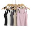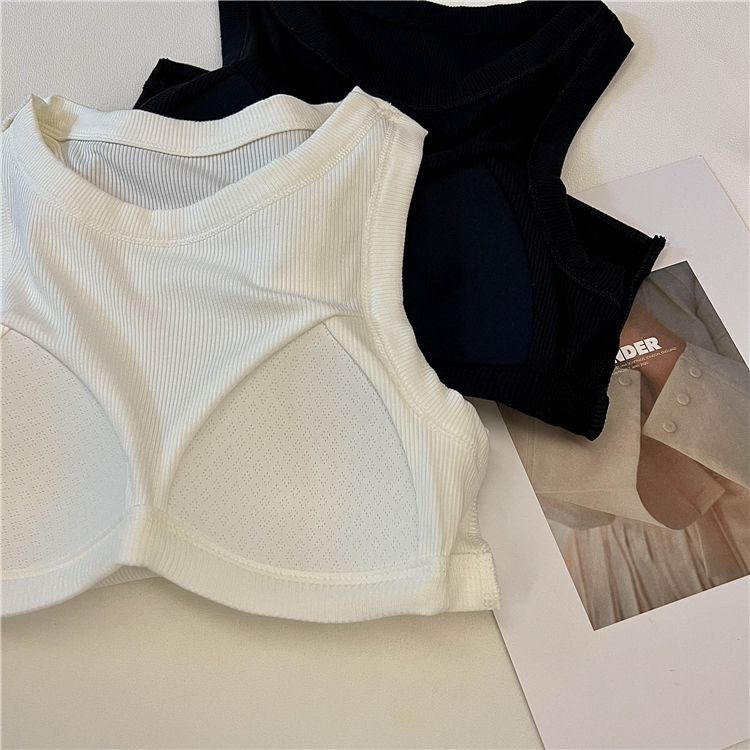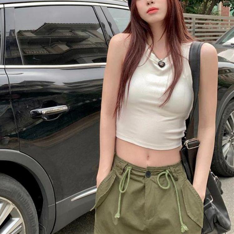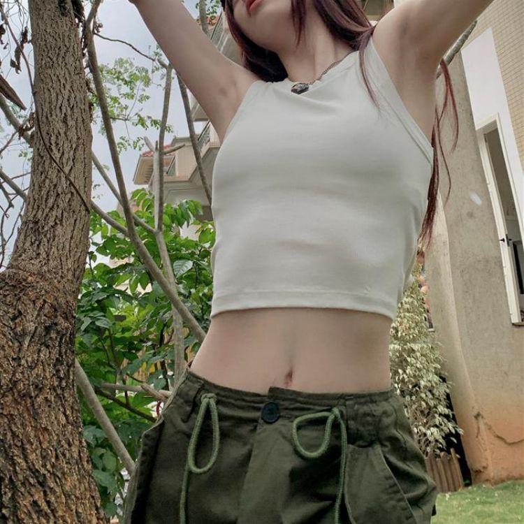 Camisola blanca en forma de I para mujer, chaleco de verano con almohadilla para el pecho, estilo americano, sin mangas, prenda exterior, top corto, ropa para mujer