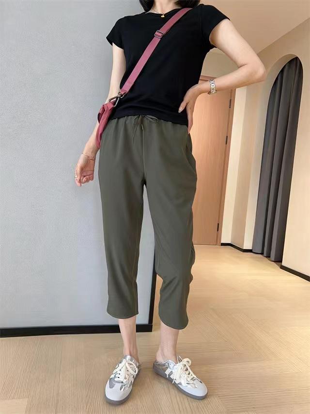 Tu marca Lu pantalones deportivos de yoga de cuatro lados transpirables de secado rápido para mujer pantalones Harem delgados de nueve puntos delgados S0529K