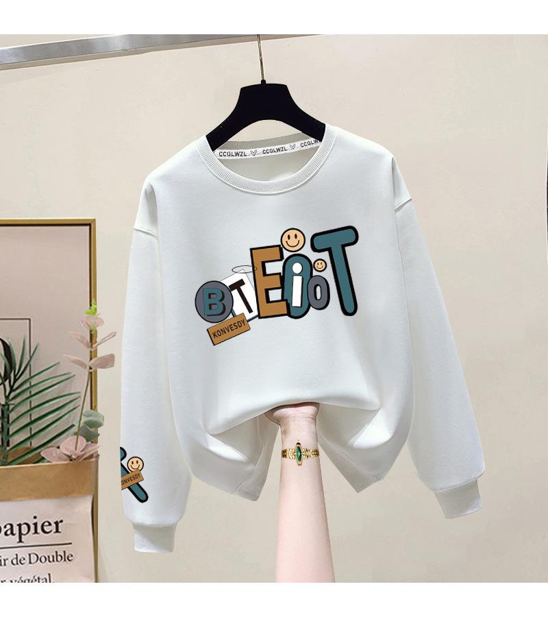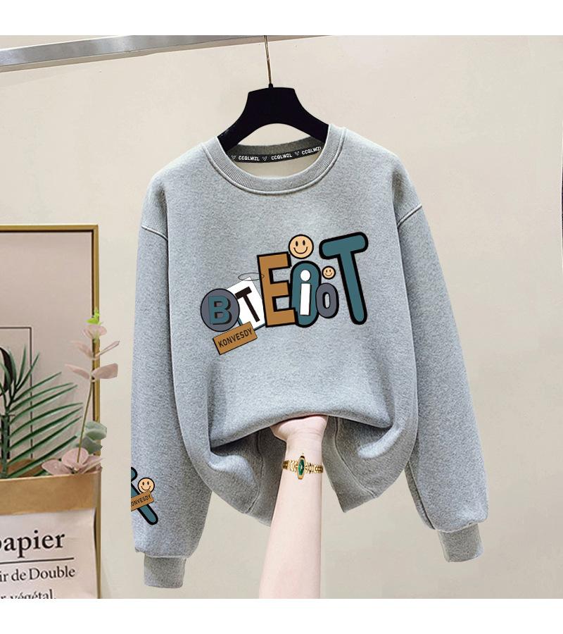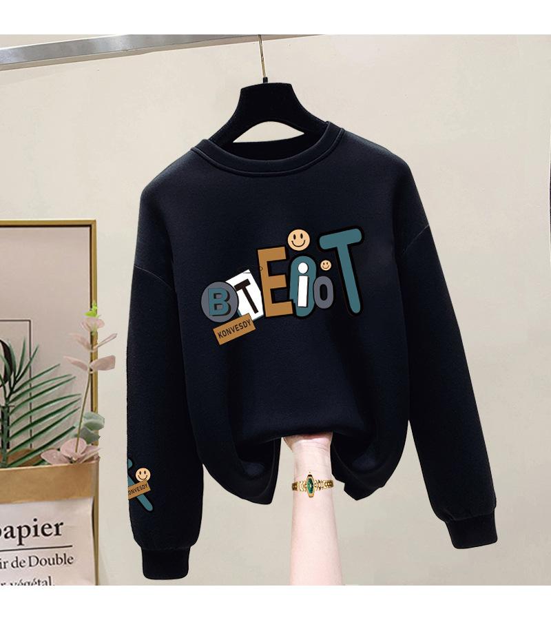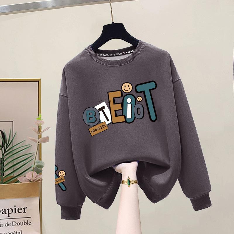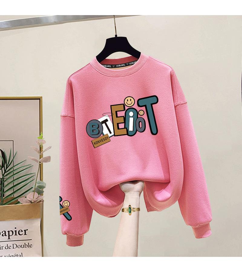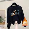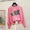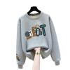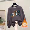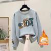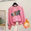 Suéter de punto de cuello redondo de moda al por mayor de fábrica para mujer, otoño e invierno, forrado de vellón, extra grueso de algodón de manga larga, top juvenil