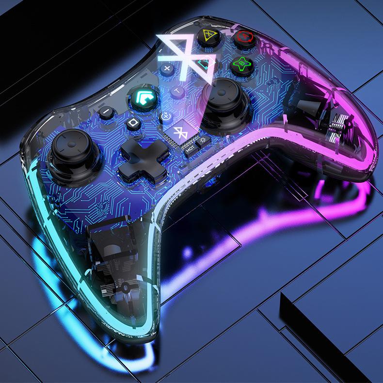 Controlador de juego inalámbrico Bluetooth luminoso para Switch/PS3/PC/teléfono móvil Android iOS con vibración RGB