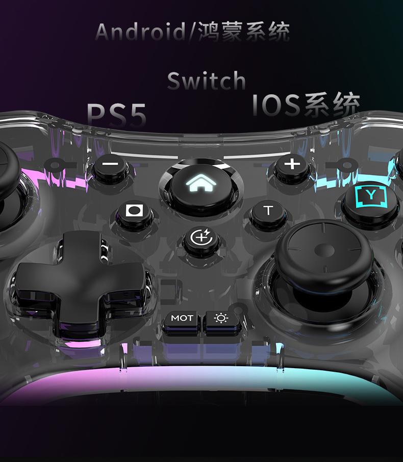 Switch de modelo privado/Teléfono móvil Android Controlador de juegos Bluetooth switch pro mango luminoso transparente deslumbramiento RGB