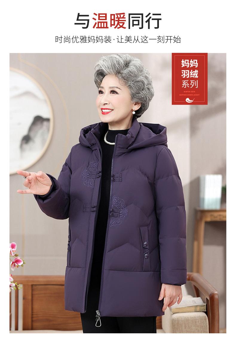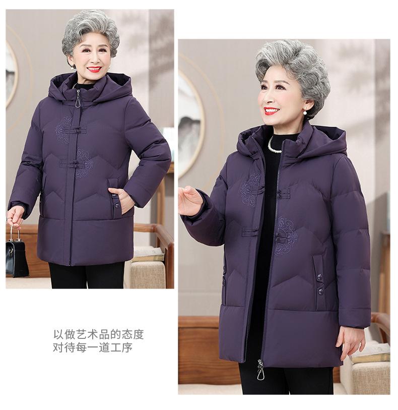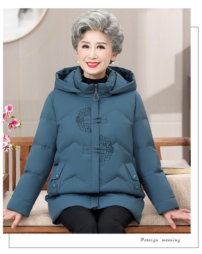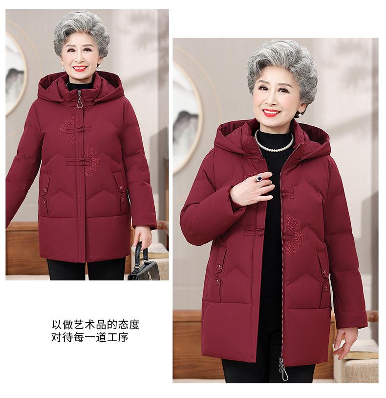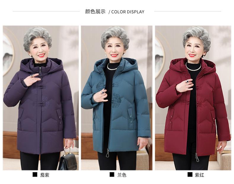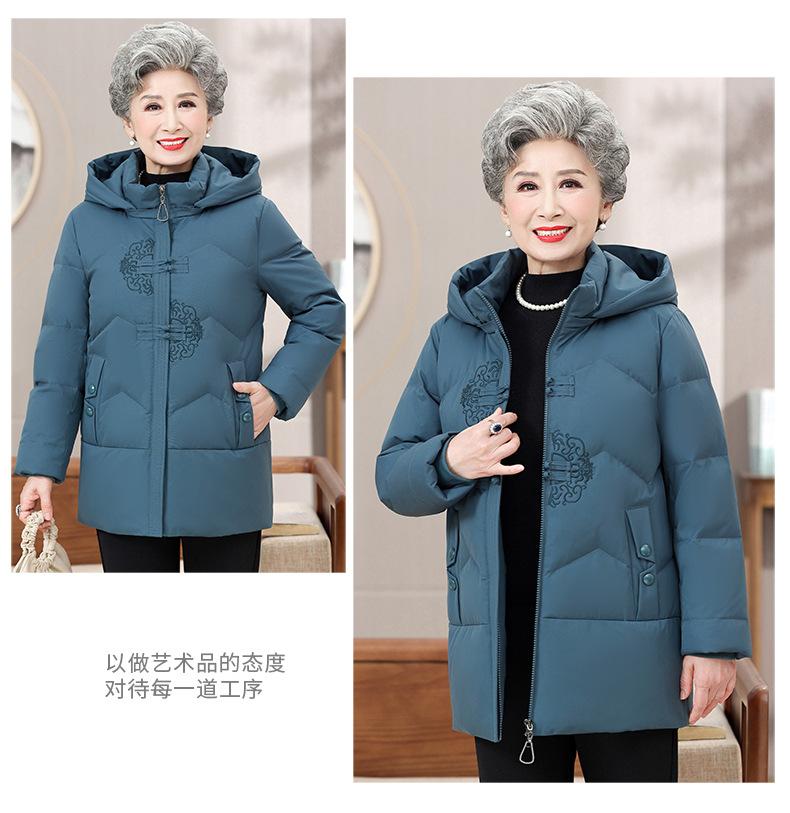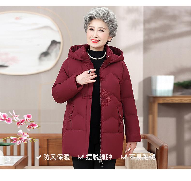2024 Nuevo Invierno Chaqueta de Plumón de Abuela, para Madre de Mediana Edad y Anciana, Plumón de Pato Blanco Suelta Cálida con Capucha