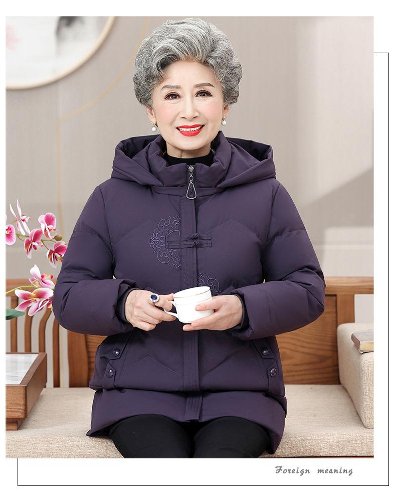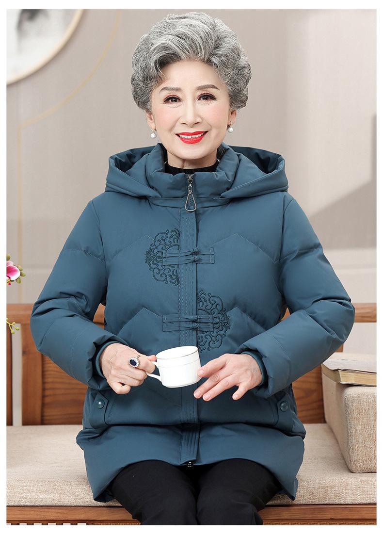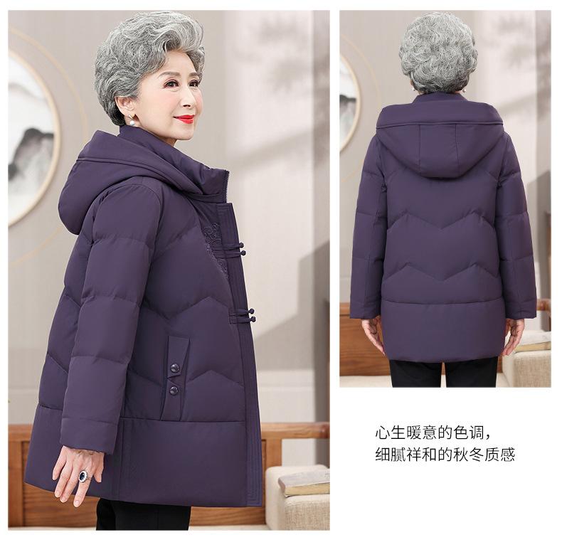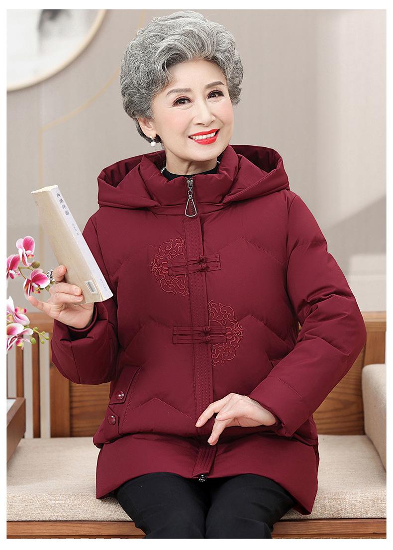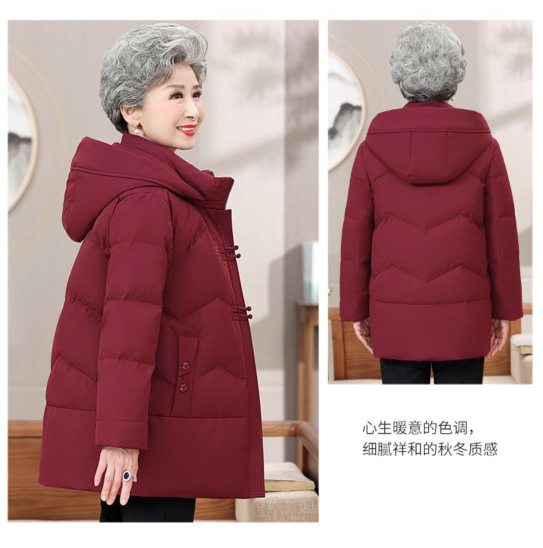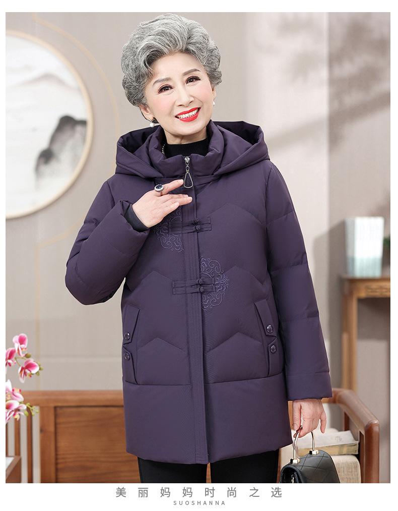 2024 Nuevo Invierno Chaqueta de Plumón de Abuela, para Madre de Mediana Edad y Anciana, Plumón de Pato Blanco Suelta Cálida con Capucha