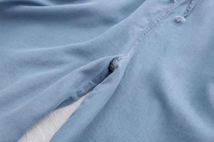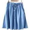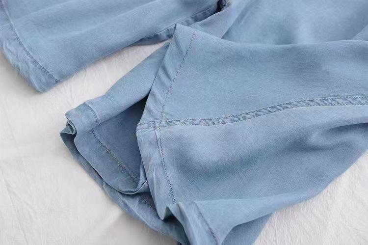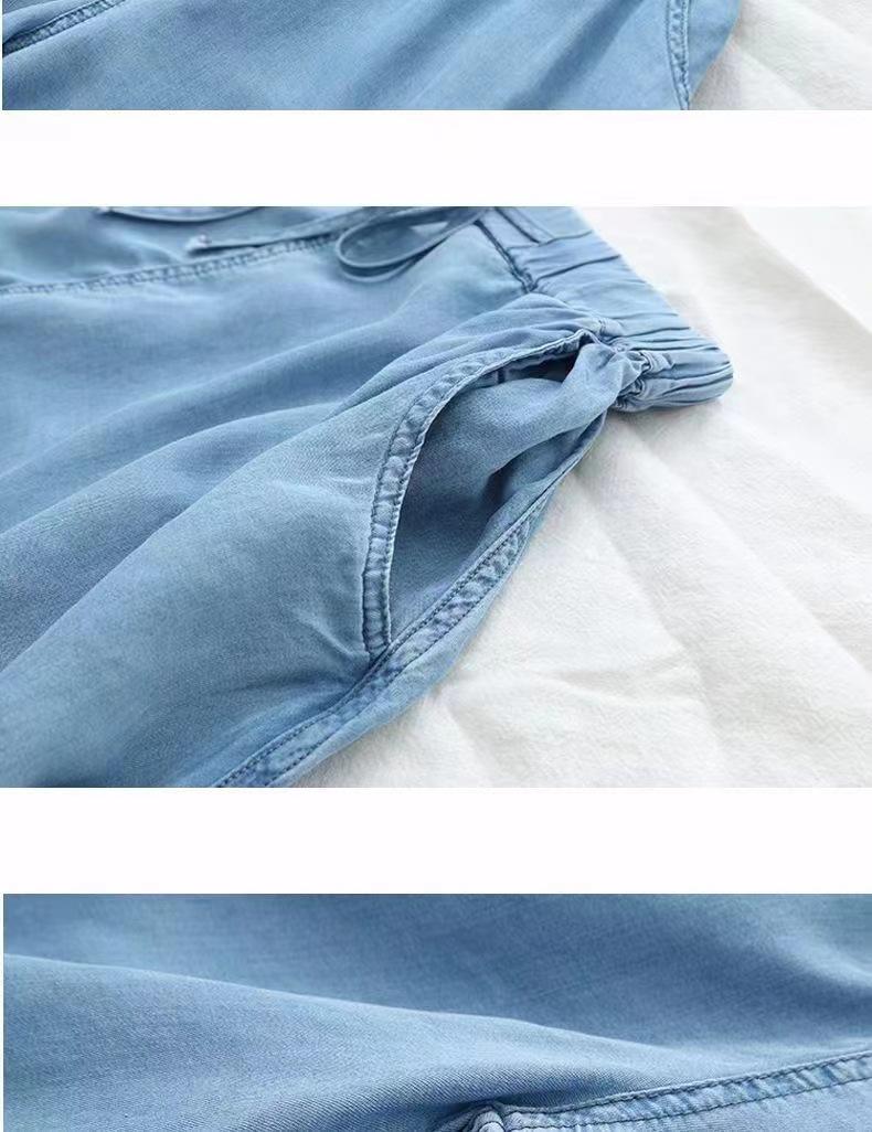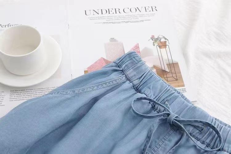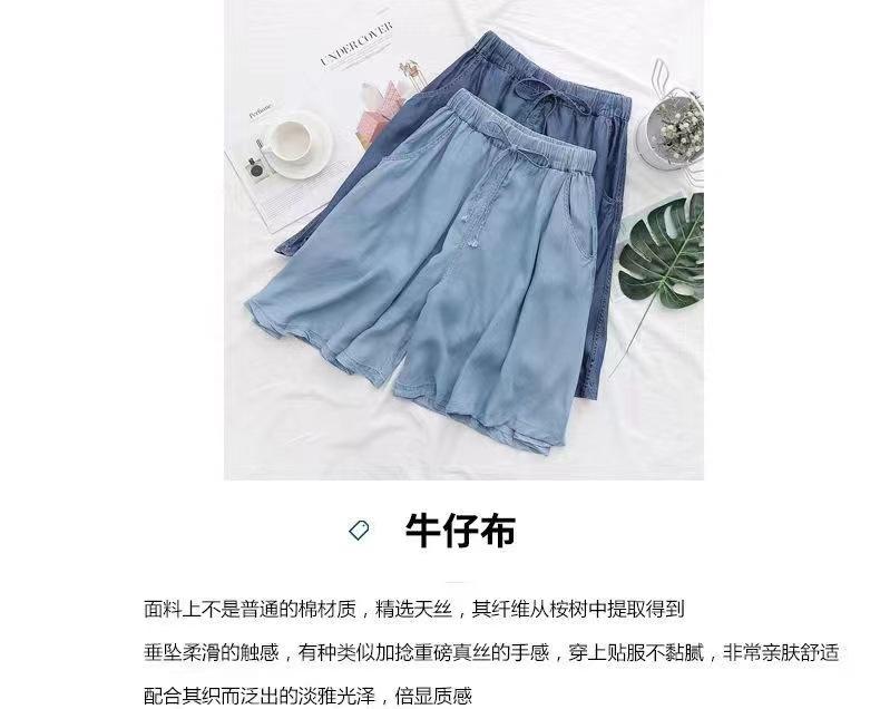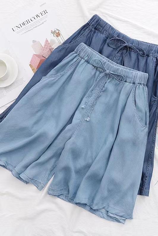 Pantalones cortos de mezclilla Tencel para mujer, de cintura alta, ultrafinos, de verano, holgados, ajustados, de pierna ancha y hasta la mitad de la pantorrilla.