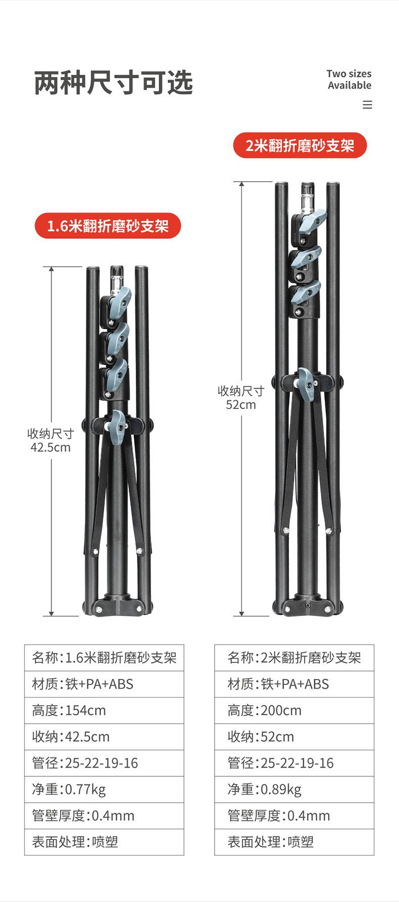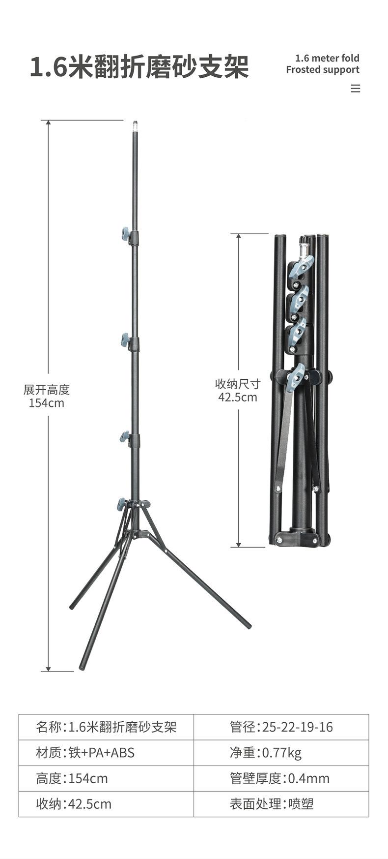 Soporte mate anti-plegable de 1.6 m iluminación de piso a piso soporte en vivo trípode para fotografía de teléfono móvil y tableta