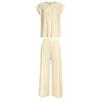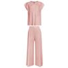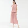 2025 Nuevo Verano para Mujer Tops Cuello en V Moda Suelto Slim Pantalones de Pierna Ancha Traje de Moda Conjunto Casual de Dos Piezas