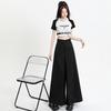 Pantalones casuales de pierna ancha y finos para mujer, de verano 2023, holgados y modernos, color negro