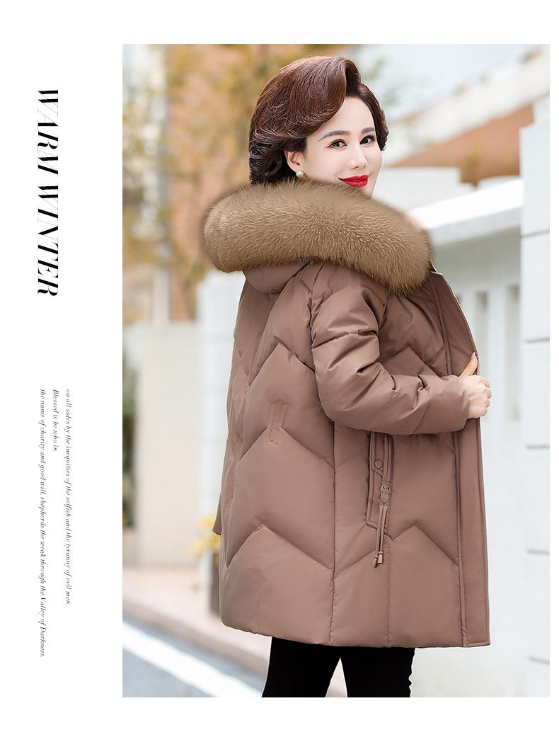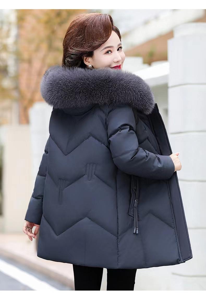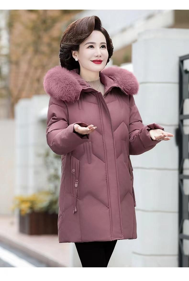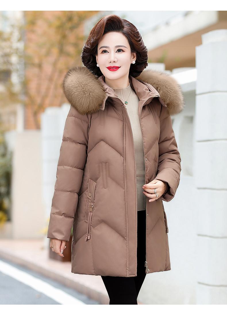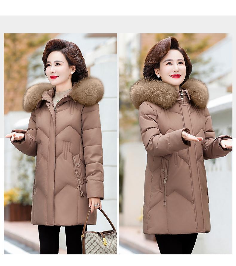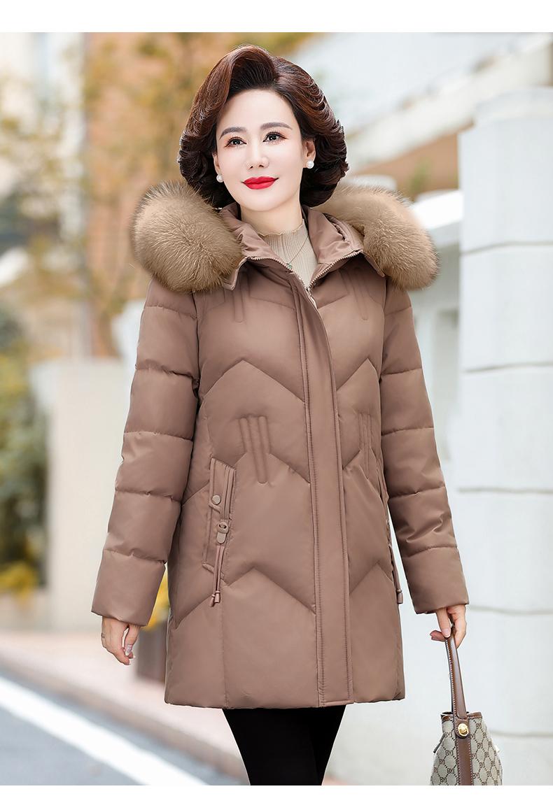 Marca Chaqueta de plumón de invierno genuina para mujer, Versión de longitud media para madres de mediana edad y mayores, Abrigo grueso de corte ajustado