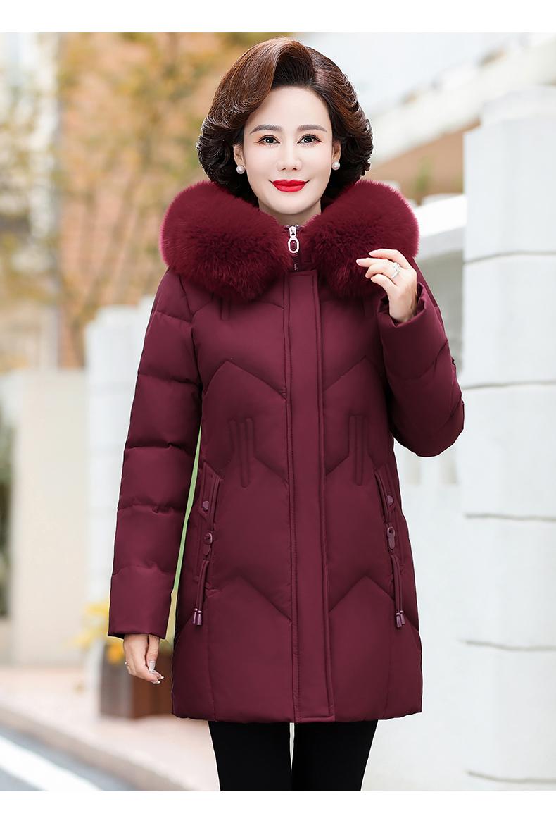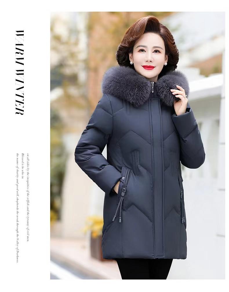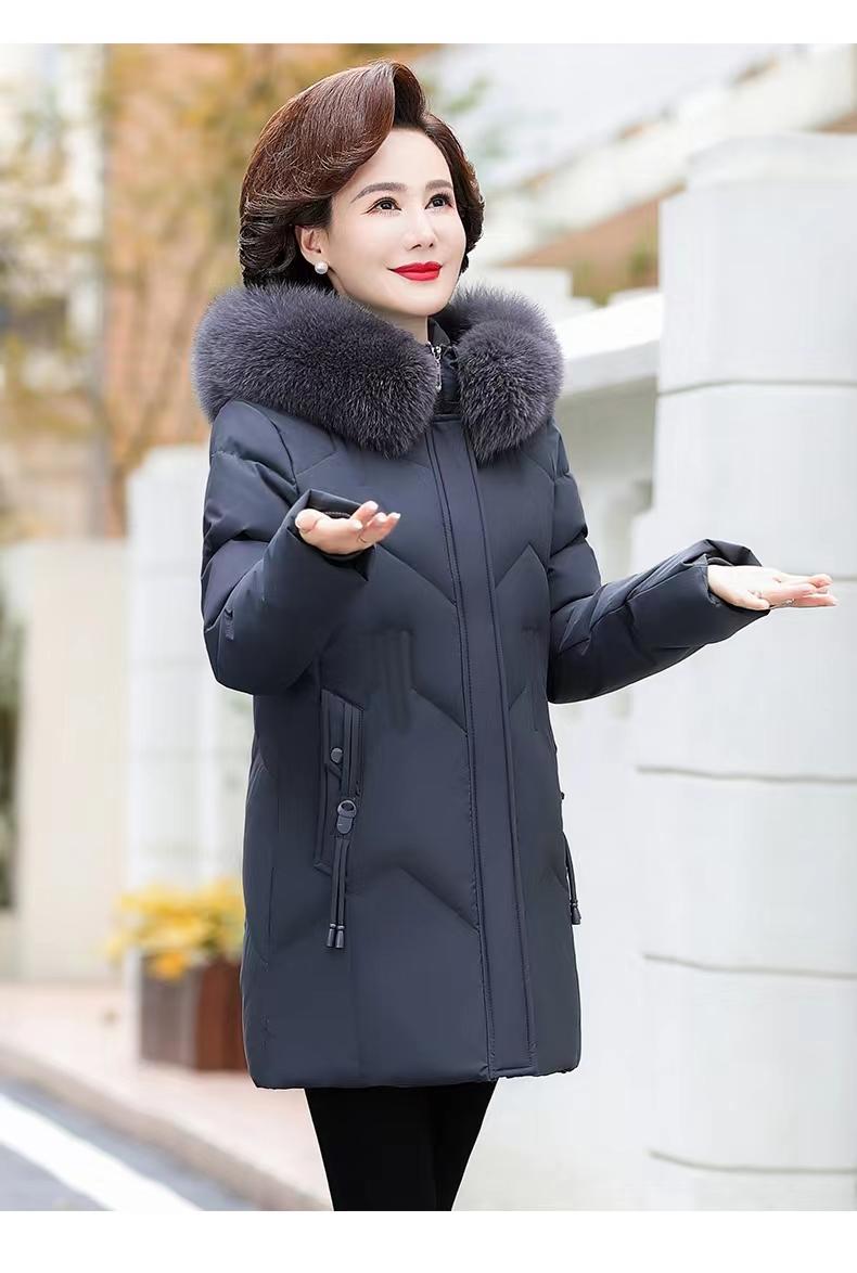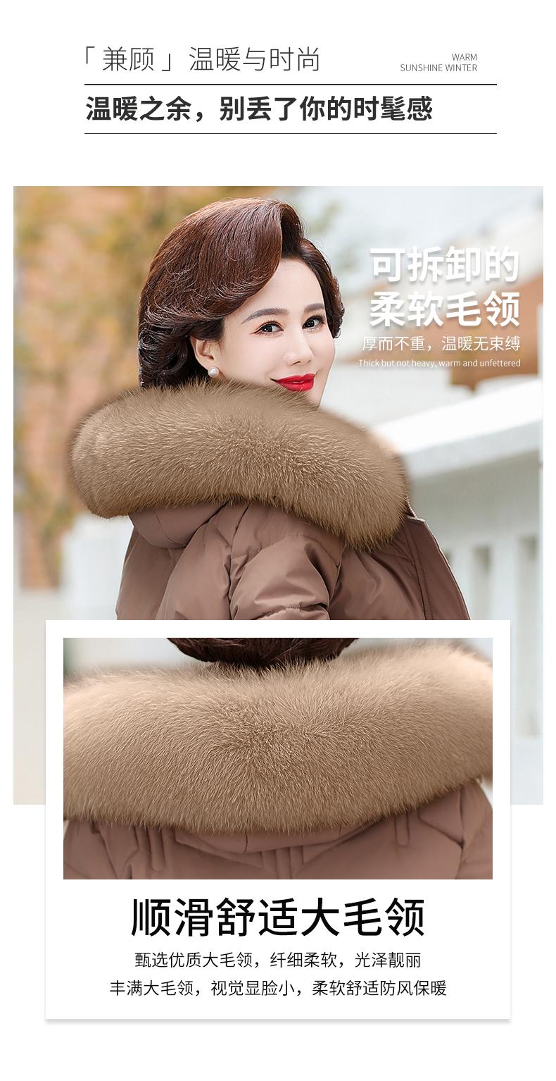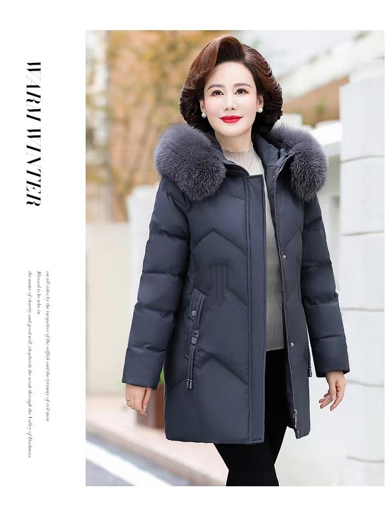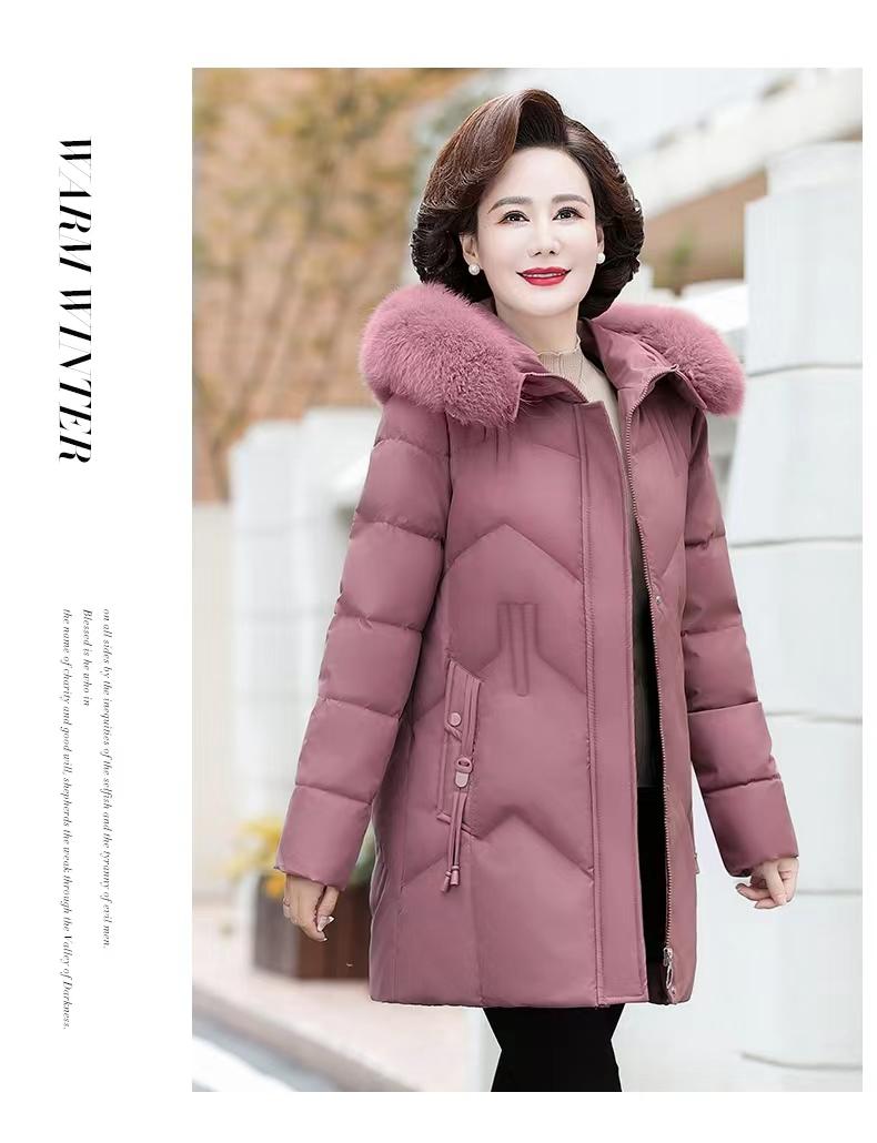 Marca Chaqueta de plumón de invierno genuina para mujer, Versión de longitud media para madres de mediana edad y mayores, Abrigo grueso de corte ajustado