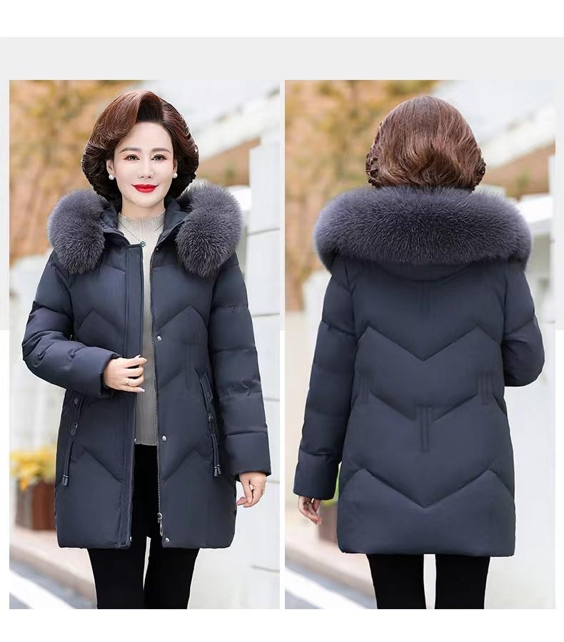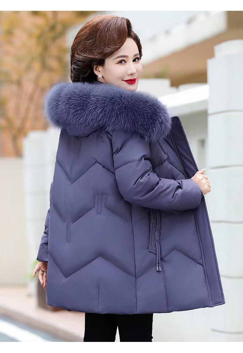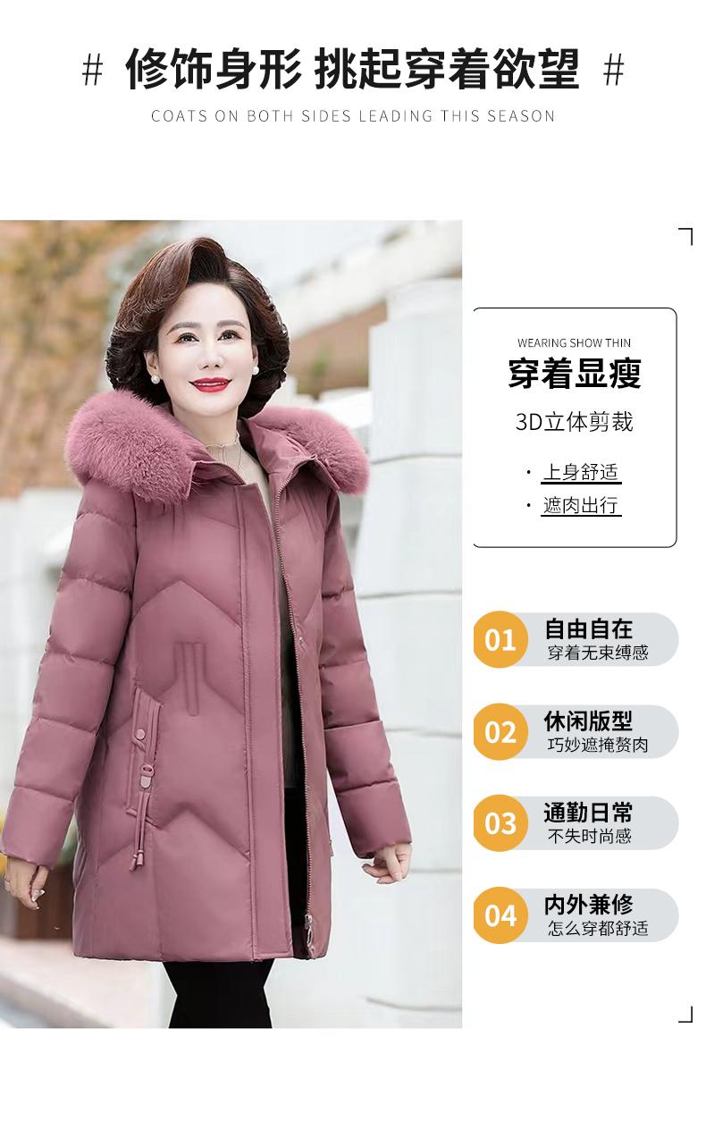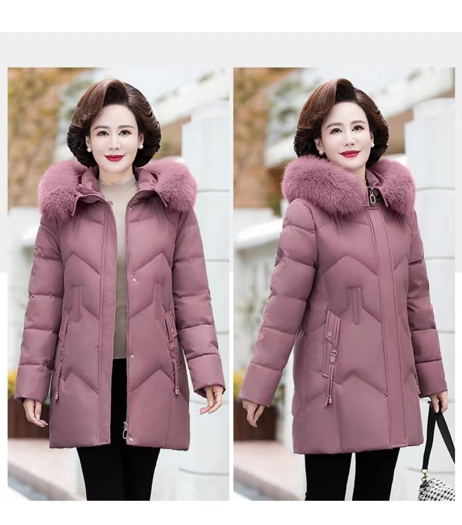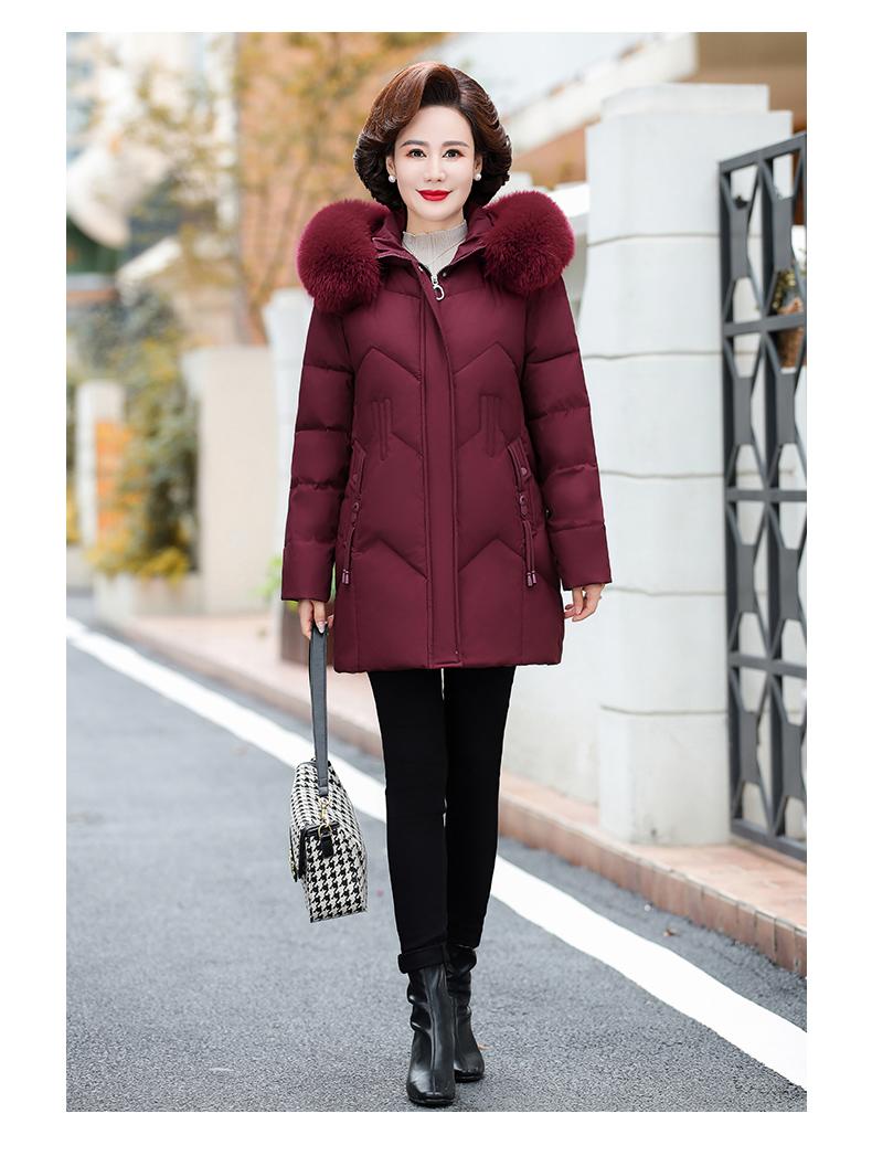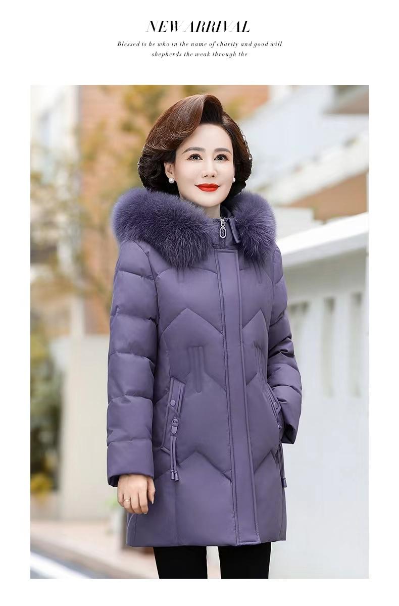Marca Chaqueta de plumón de invierno genuina para mujer, Versión de longitud media para madres de mediana edad y mayores, Abrigo grueso de corte ajustado