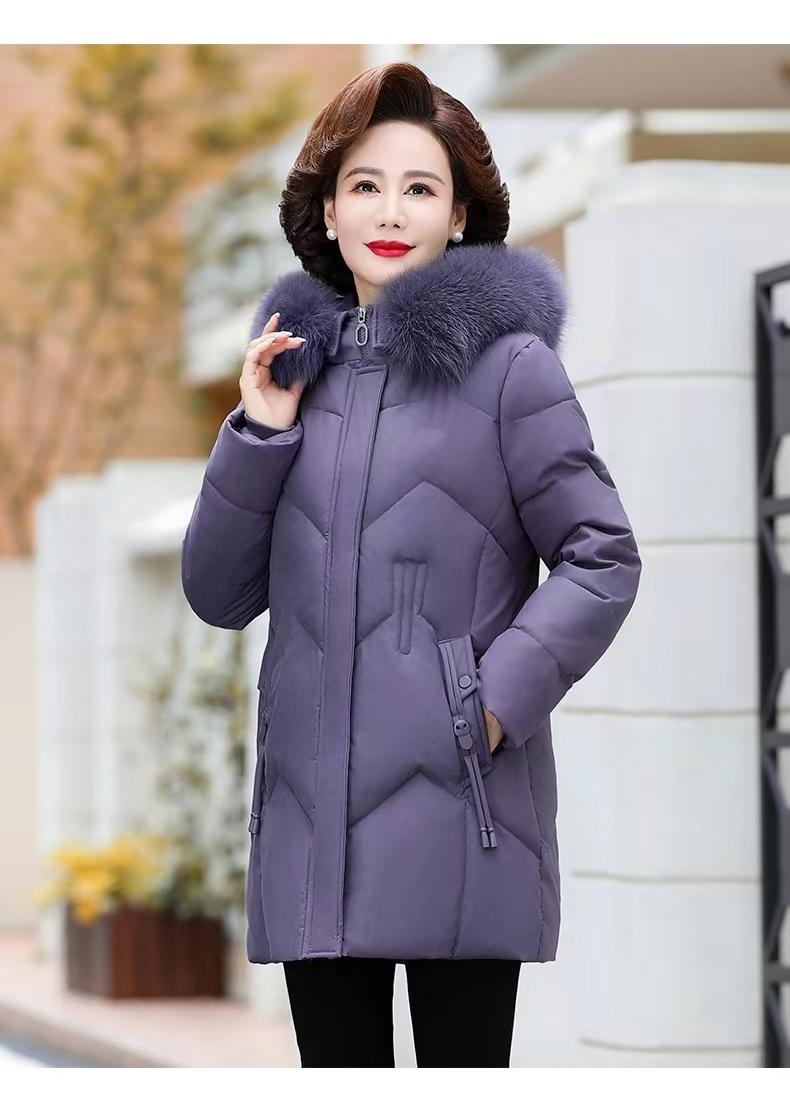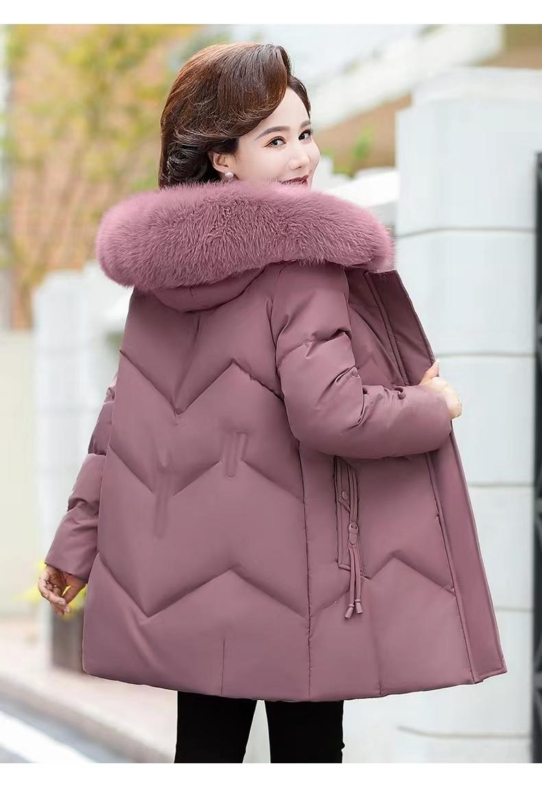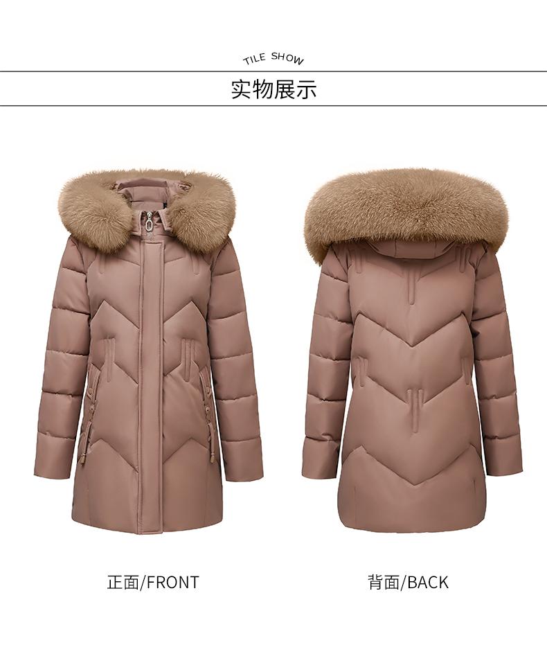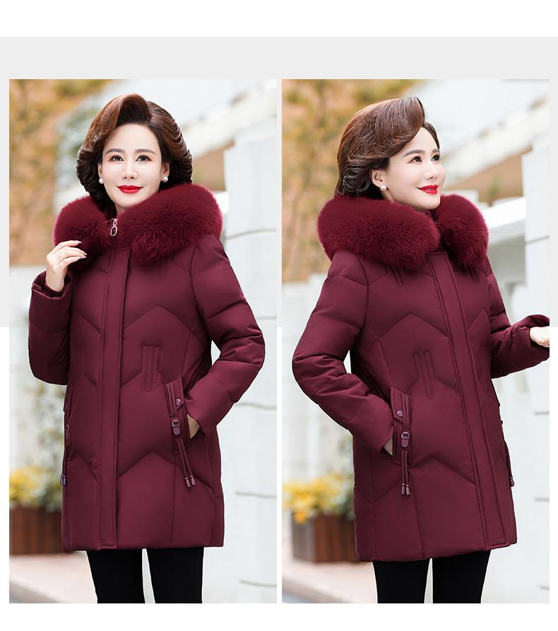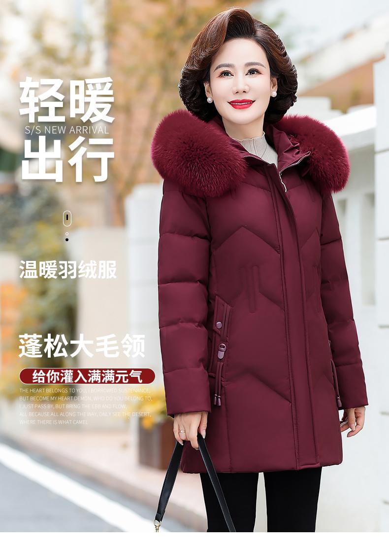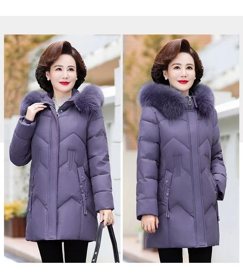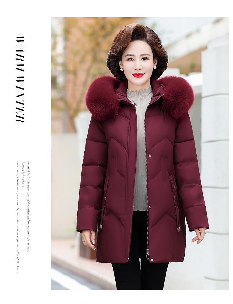 Marca Chaqueta de plumón de invierno genuina para mujer, Versión de longitud media para madres de mediana edad y mayores, Abrigo grueso de corte ajustado