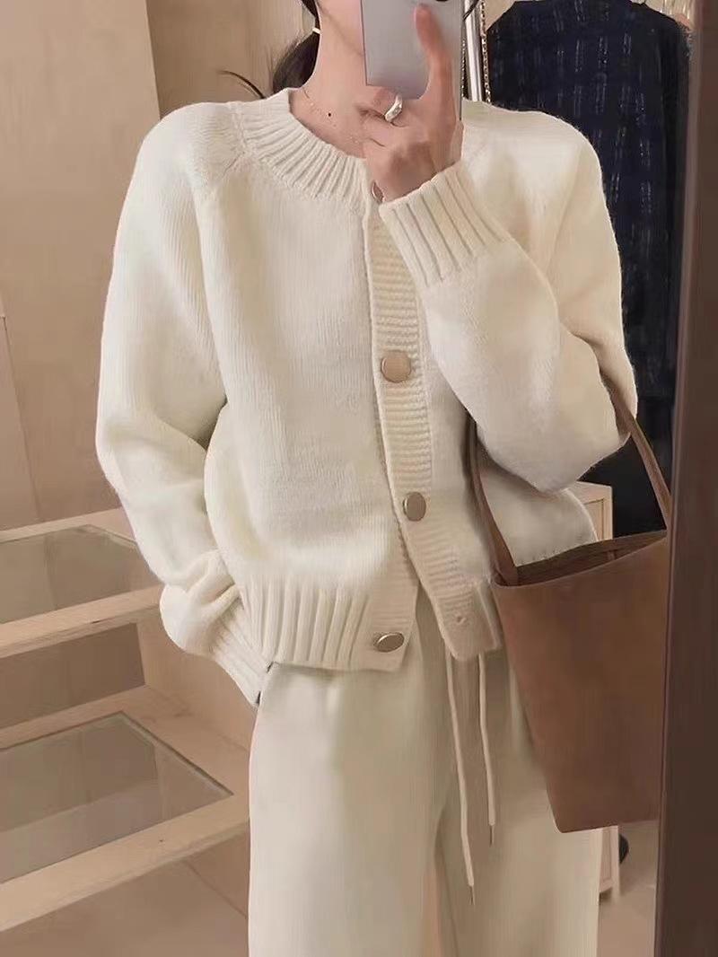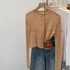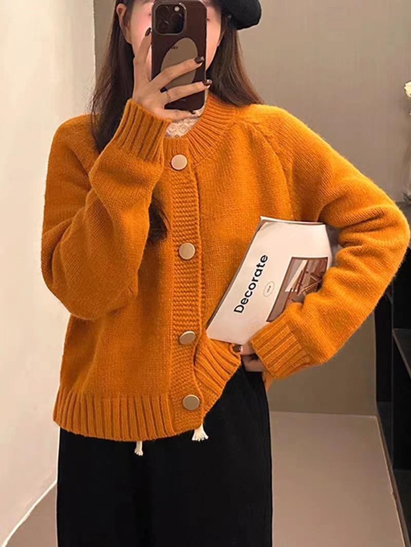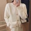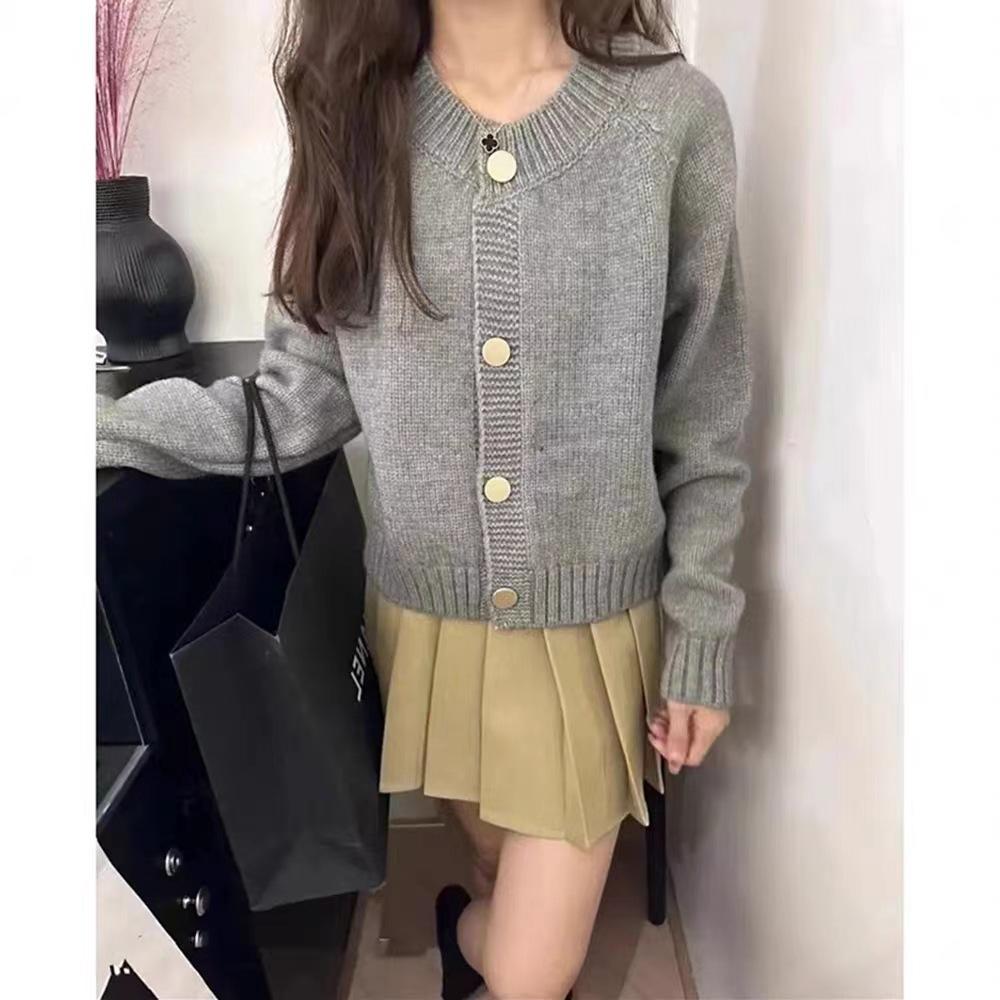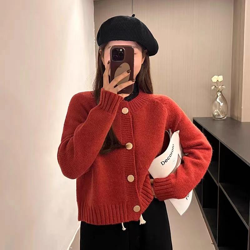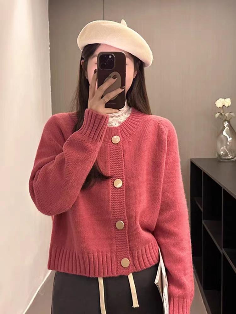 Cárdigan de punto con cuello redondo en color caramelo de nicho con diseño de estilo coreano para mujer, otoño e invierno 2024, nuevo abrigo tipo suéter pequeño