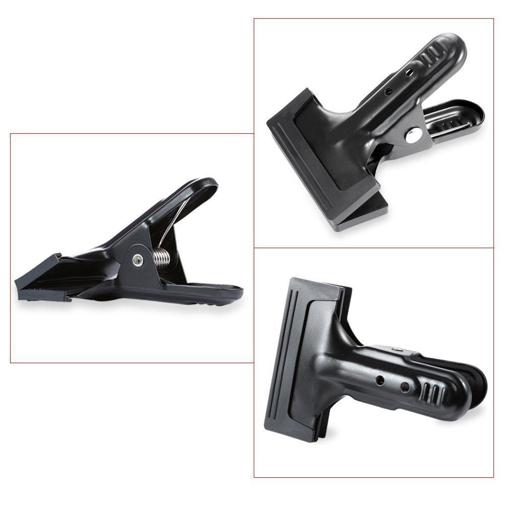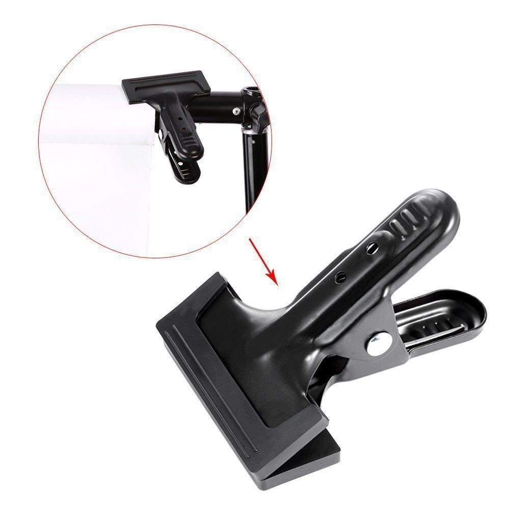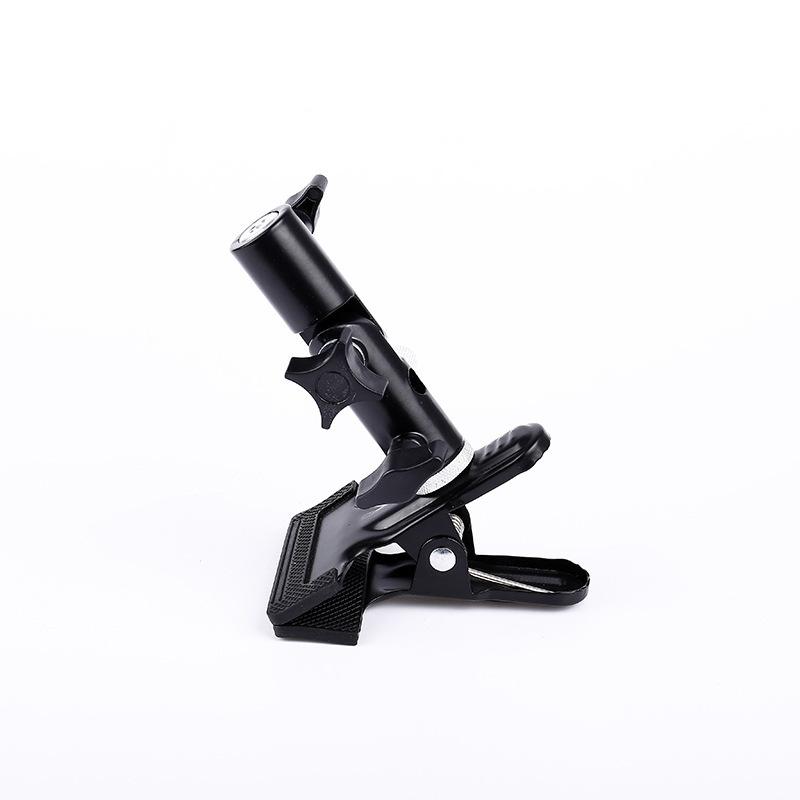 La pinza está hecha de metal, tiene una fuerte fuerza de sujeción y es duradera, mucho más duradera que el plástico. El extremo frontal de la pinza está envuelto en goma, tiene buena adherencia, no dañará las cosas, tiene alta tensión, puede sujetar tela de fondo, papel de fondo, fijar pequeños reflectores al fotografiar en exteriores, añadir flores pequeñas, hierba pequeña; o usarse con otros accesorios como tornillos de conexión, pinzas de conexión mágica, etc.