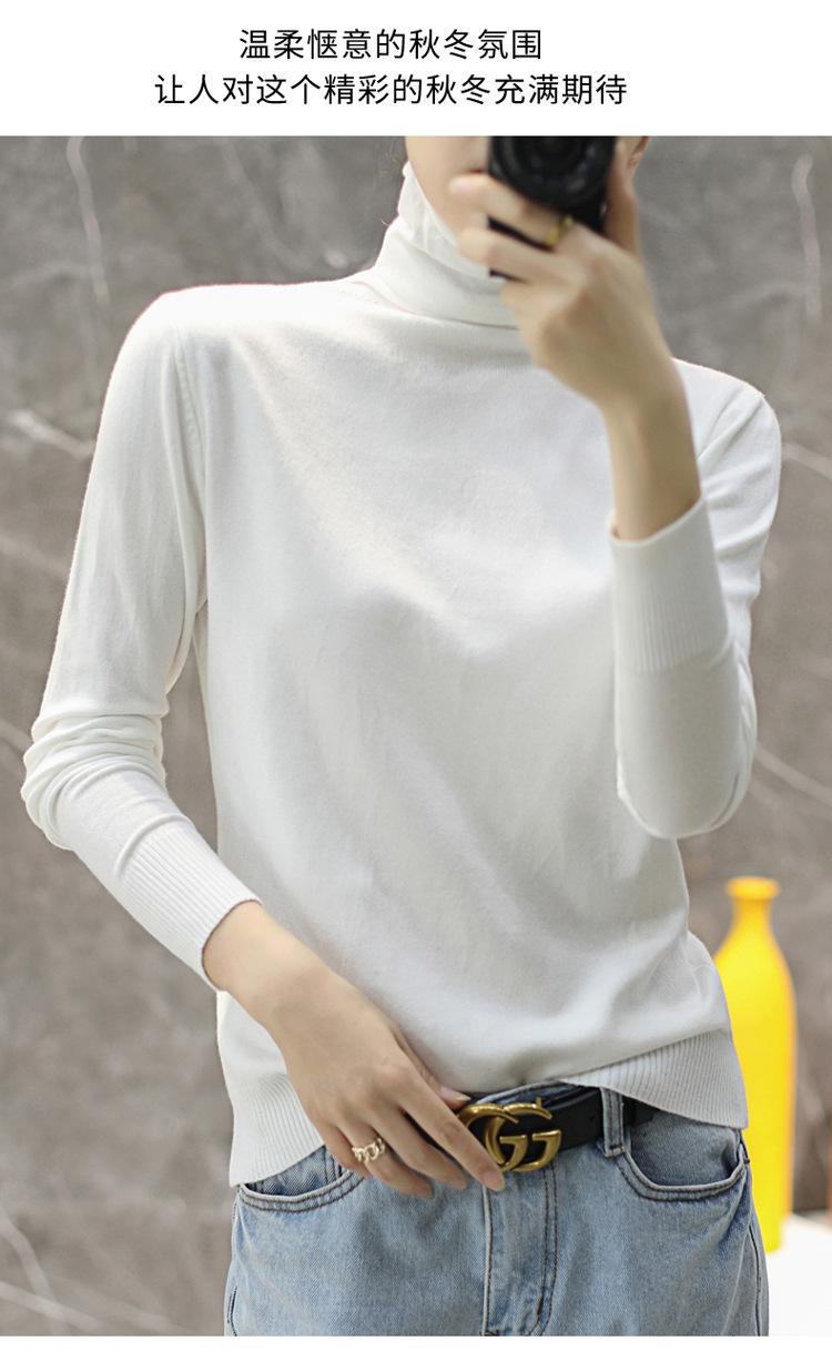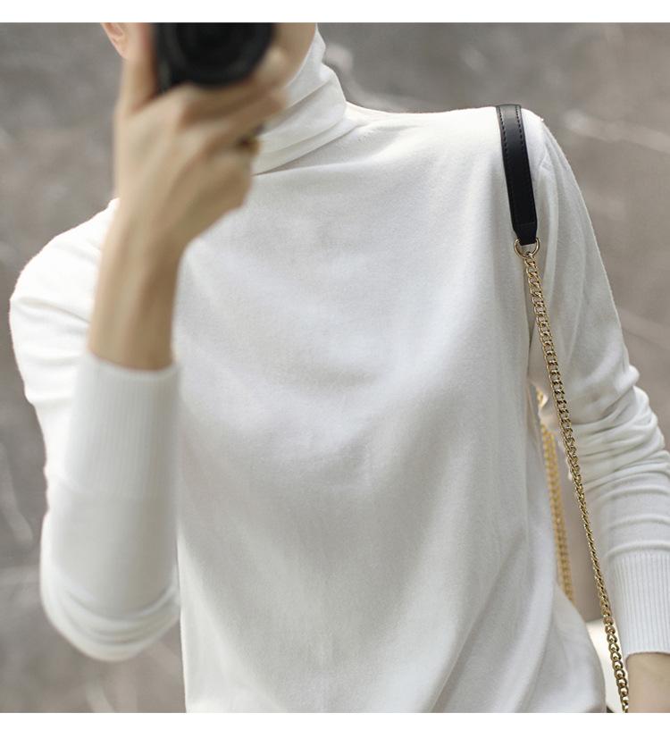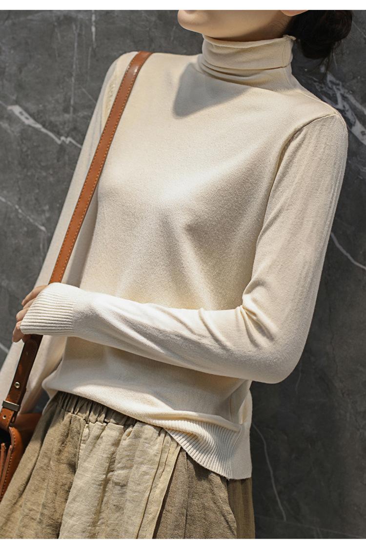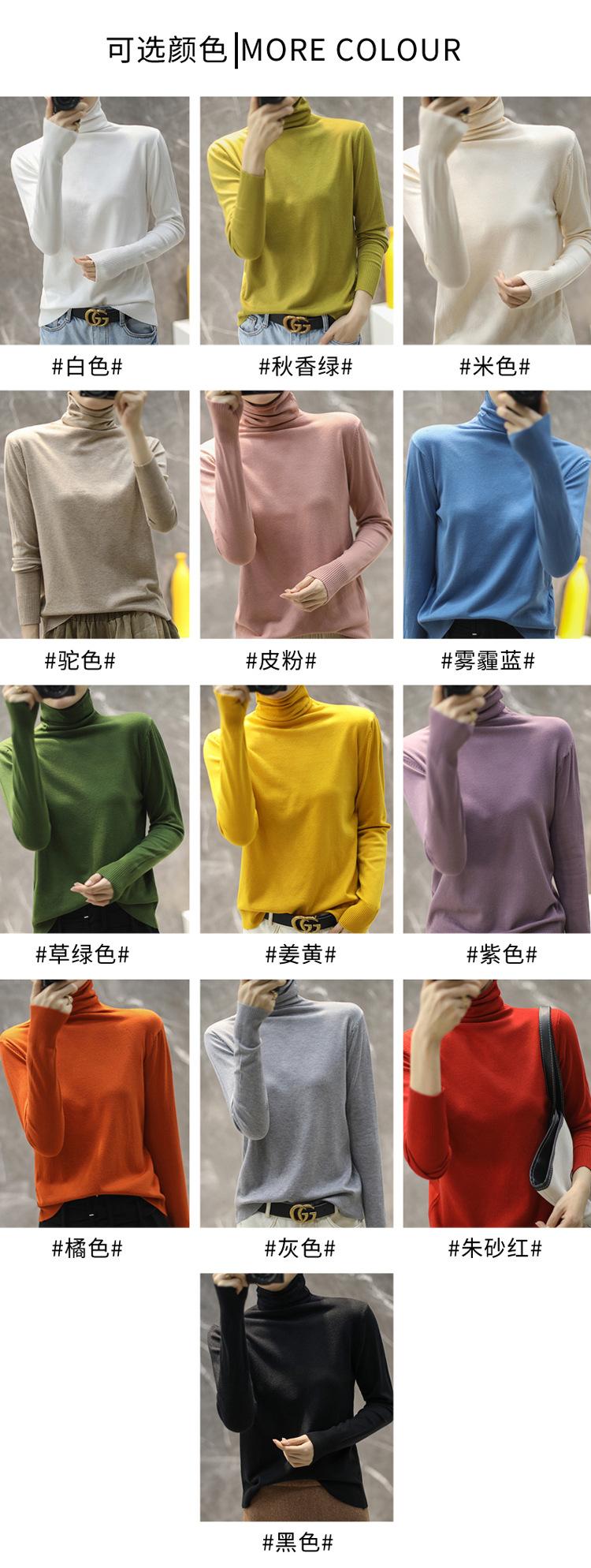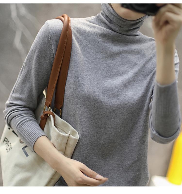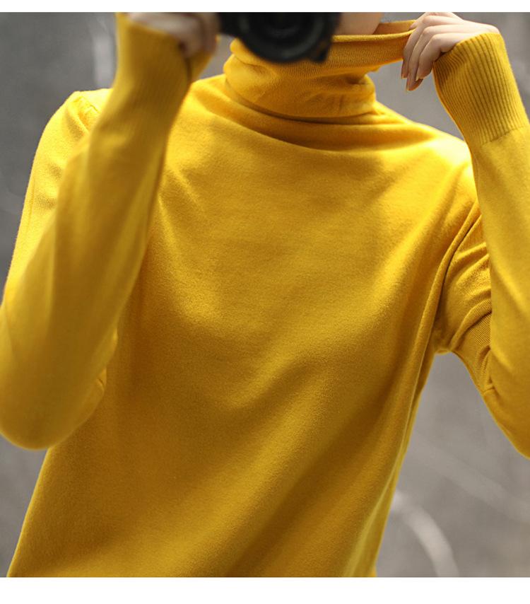 Suéter de cuello alto para mujer, suéter de otoño e invierno, nuevo jersey de color liso, camisa básica de manga larga, suéter de lana ajustado.