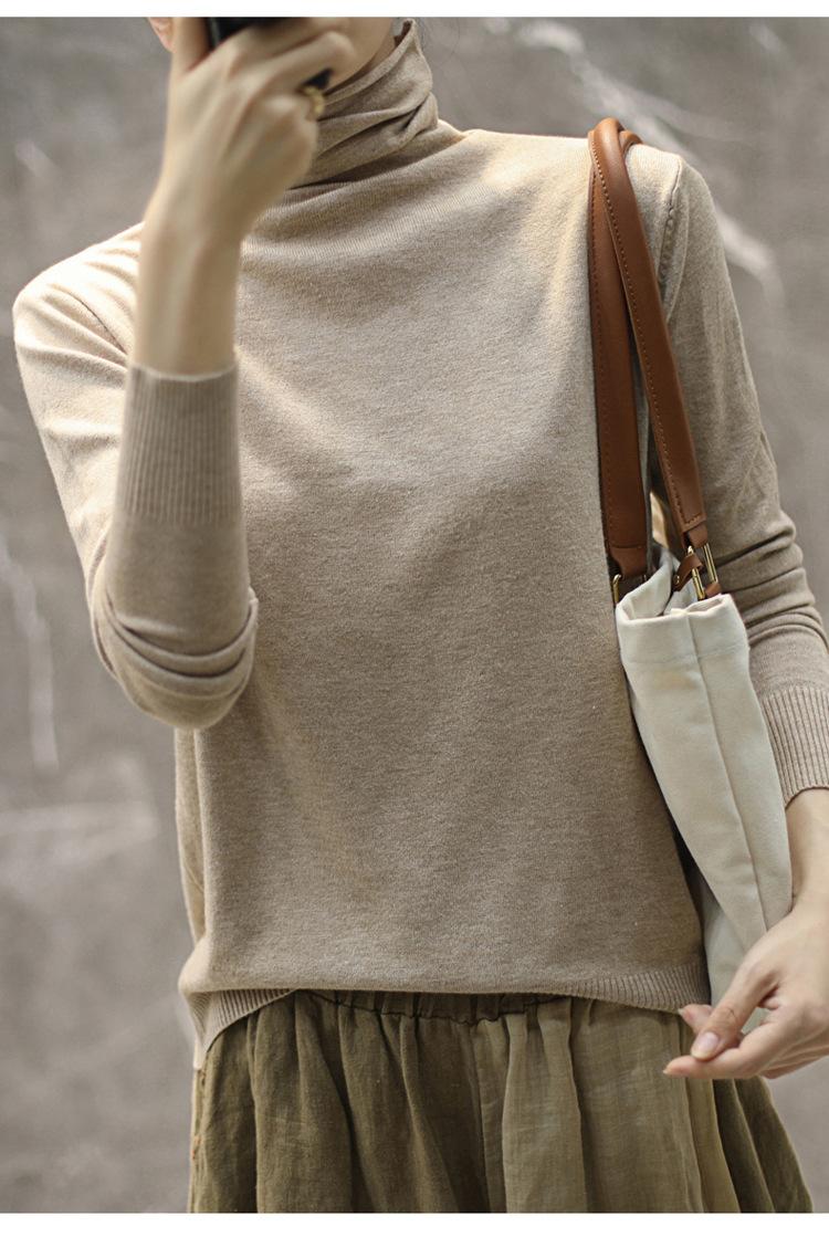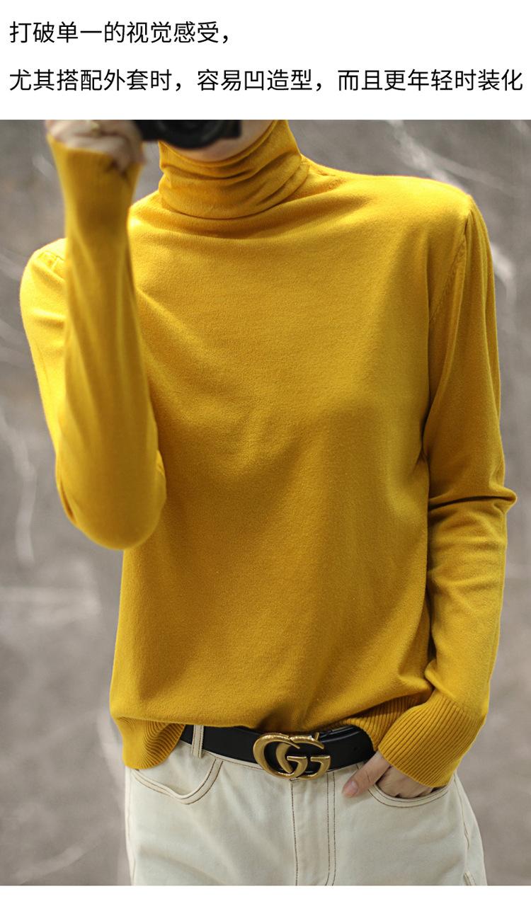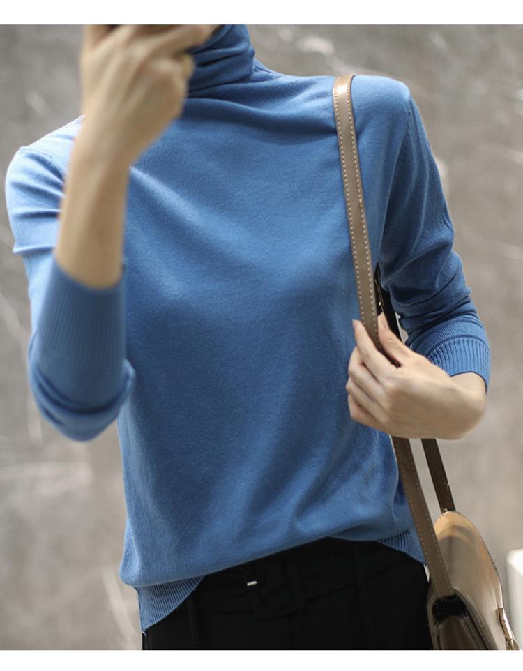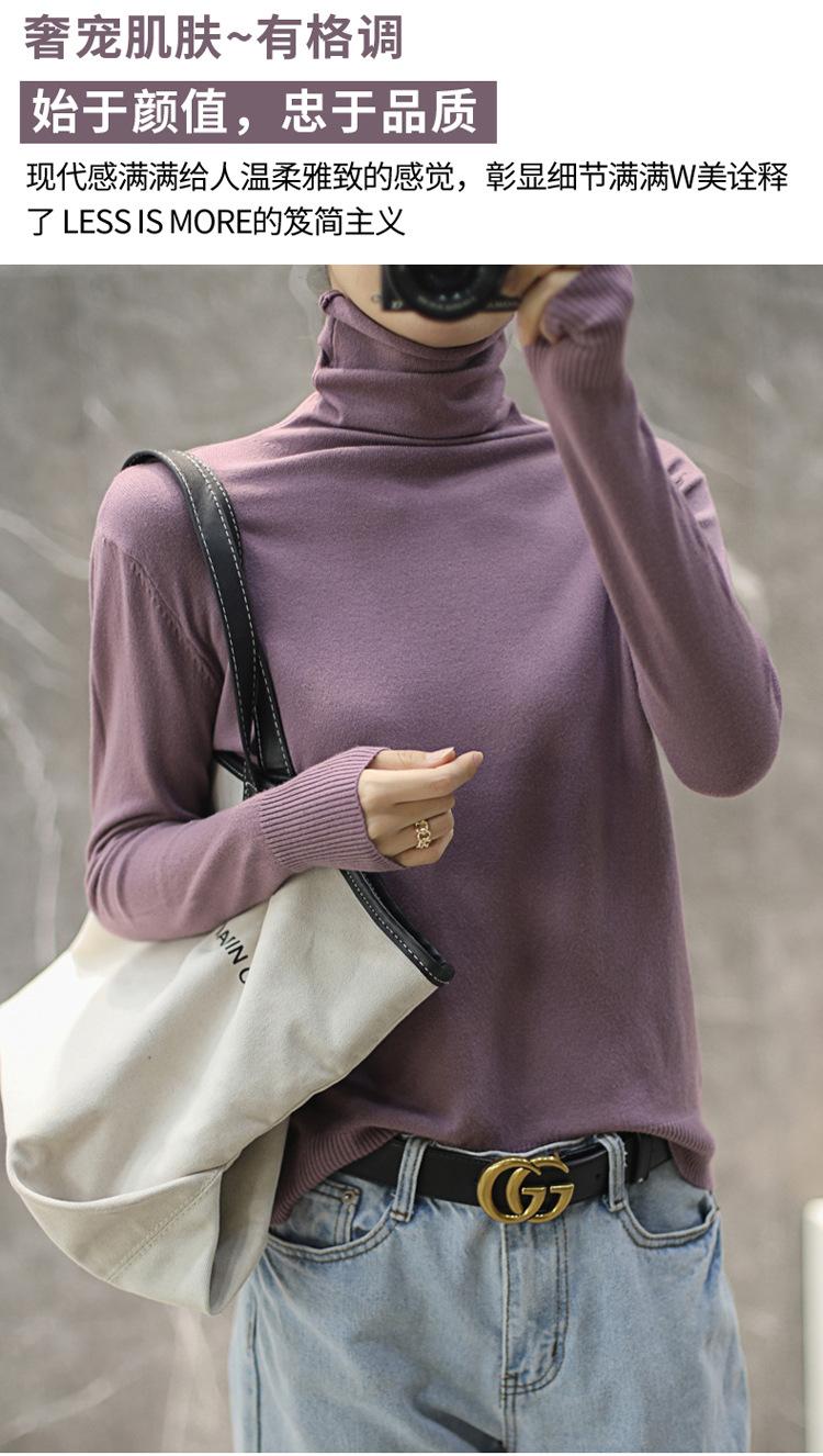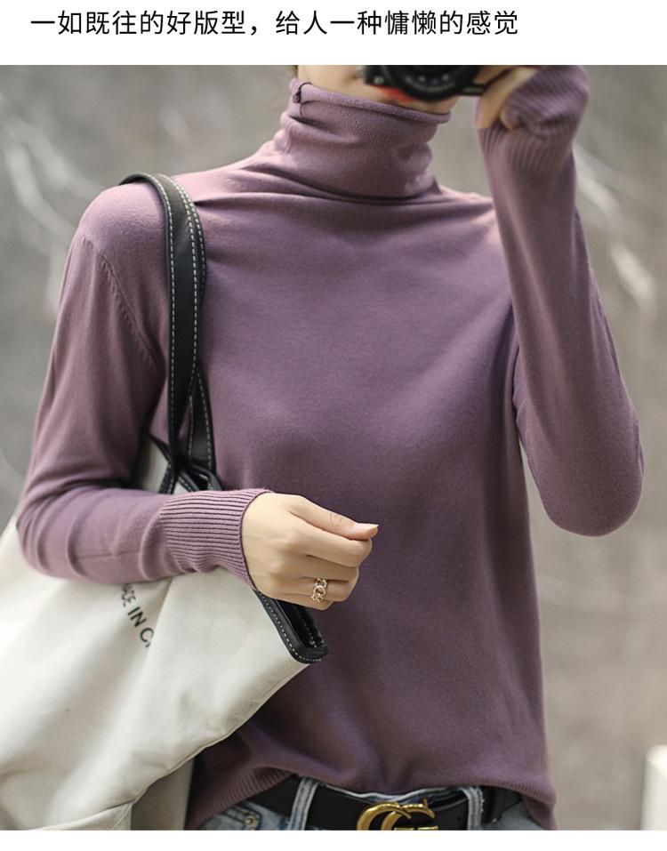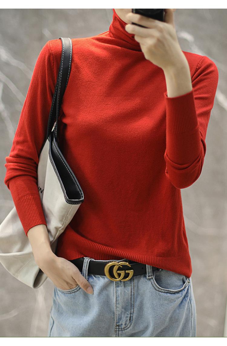 Suéter de cuello alto para mujer, suéter de otoño e invierno, nuevo jersey de color liso, camisa básica de manga larga, suéter de lana ajustado.