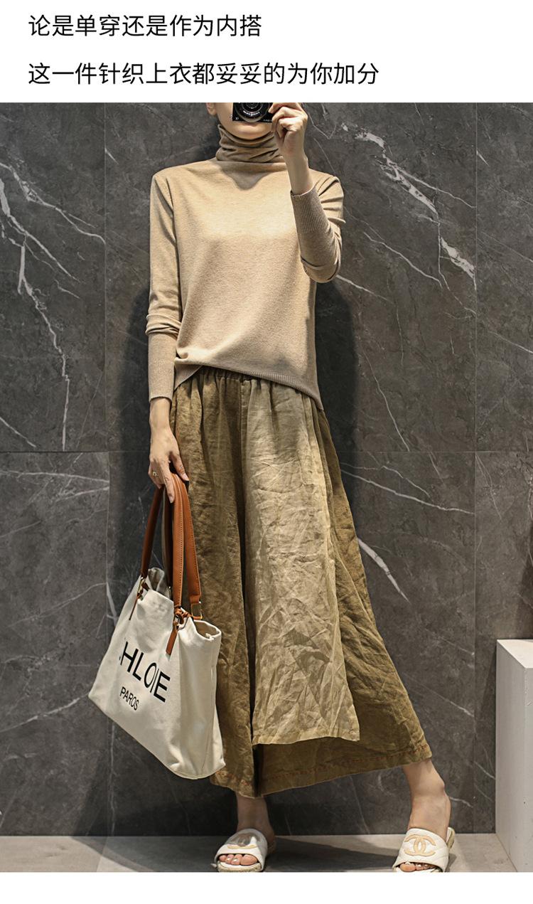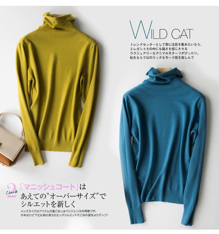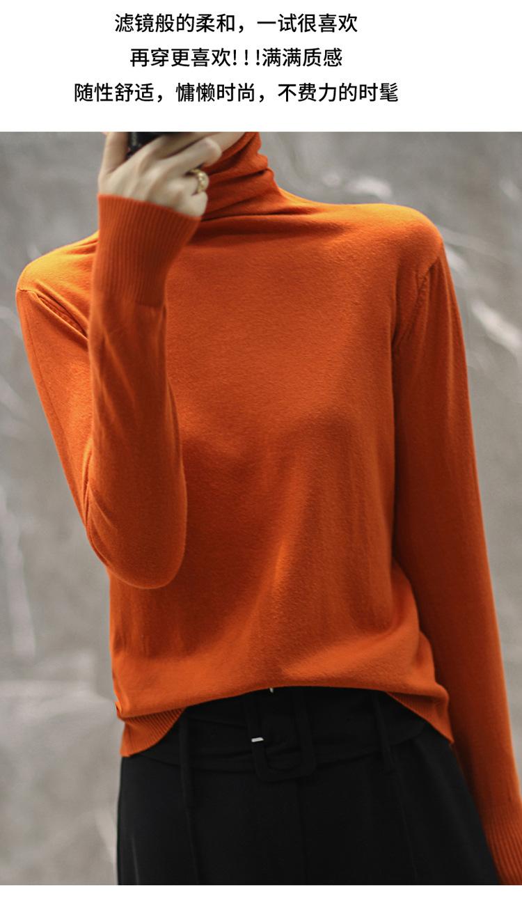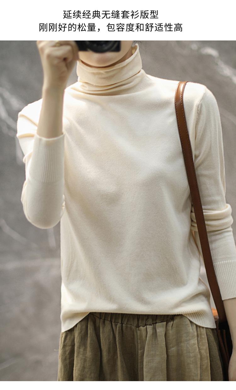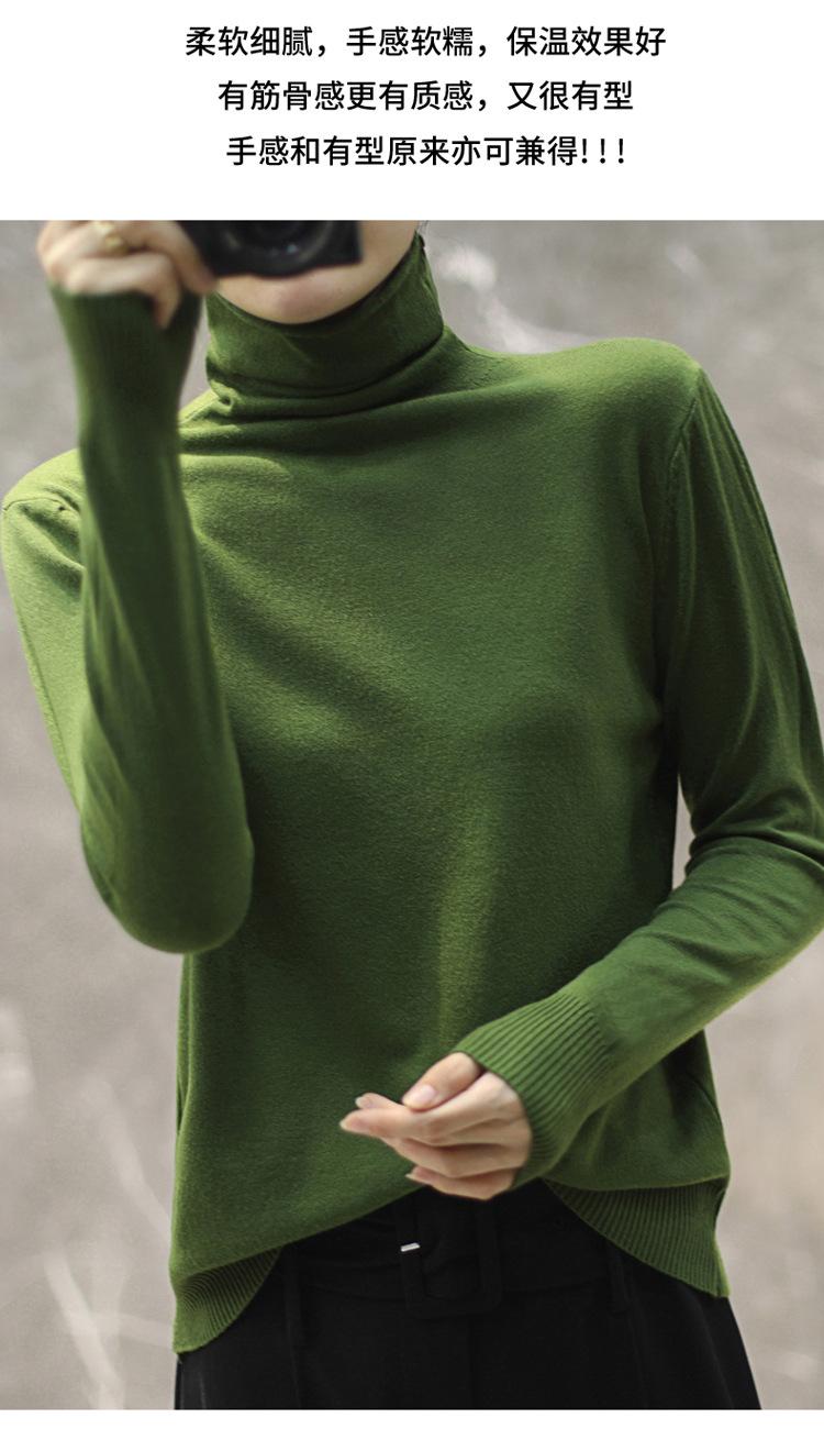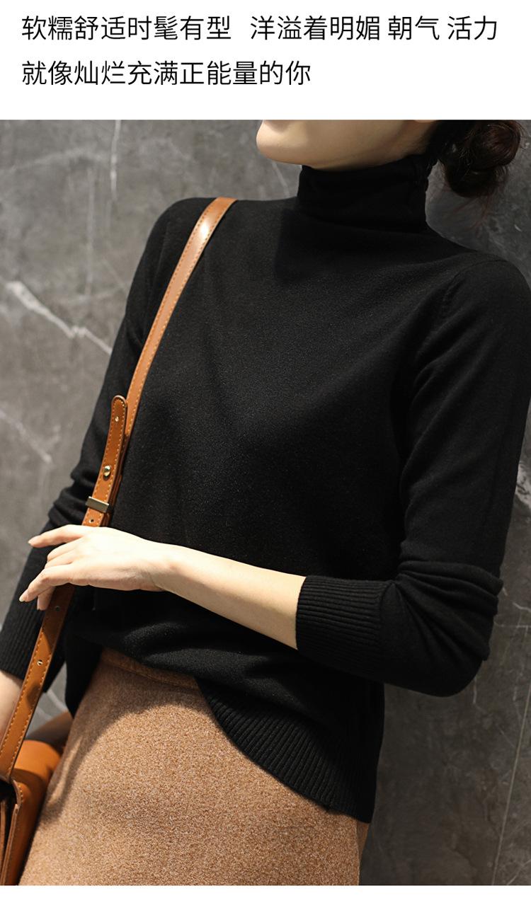 Suéter de cuello alto para mujer, suéter de otoño e invierno, nuevo jersey de color liso, camisa básica de manga larga, suéter de lana ajustado.