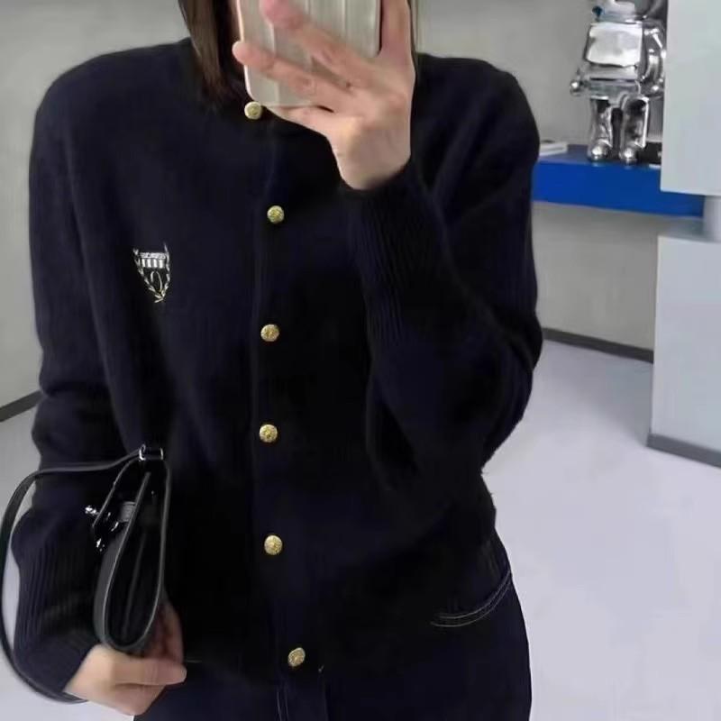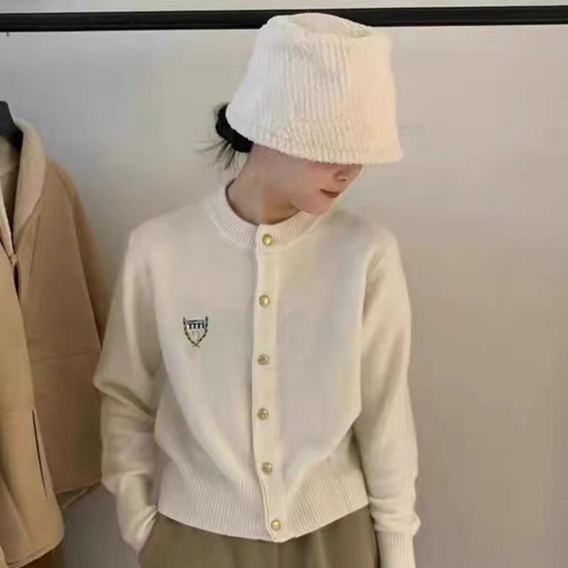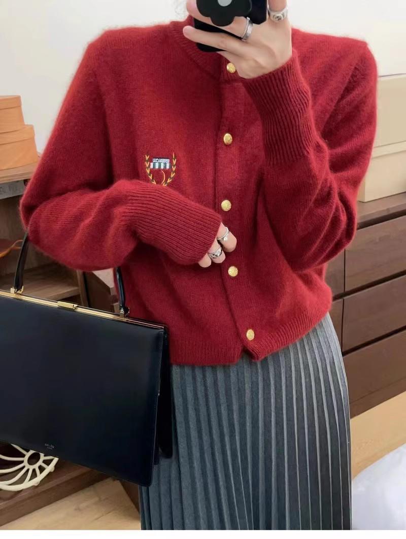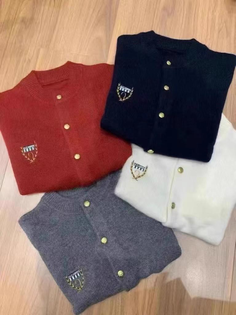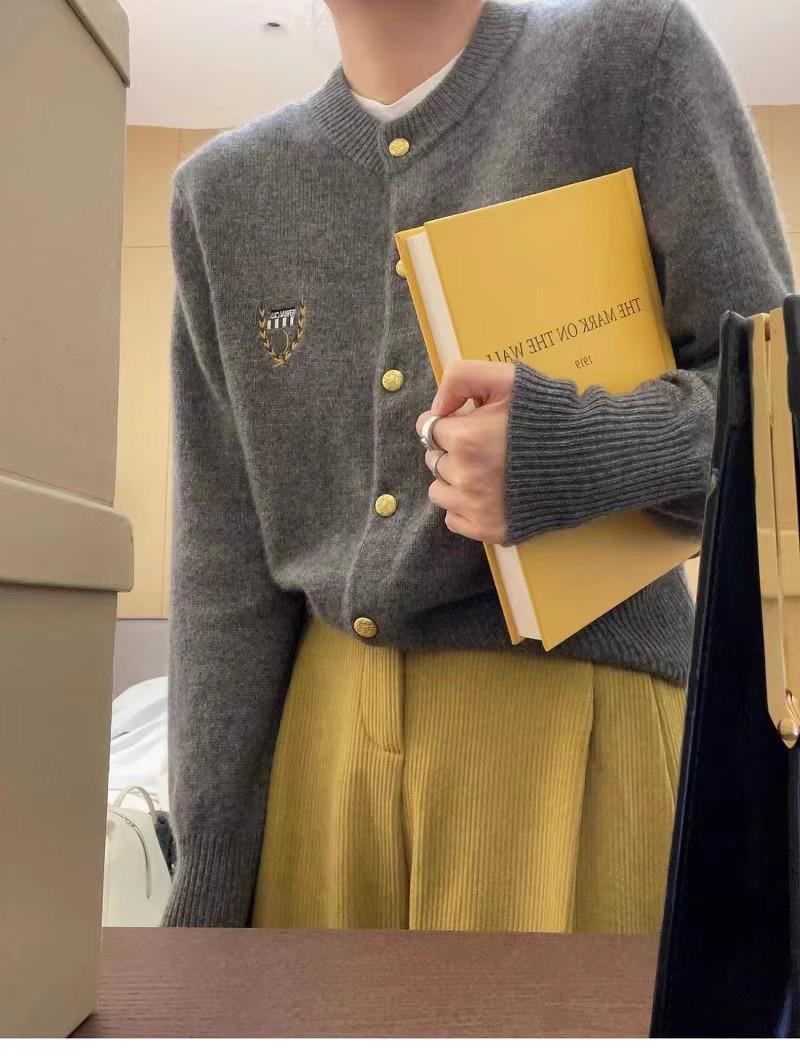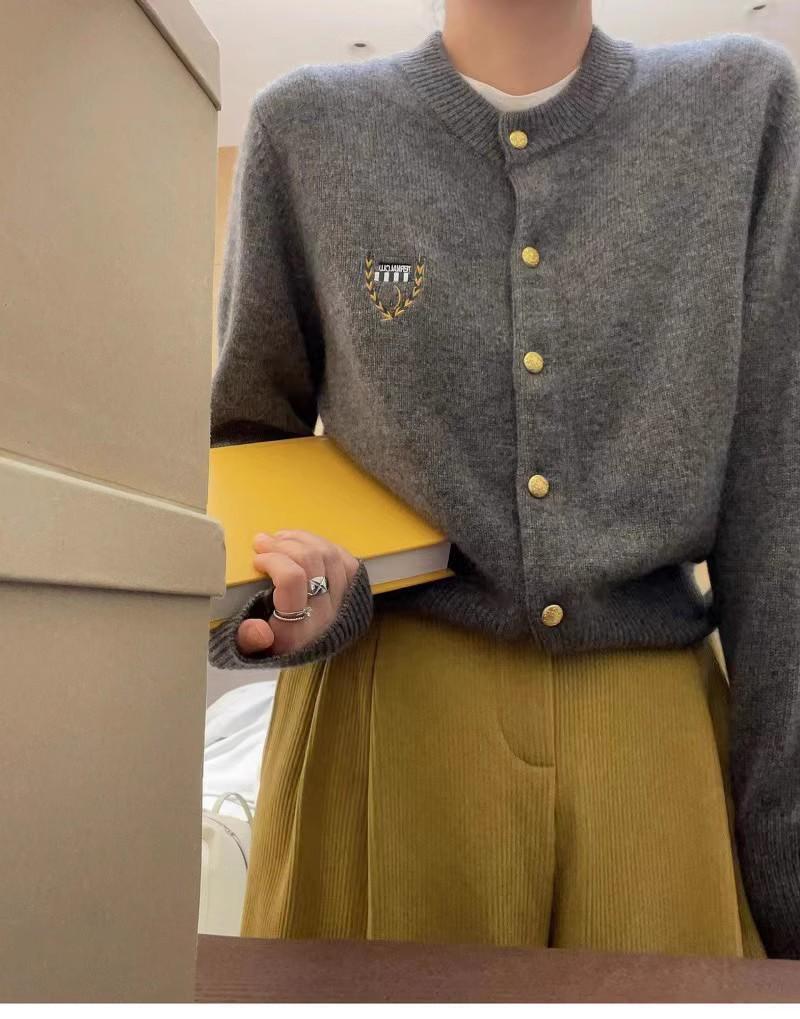 Cárdigan de Lana 100 Pura para Mujer con Insignia Bordada Estilo Universitario Nuevo de Primavera y Otoño, Cuello Redondo, Moda, Chaqueta de Punto Abotonada