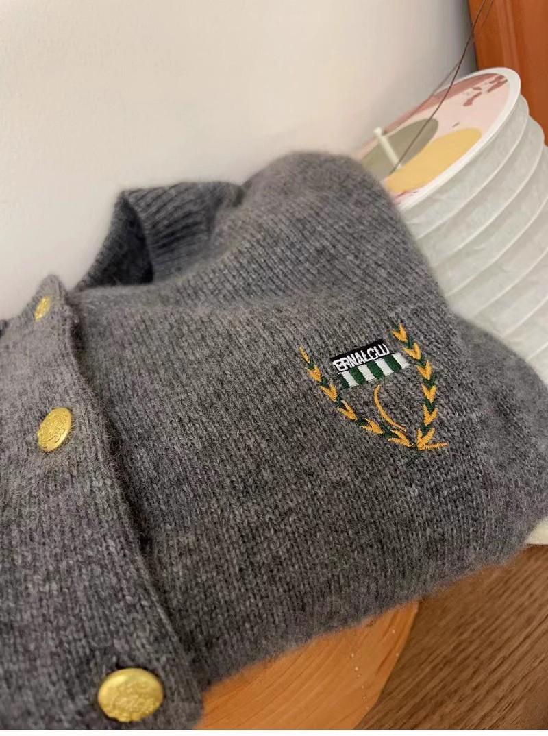 Cárdigan de lana bordado con insignia estilo universitario de nuevo estilo de primavera y otoño para mujer, suéter de moda de cuello redondo, chaqueta de suéter de punto, top de tendencia