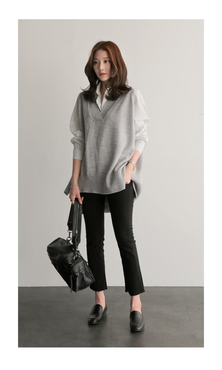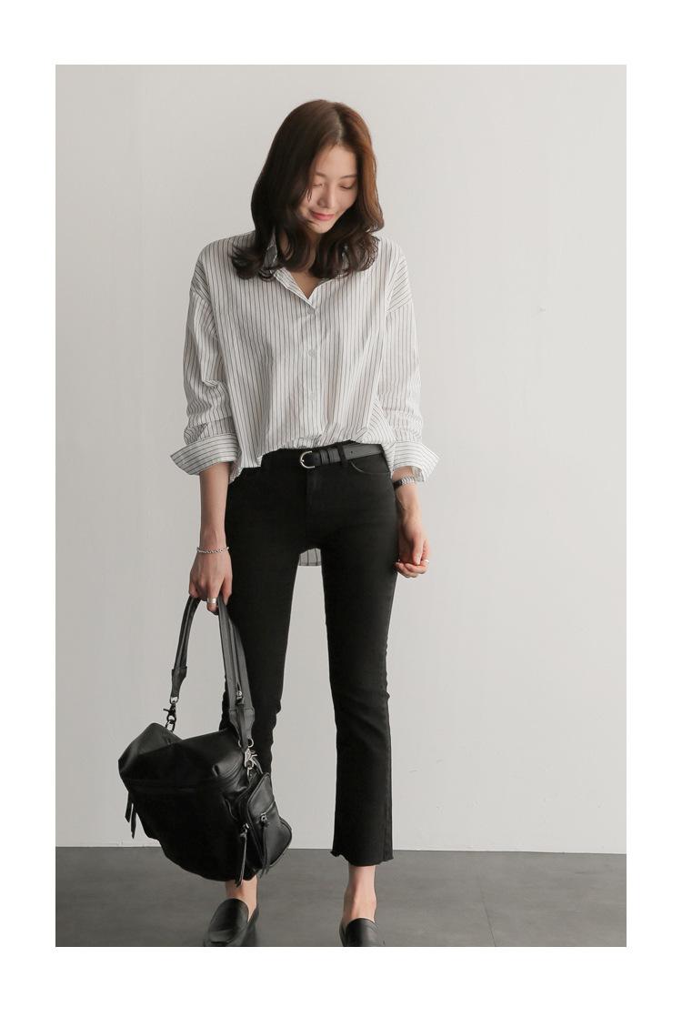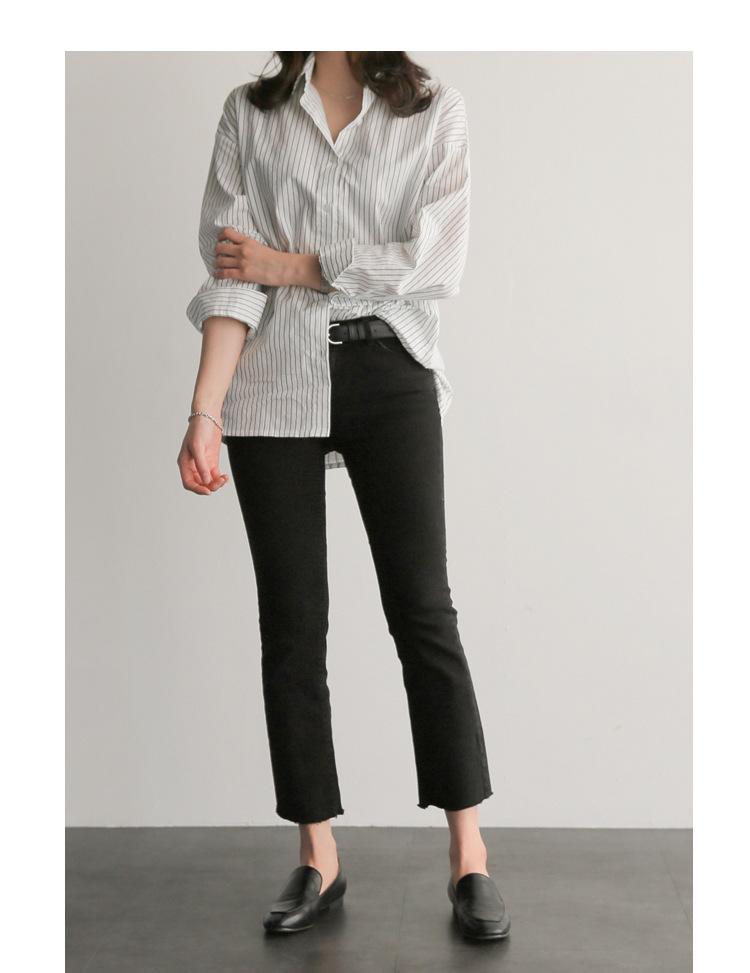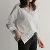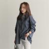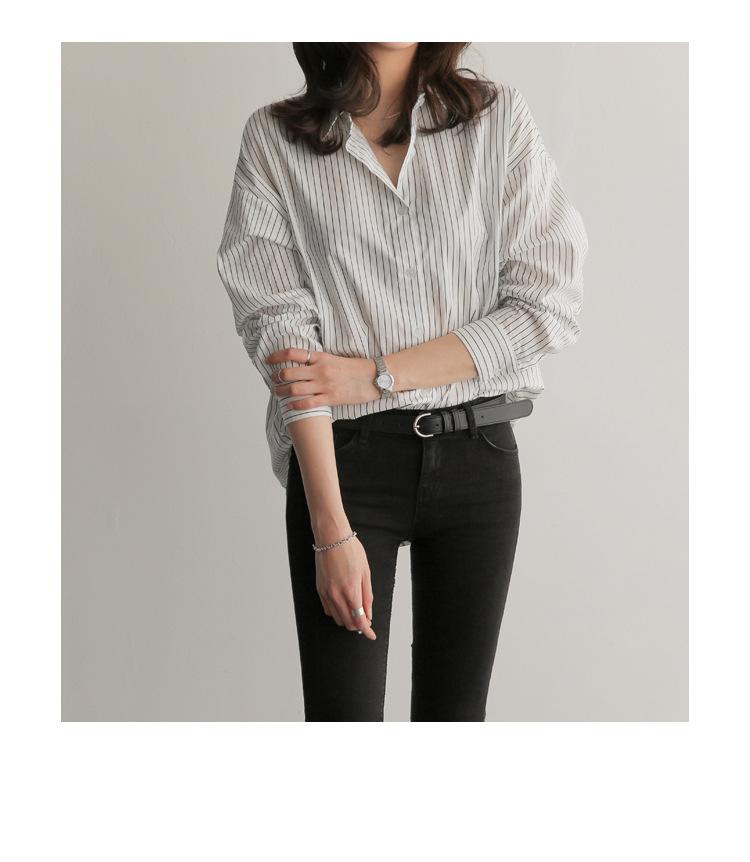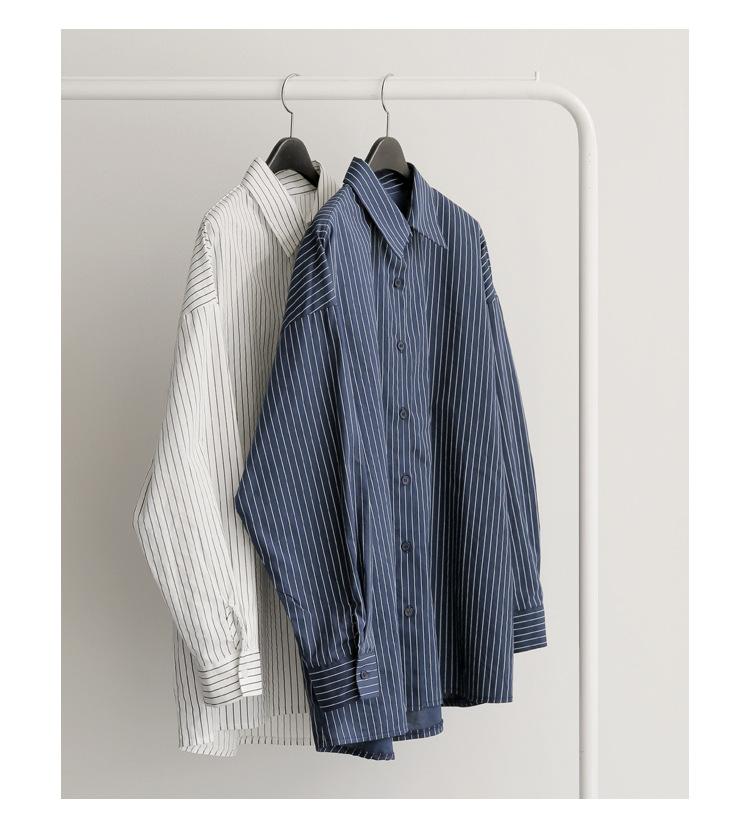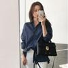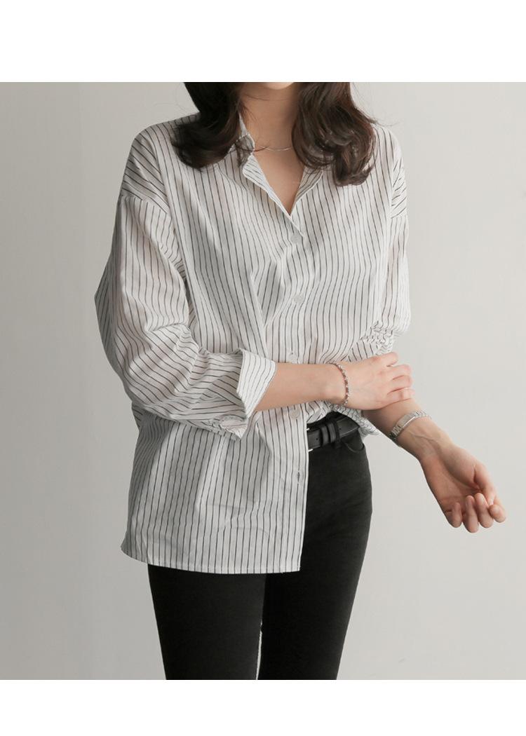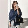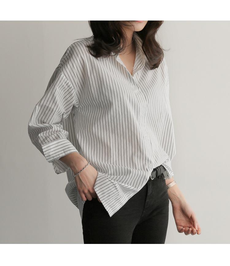 2025 Ropa Nueva de Otoño Camisa Versátil Holgada Azul de Rayas Verticales de Largo Medio Bf Talla Grande Manga Larga para Mujer