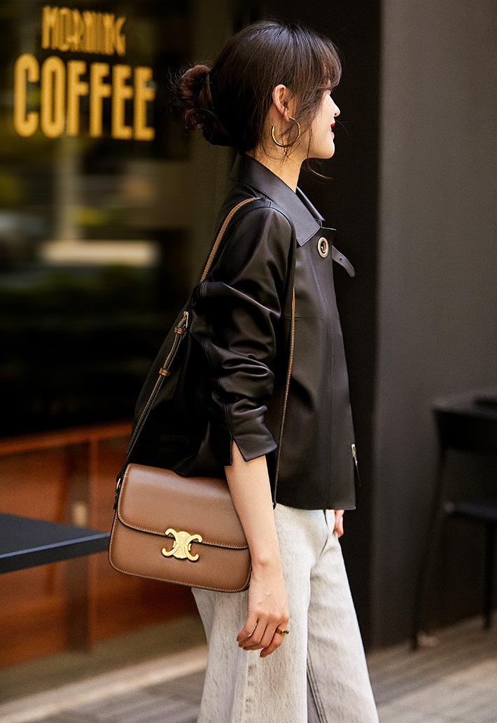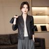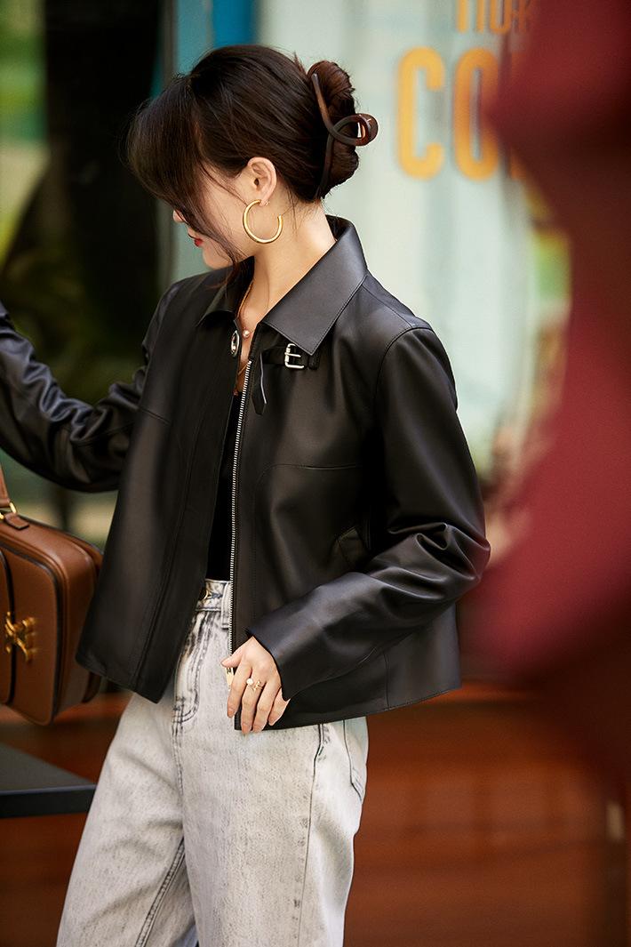 Chaqueta corta de cuero genuino para mujer, nueva chaqueta de cuero de primavera y otoño, Love M Shi, mismo estilo, chaqueta de cuero adelgazante de piel de oveja de alta gama