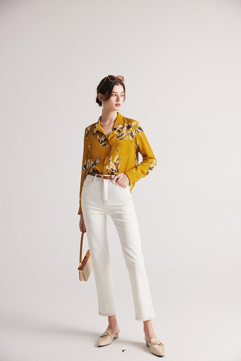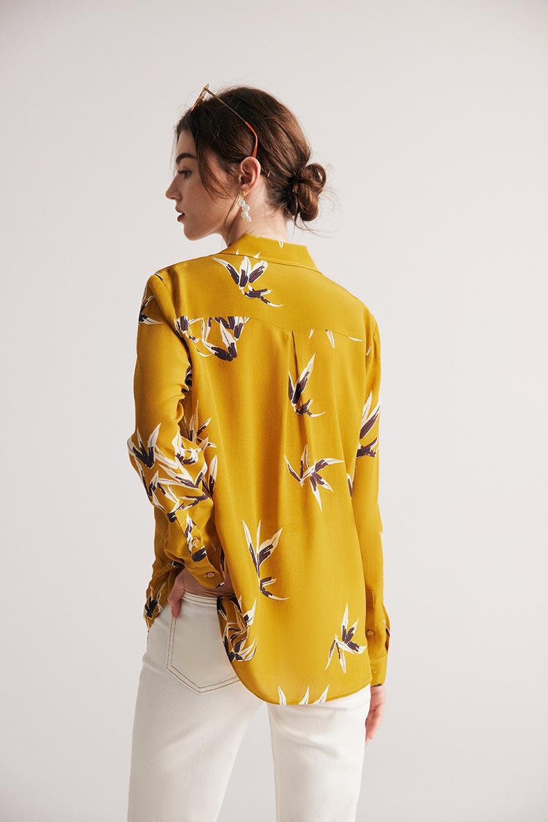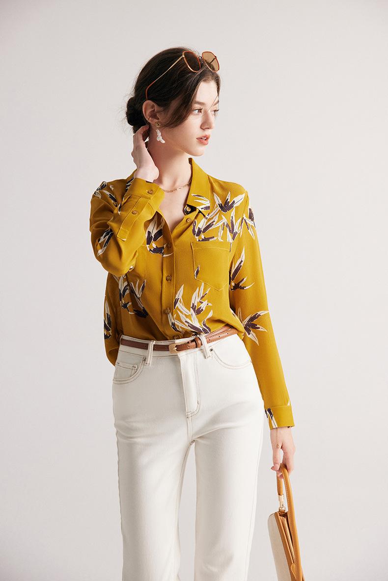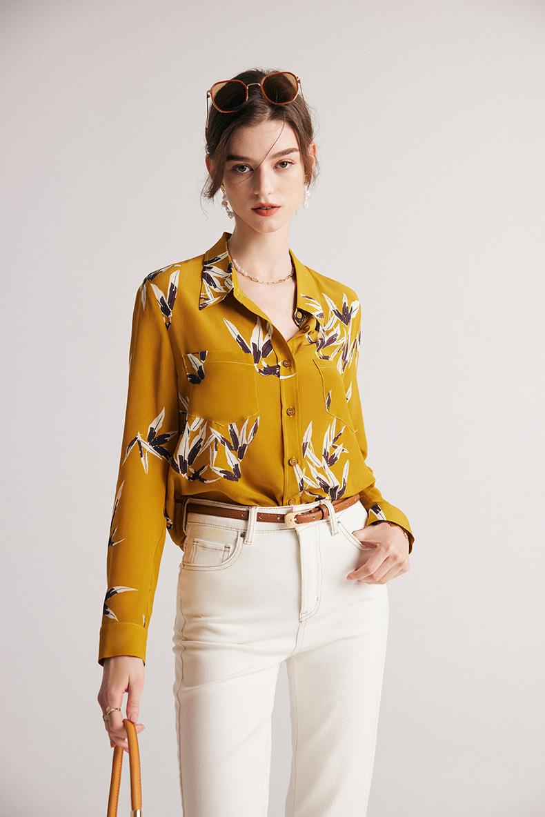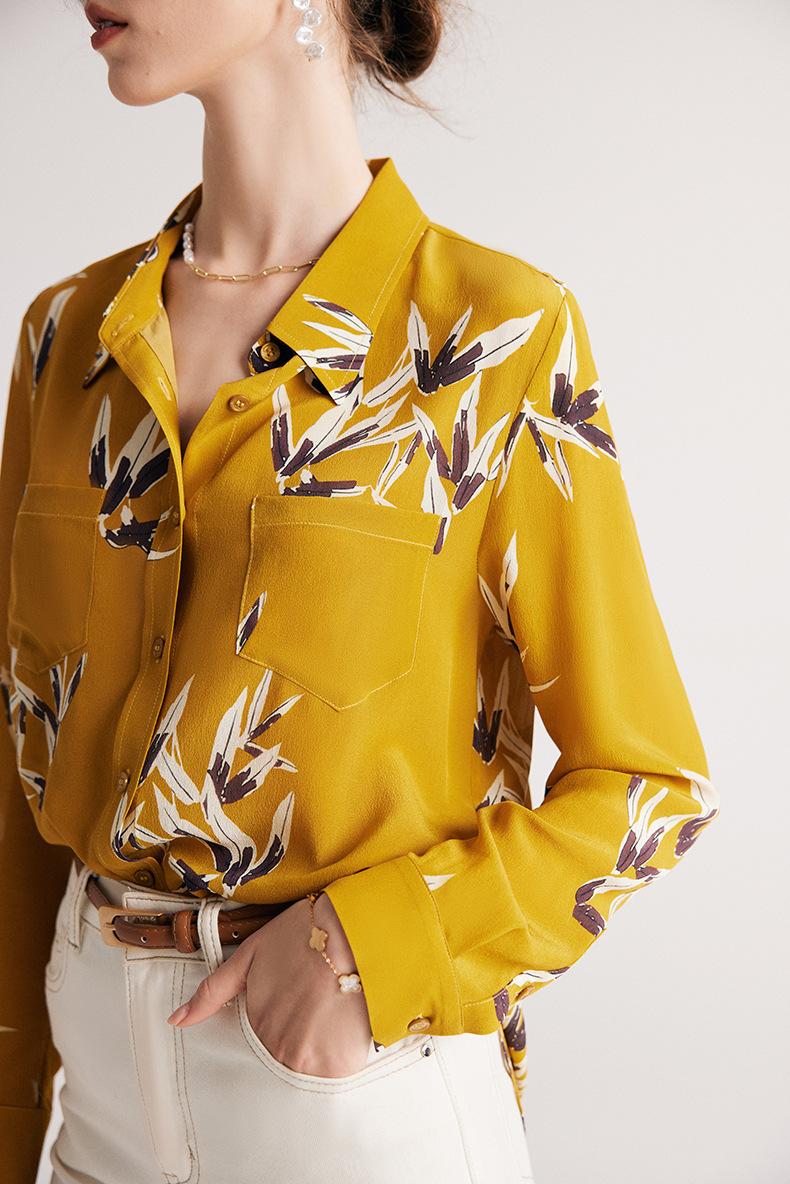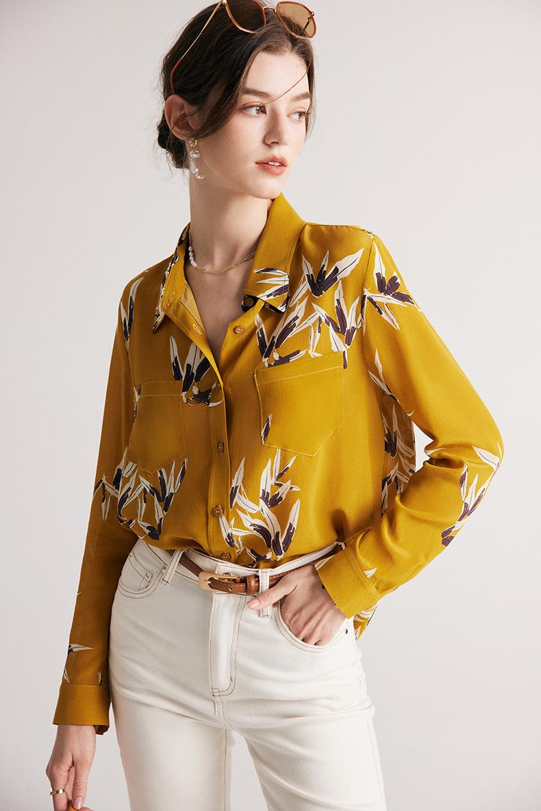 Camisa de Seda para Mujer 2025 Primavera Temprana Nueva Manga Larga Solapa Crepé De China Estampado Ropa de Trabajo Camisa 100% Seda de Morera