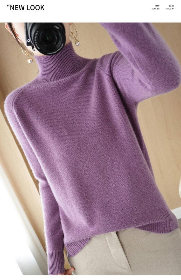 Suéter de Cuello Alto para Mujer Otoño e Invierno Nuevo 2025 Grueso Estilo Coreano para Mujer Jersey de Color Puro Holgado de Punto de Manga Larga para Fondo