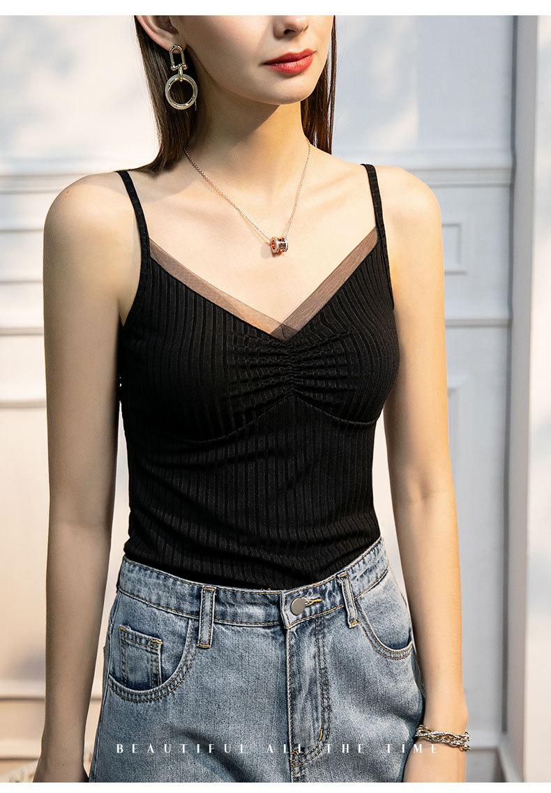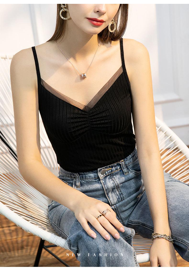Chaleco interior de verano para mujer, con costuras de malla, ajustado, sexy y femenino.