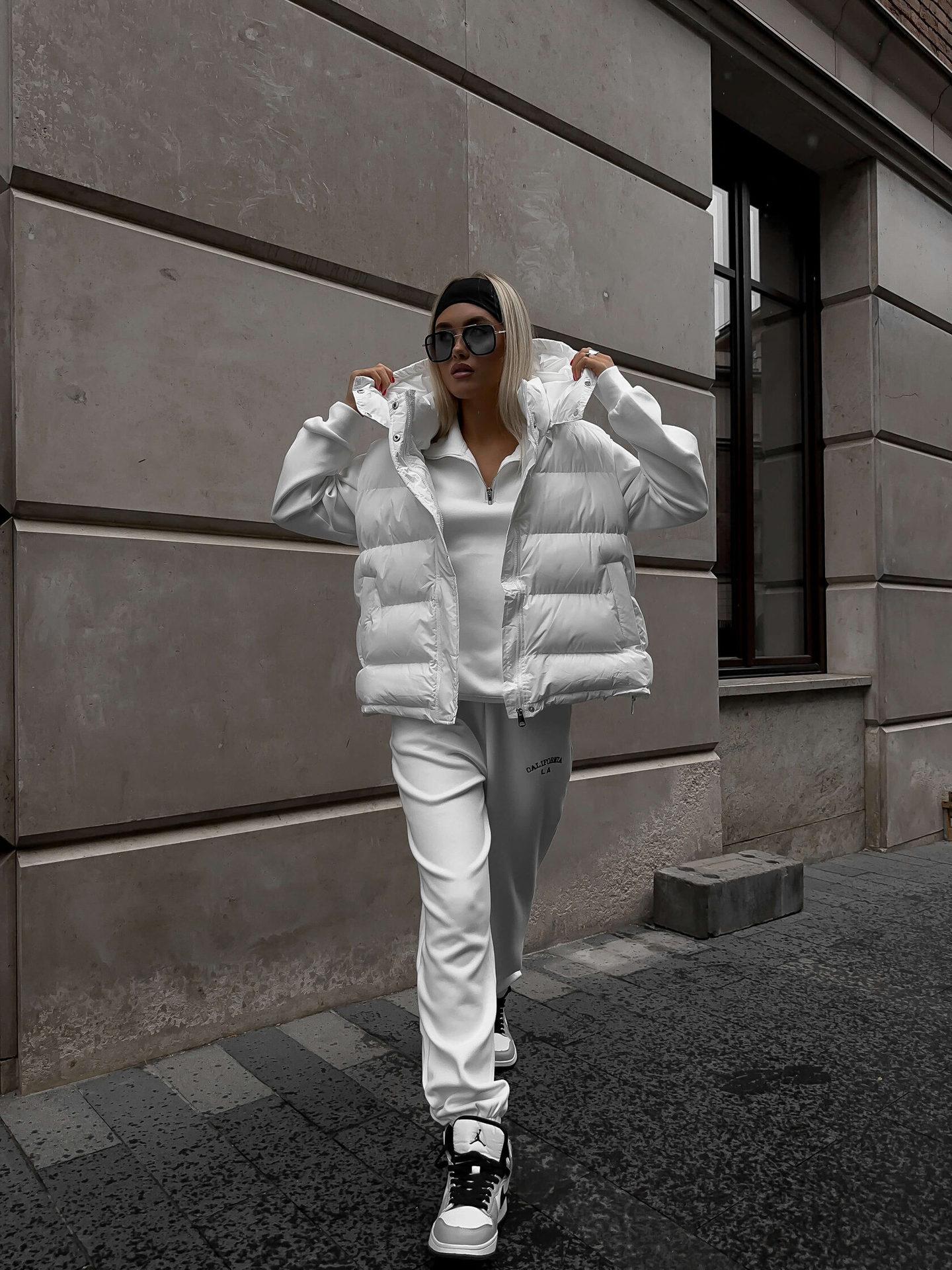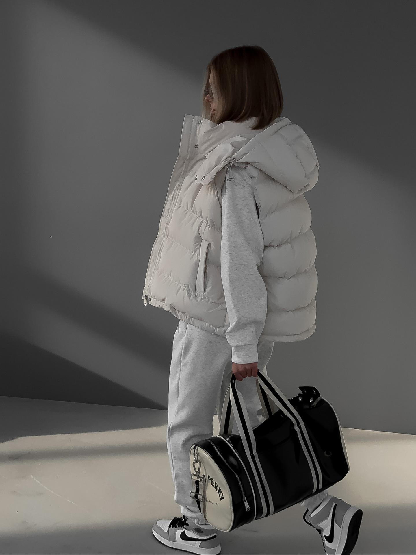 Chaleco de Algodón Transfronterizo Europeo y Americano 2025 Otoño e Invierno Nuevo Moderno Sexy Exterior Sin Mangas con Capucha Plumífero de Algodón