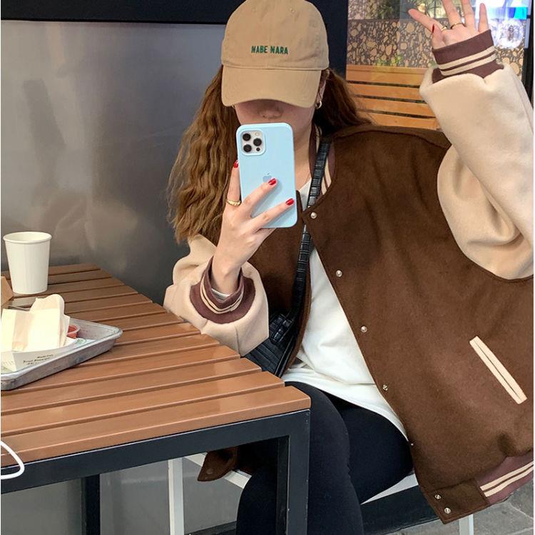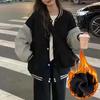 Uniforme de béisbol con forro polar retro americano para mujer, otoño e invierno, nuevo abrigo grueso transfronterizo, chaqueta corta con botones de calle