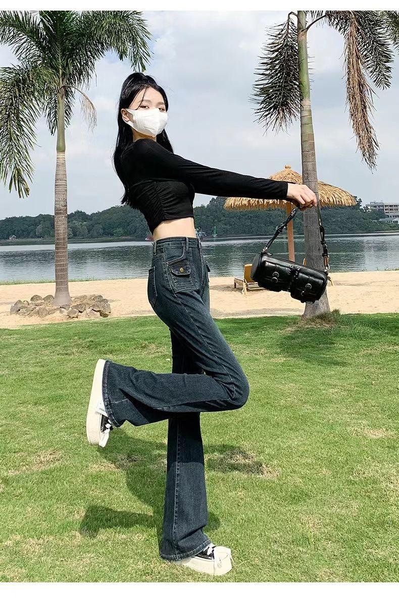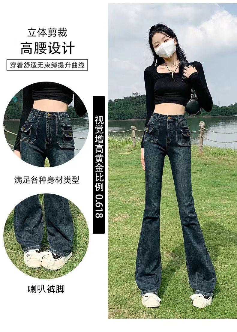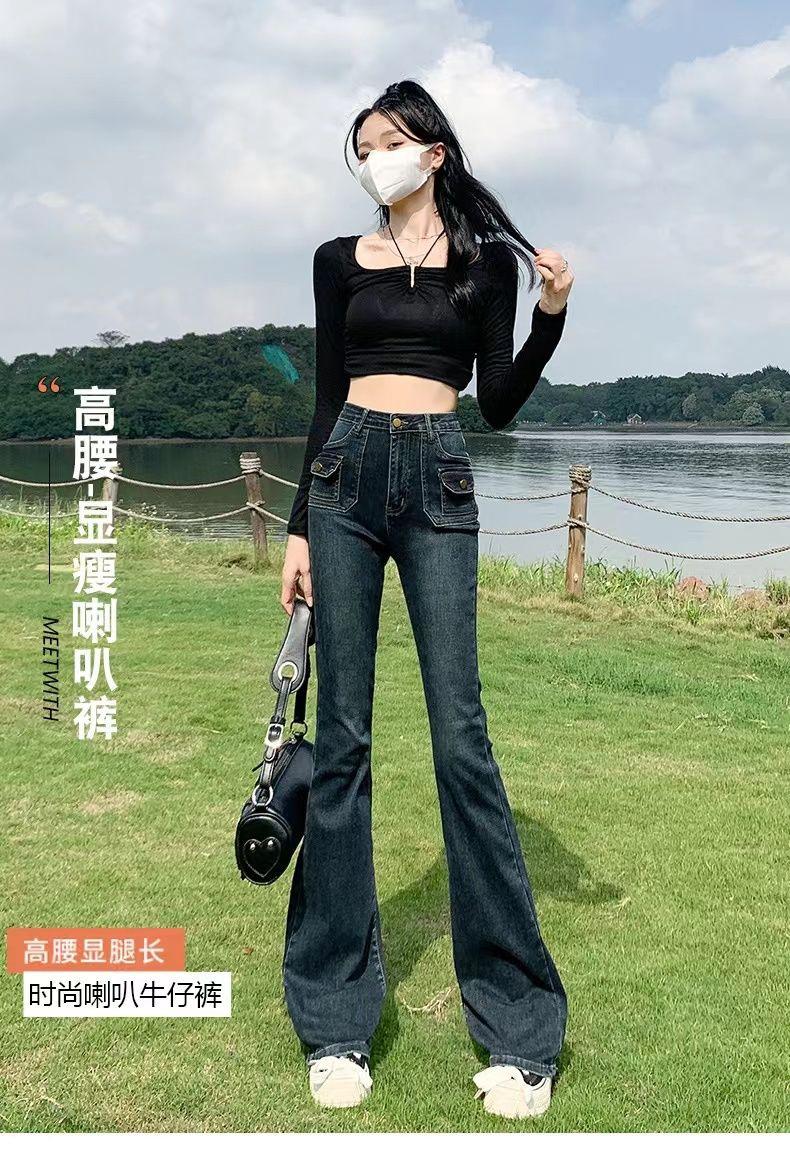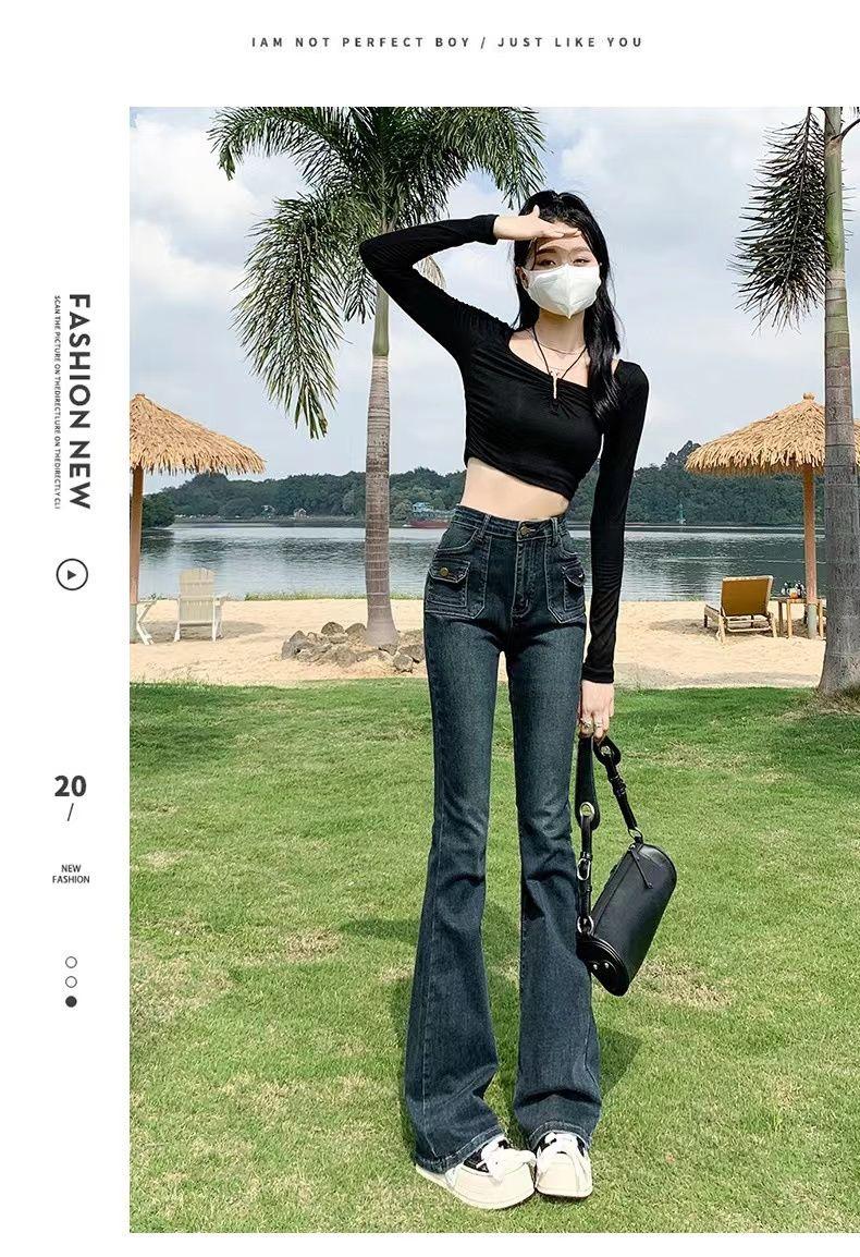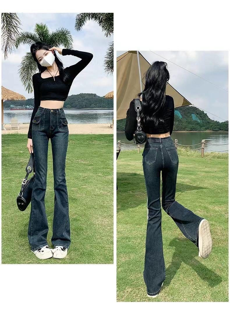 Vaqueros de cintura alta elásticos estilo Hong Kong, micro acampanados, nuevos pantalones de herradura ajustados, nostálgicos, retro y ajustados para mujer