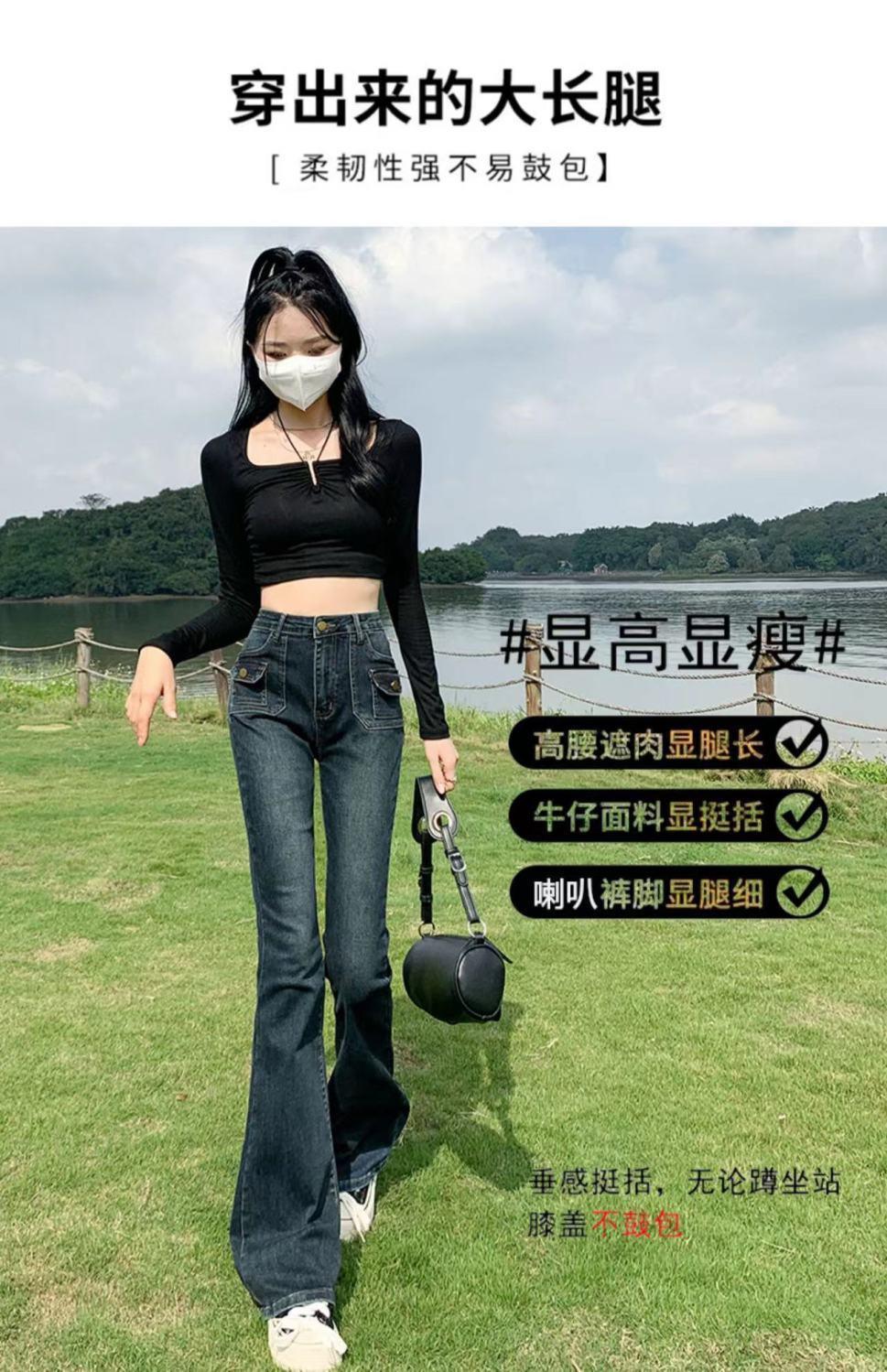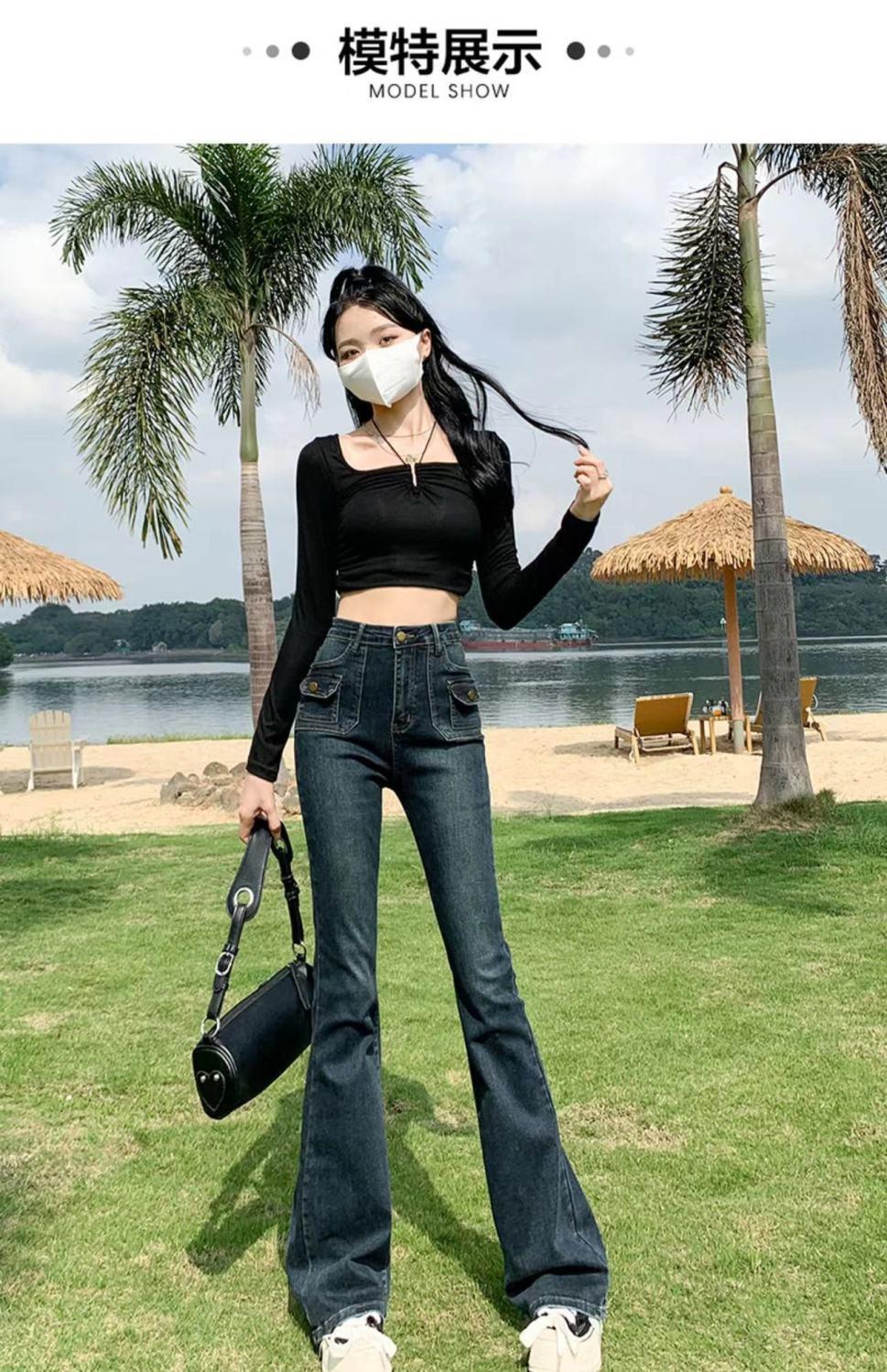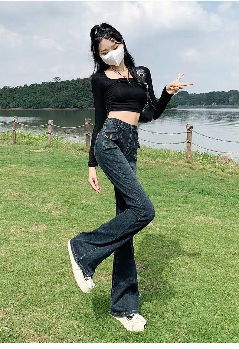 Vaqueros de cintura alta elásticos estilo Hong Kong, micro acampanados, nuevos pantalones de herradura ajustados, nostálgicos, retro y ajustados para mujer