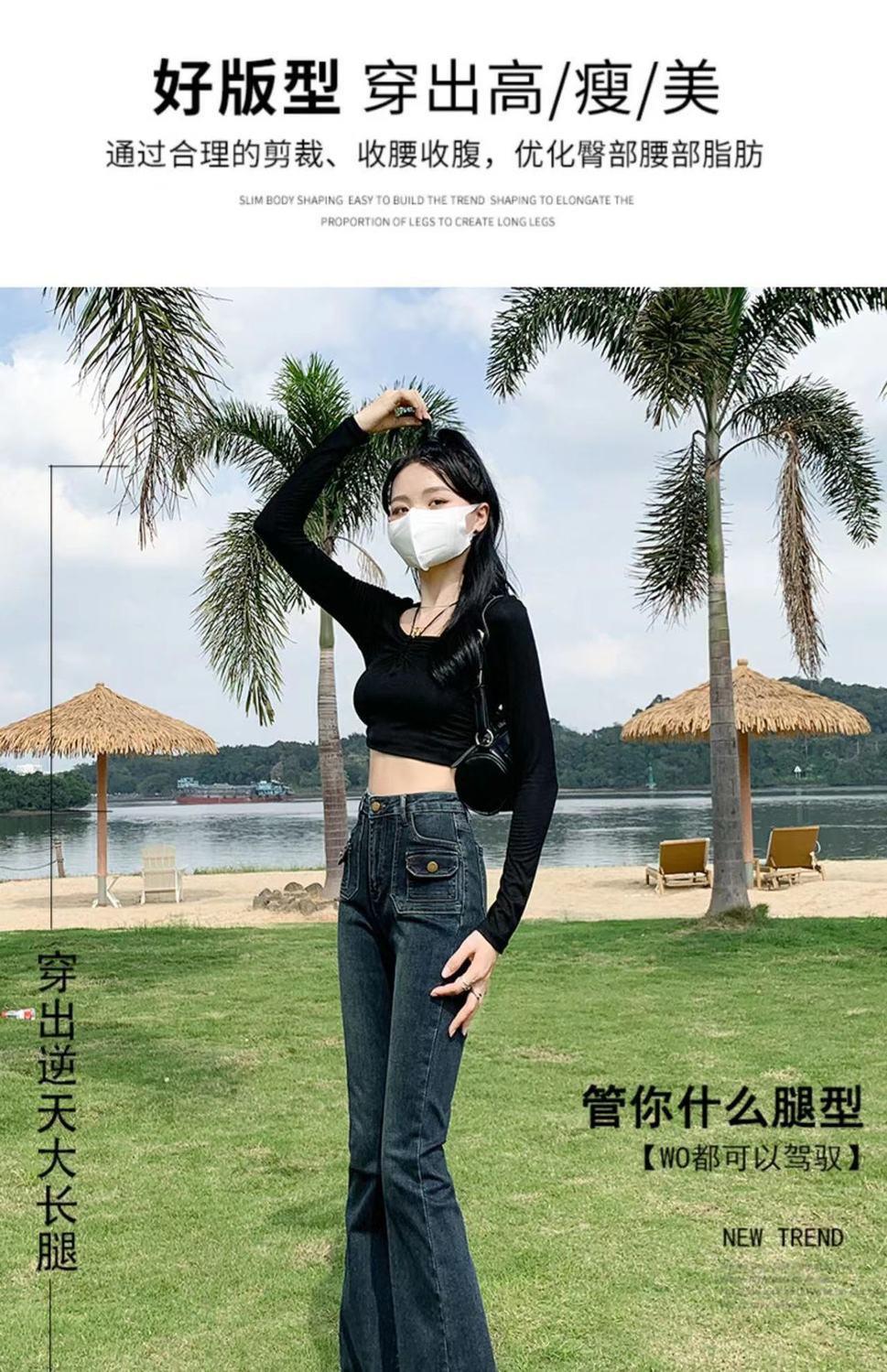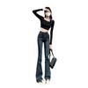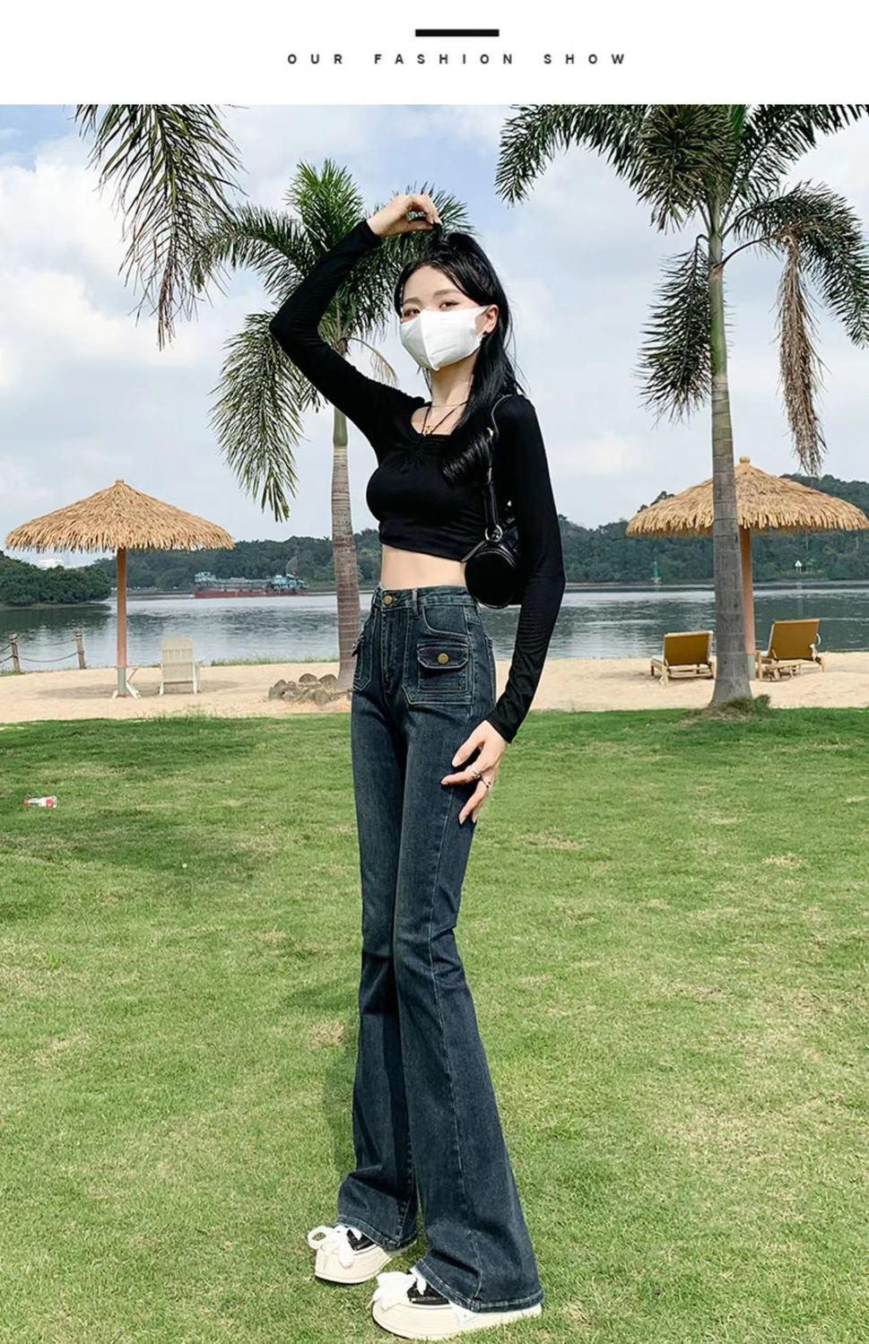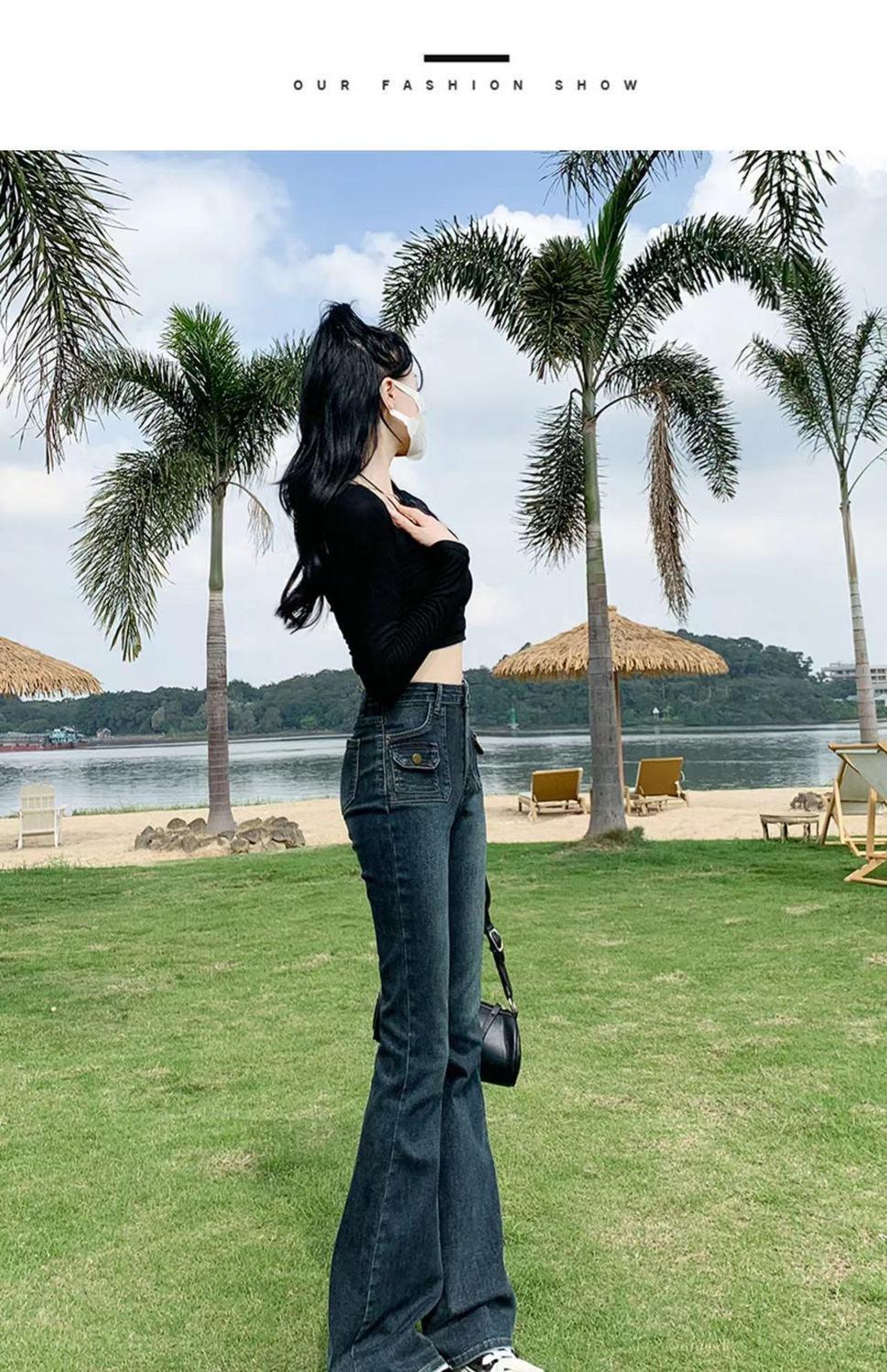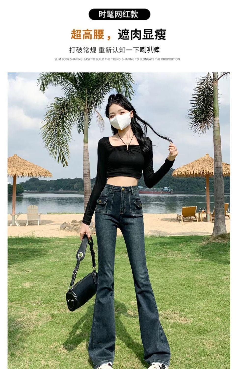 Vaqueros de cintura alta elásticos estilo Hong Kong, micro acampanados, nuevos pantalones de herradura ajustados, nostálgicos, retro y ajustados para mujer