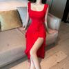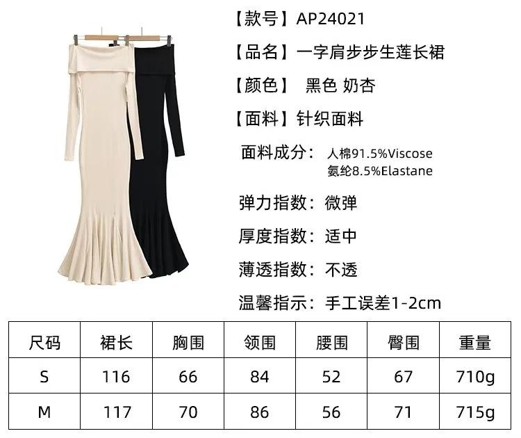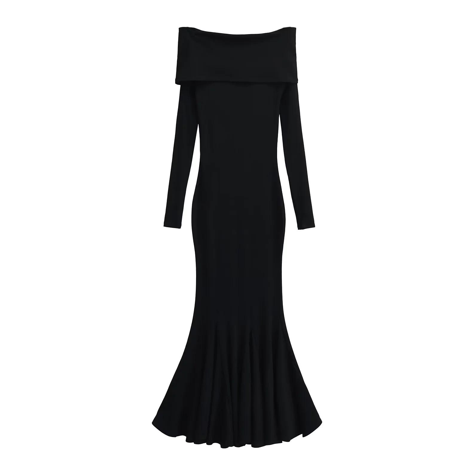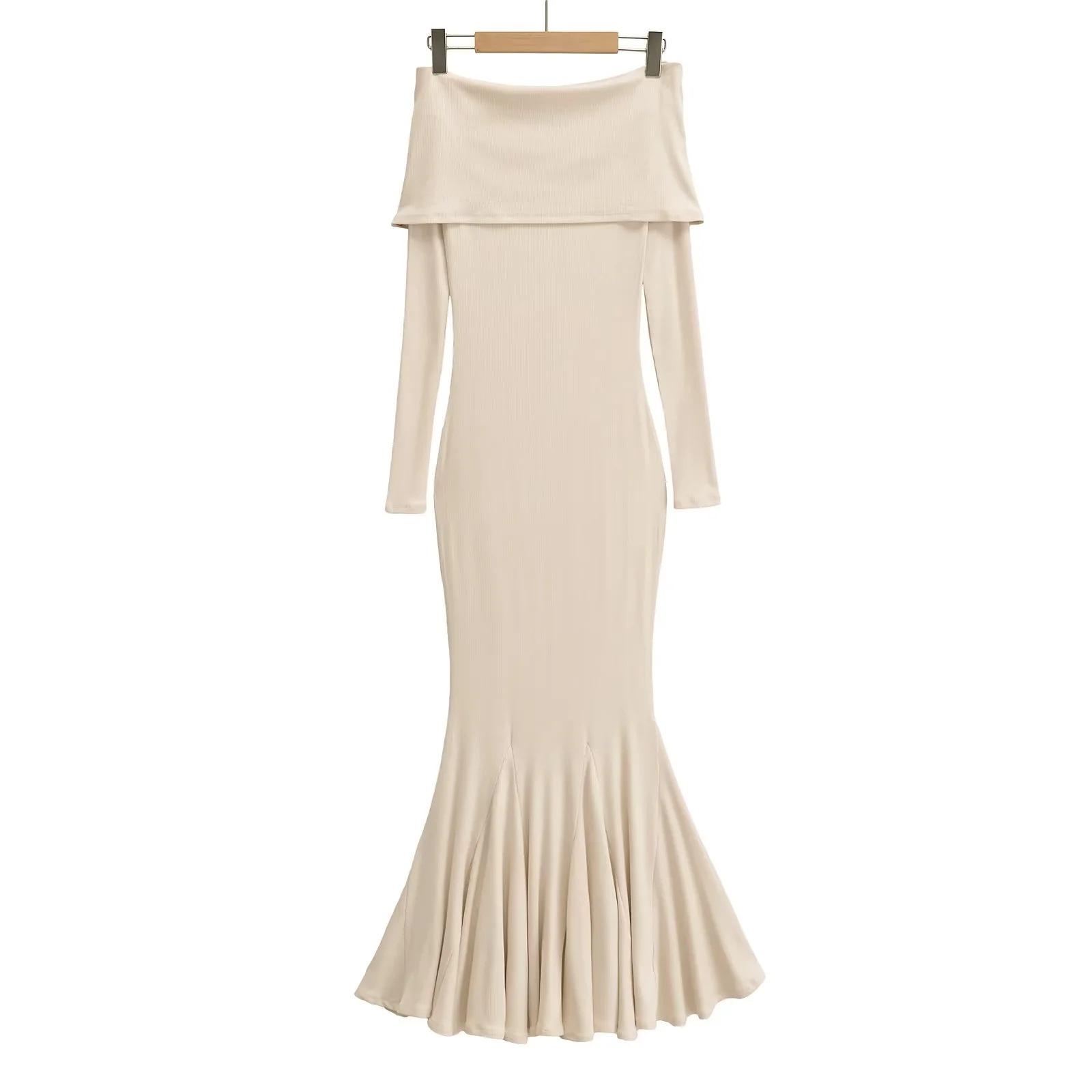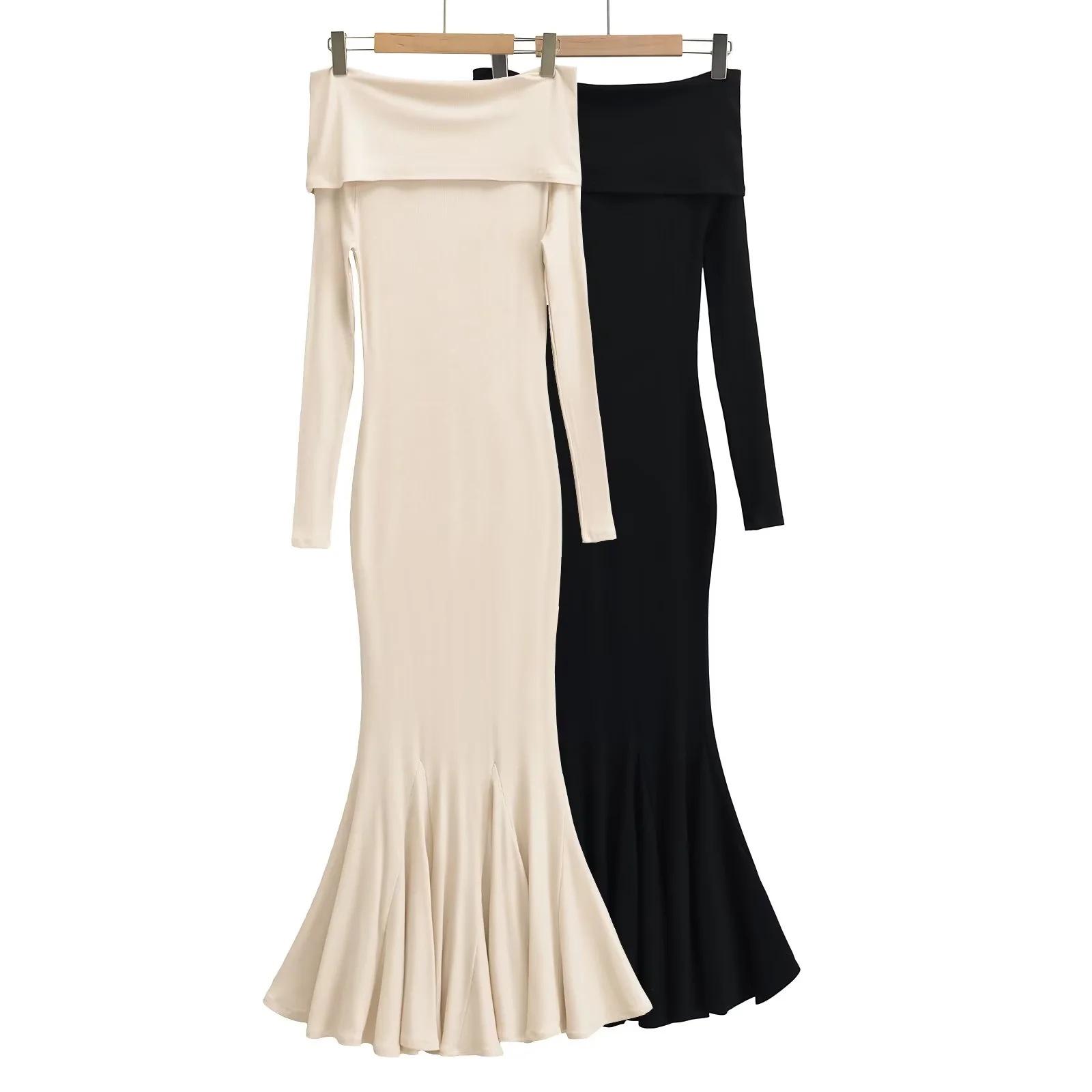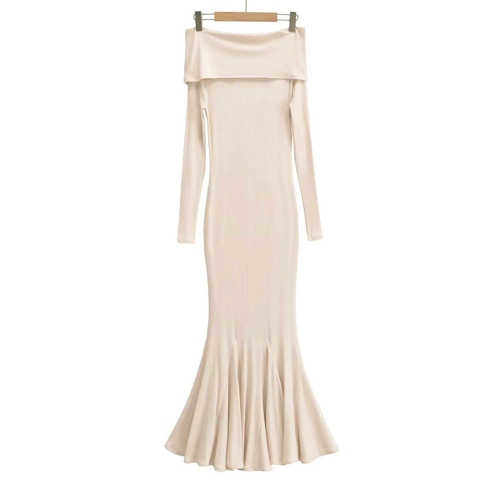 Vestido sexy de chica guapa con hombros descubiertos y cola de pez paso a paso Vestido Lotus para mujer 2024 nuevo vestido tubo de manga larga con cintura