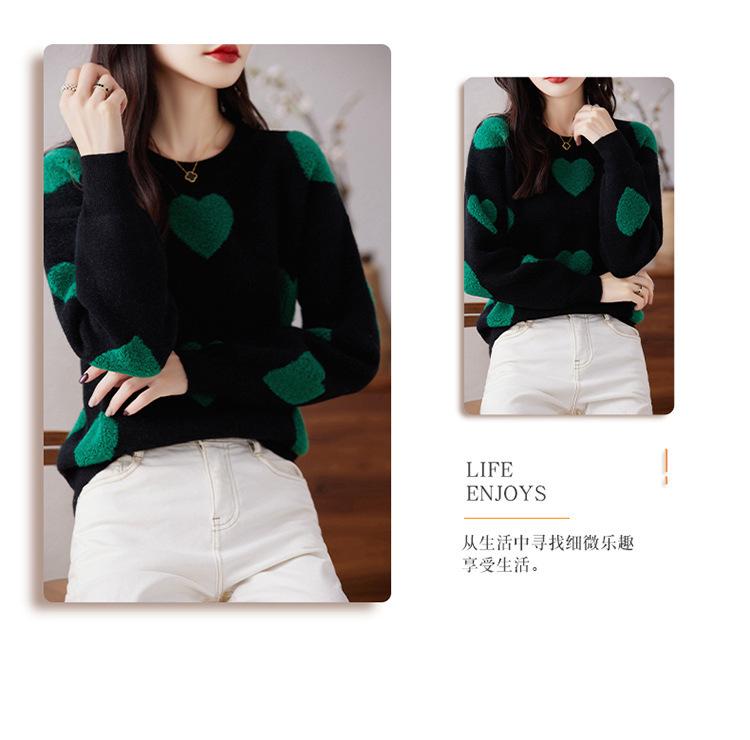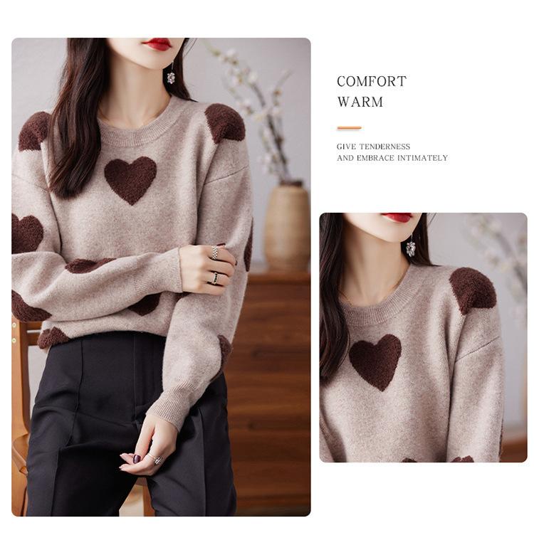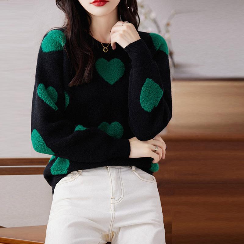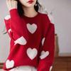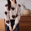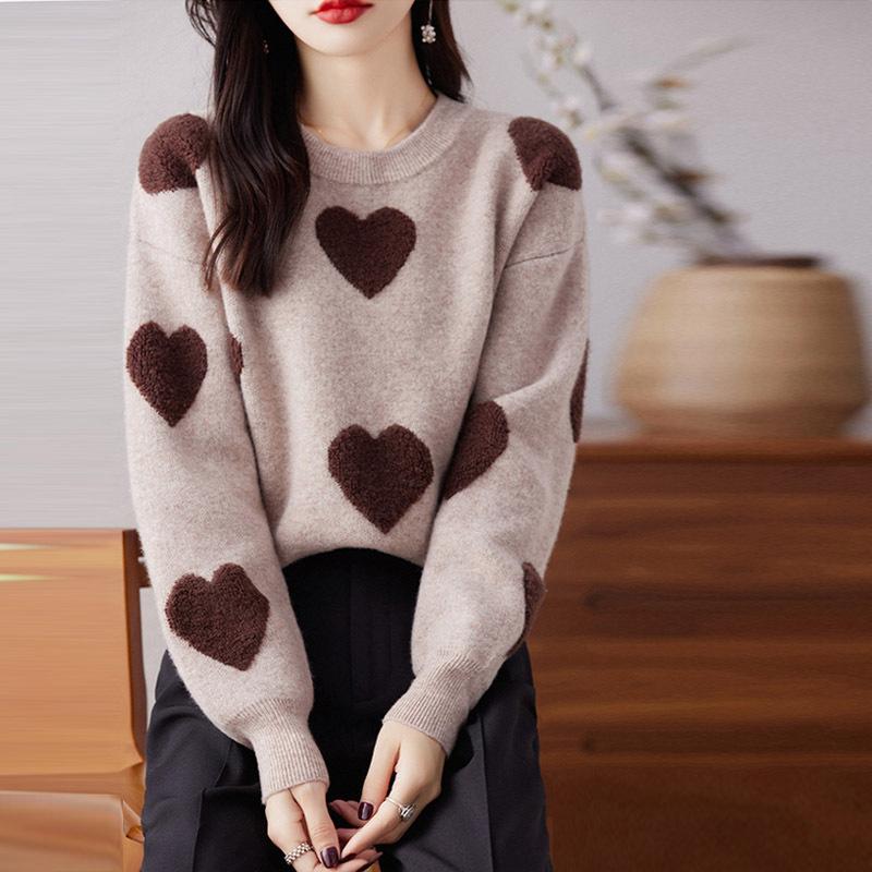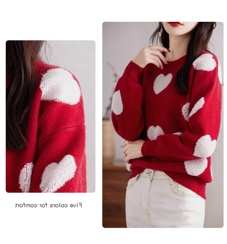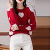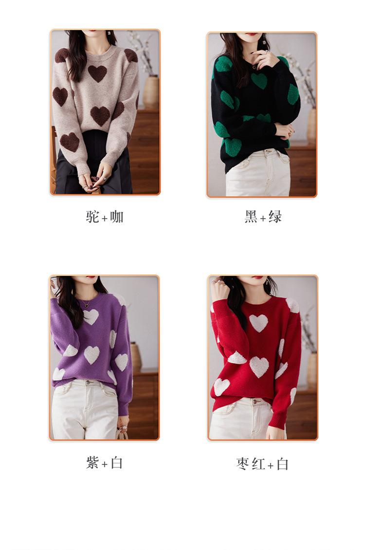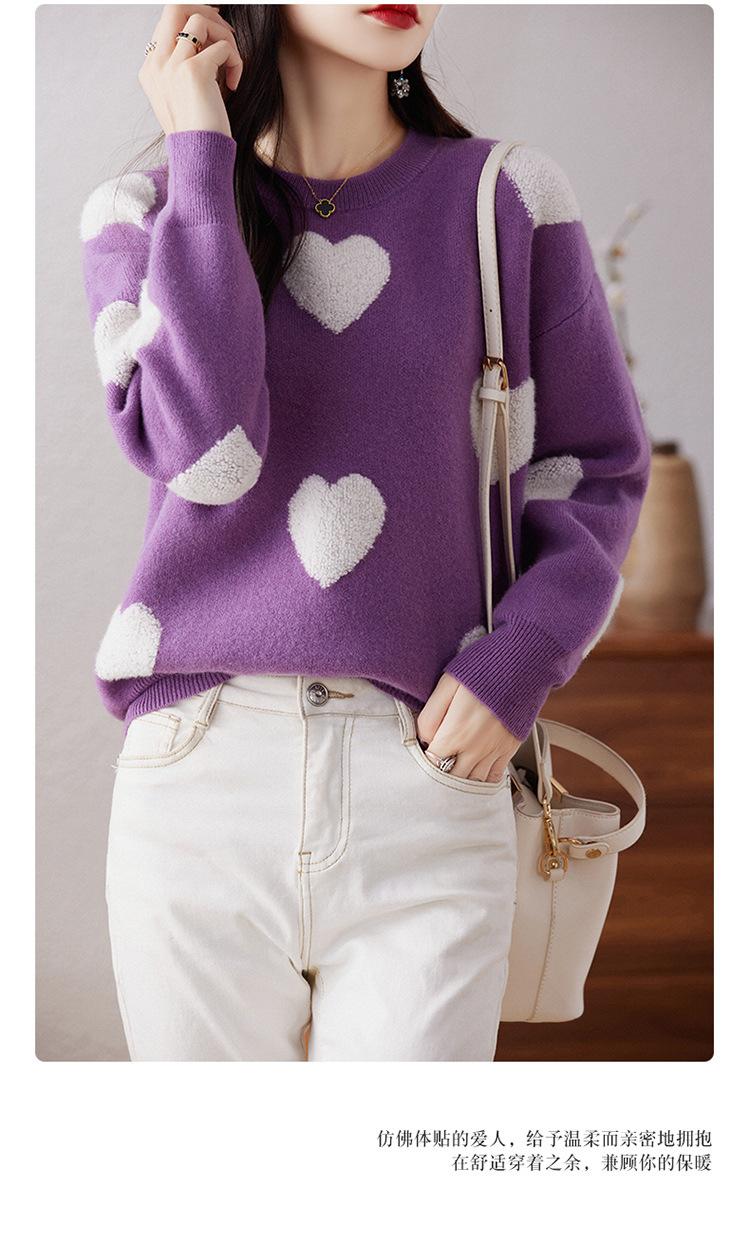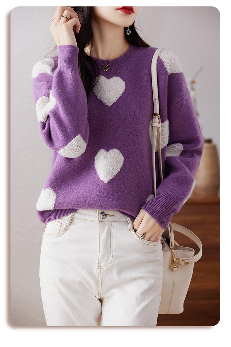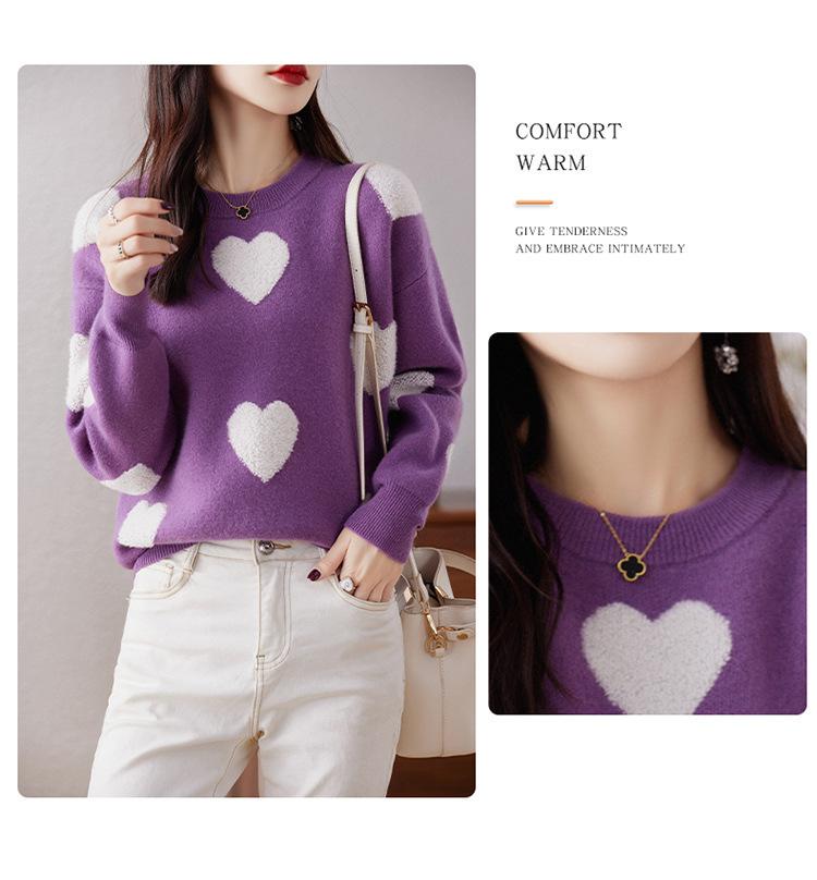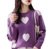 Suéter de Punto 2025 Otoño e Invierno Nuevo Top de Cuello Redondo Estilo Coreano Color de Contraste Jacquard Amor Moda Morado Suéter de Mujer