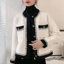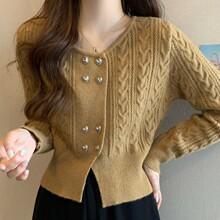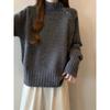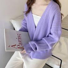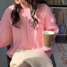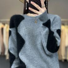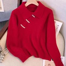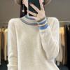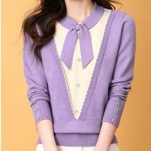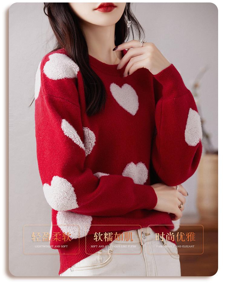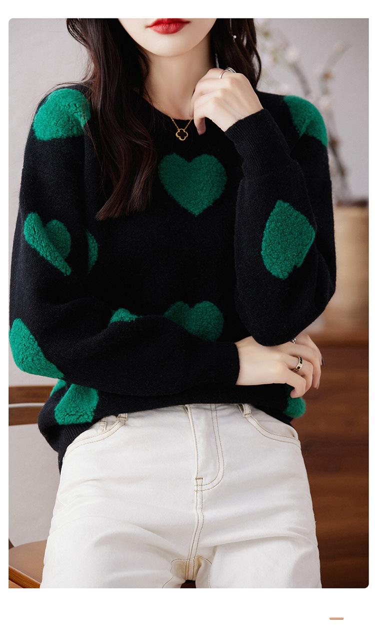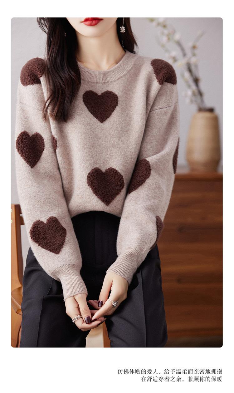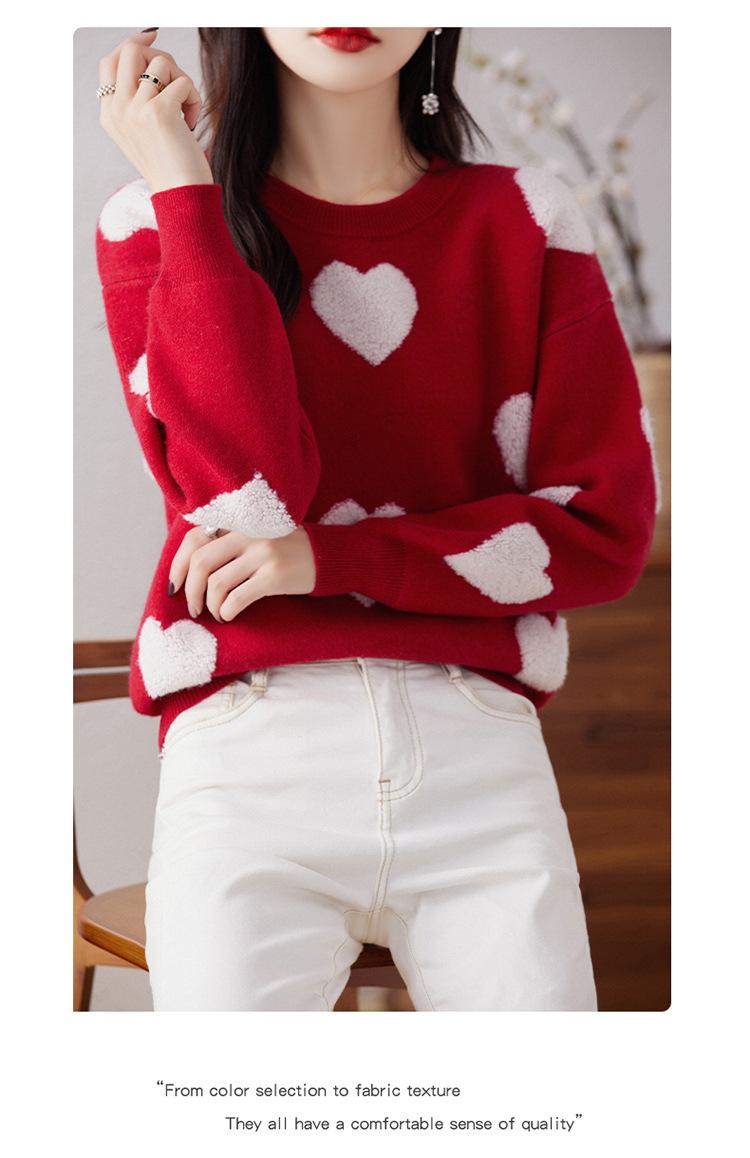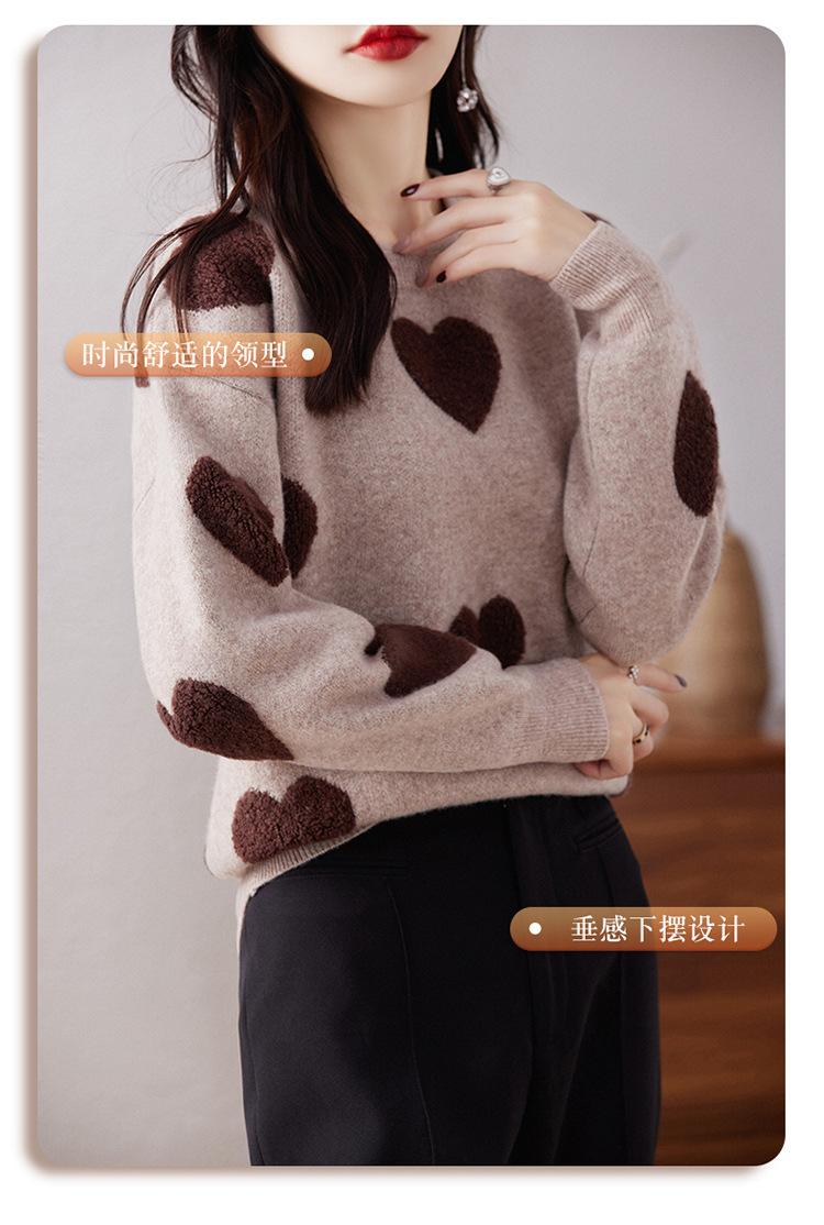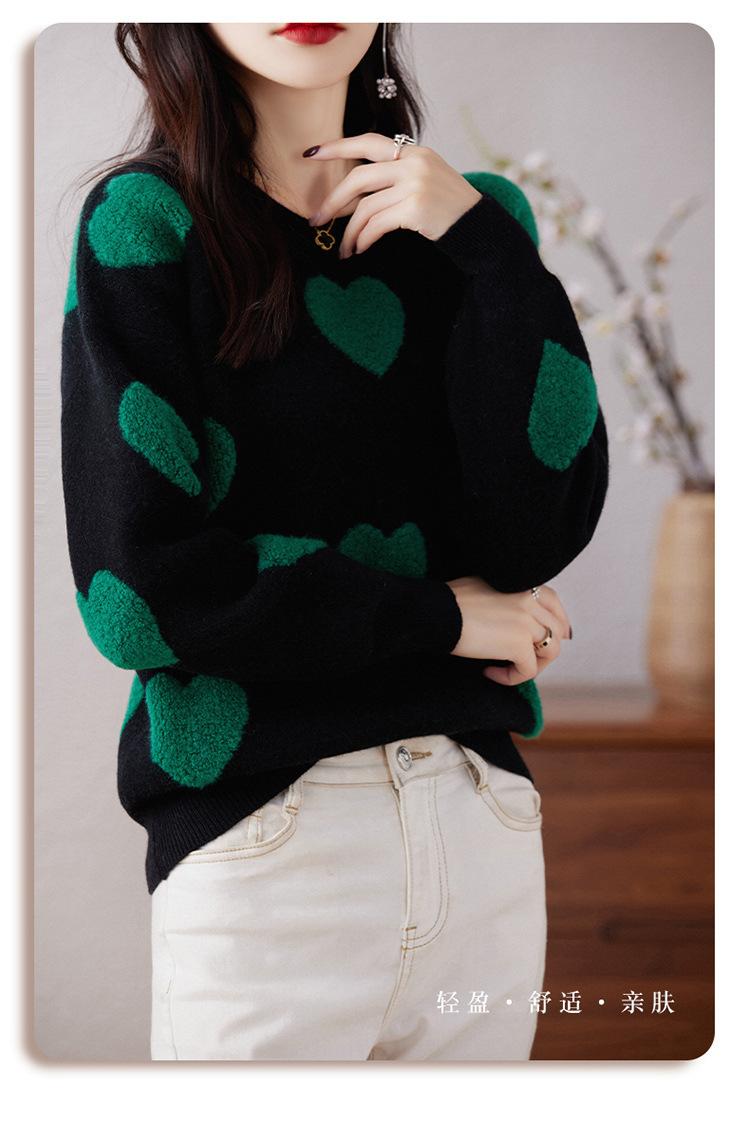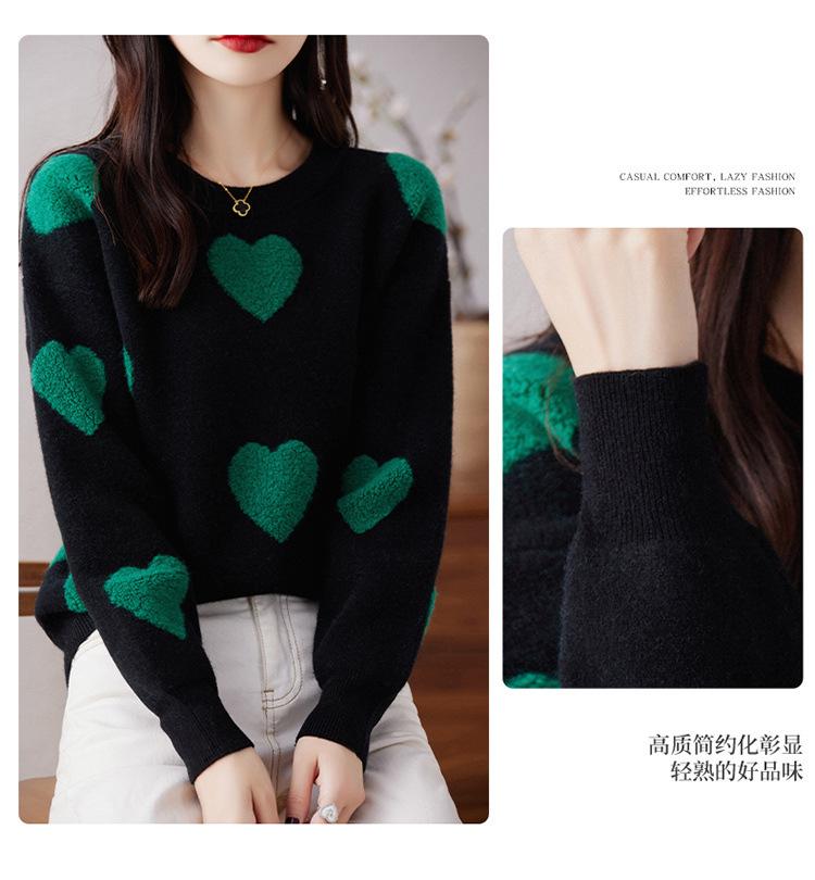 Suéter de Punto 2025 Otoño e Invierno Nuevo Top de Cuello Redondo Estilo Coreano Color de Contraste Jacquard Amor Moda Morado Suéter de Mujer
