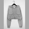 2025 Primavera y Otoño Nuevo Diseño K-Style Pantalones con Bolsillo de Solapa Sudadera con Capucha y Cremallera de Color Puro Cárdigan Corto de Algodón Puro para Mujer