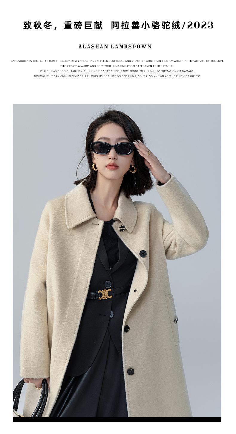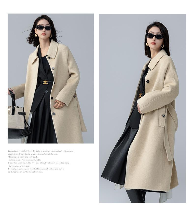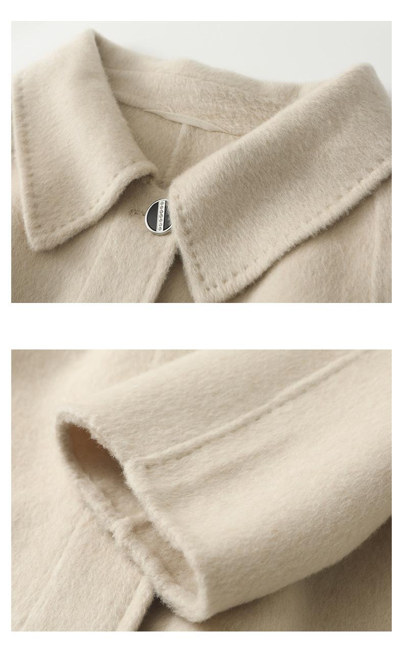 2024 Otoño e Invierno Nuevo Abrigo de Lana de Cachemira de Doble Cara para Mujer de Largo Medio por Encima de la Rodilla Estilo Coreano Suelto Grueso de Lana
