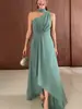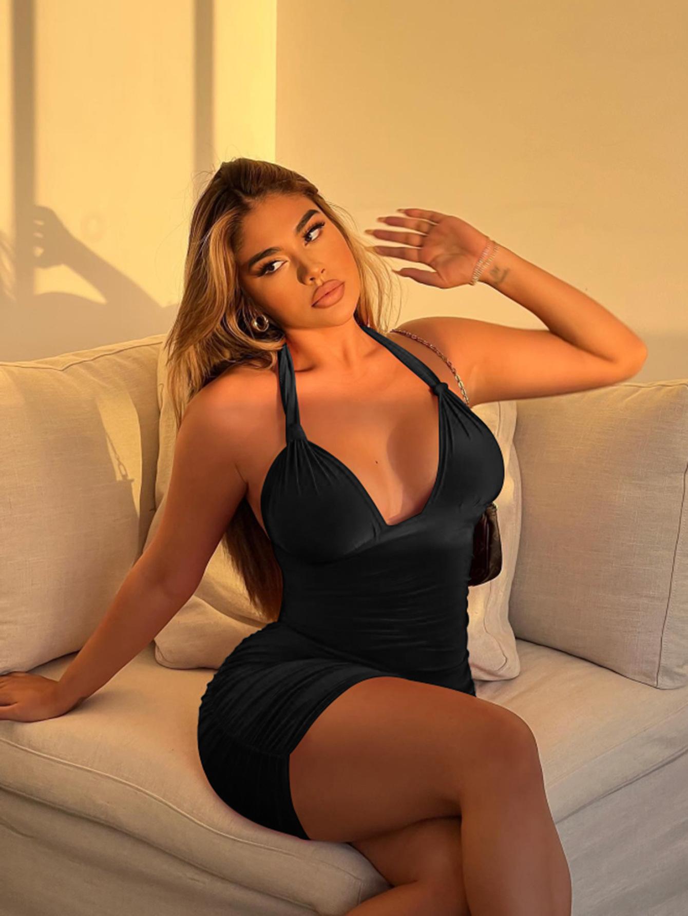 Tela de seda de leche, falda halter con cuello en V profundo, sexy y simple
