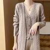 Cárdigan de Punto de Largo Medio de Otoño 2025 para Comercio Exterior, de Manga Larga y Casual con Trenzas para Mujer